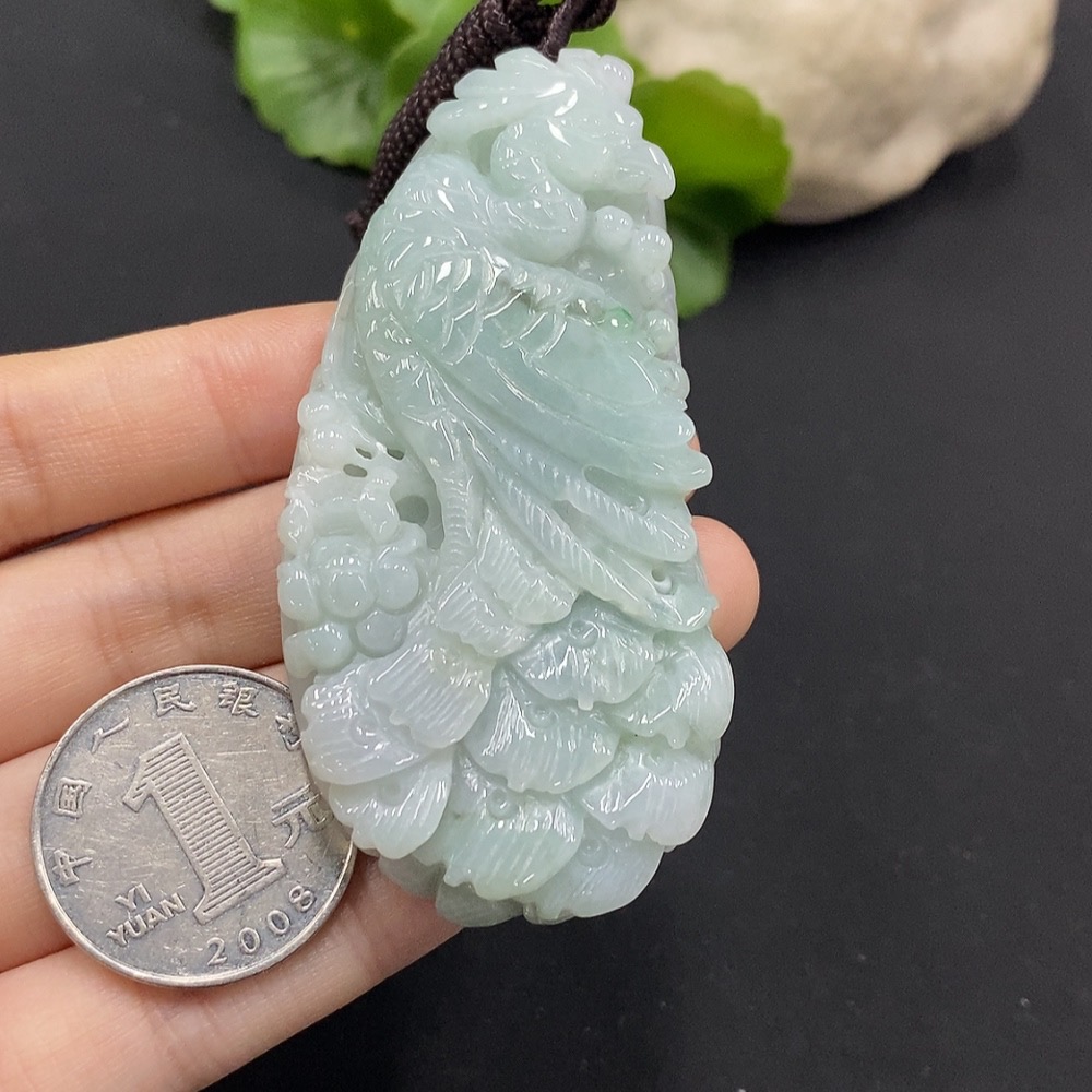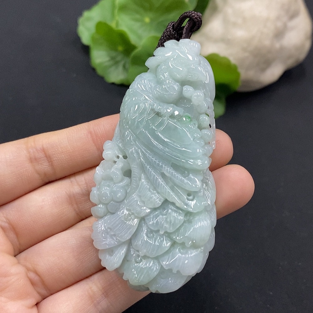 Jadeite Peacock Pendant Total Weight Approx. 62.46g