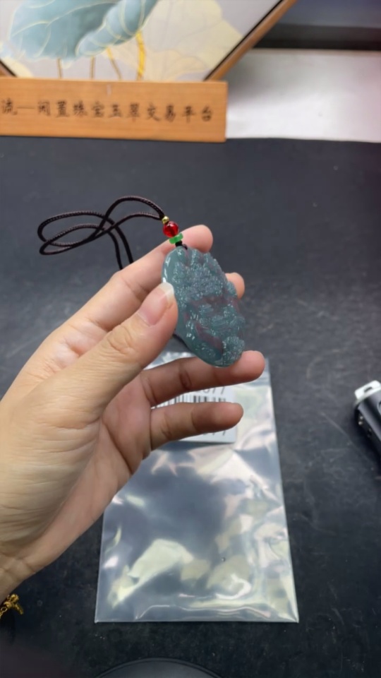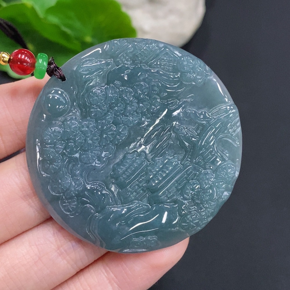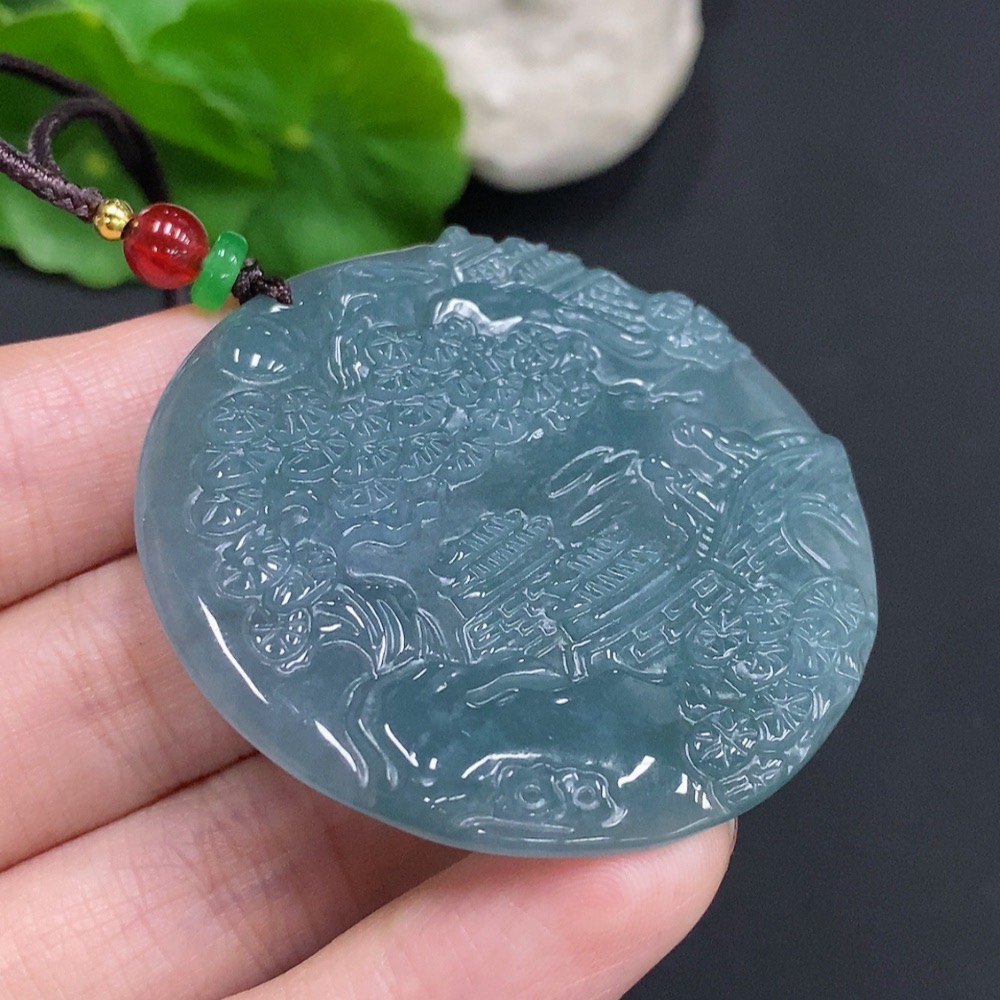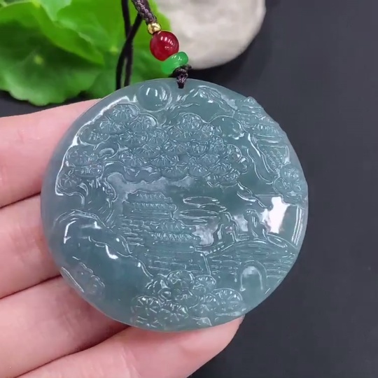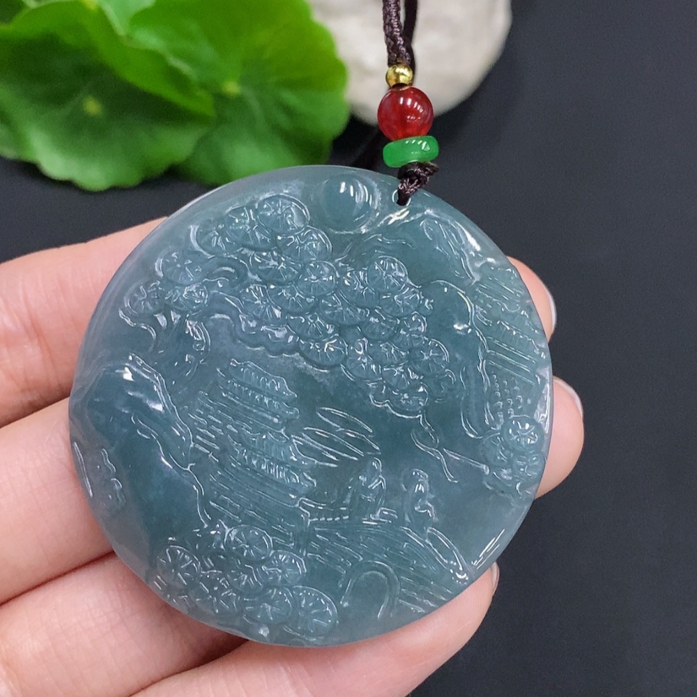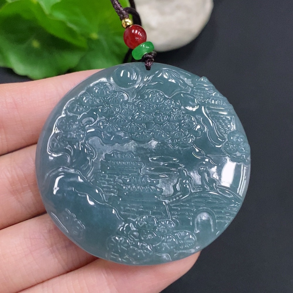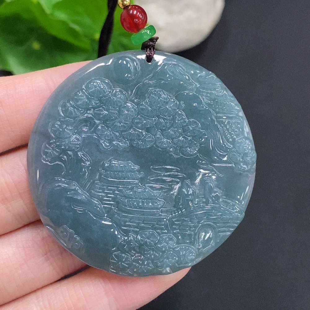 Jadeite Landscape Pendant Total Weight Approx. 26.1g (including rope weight)