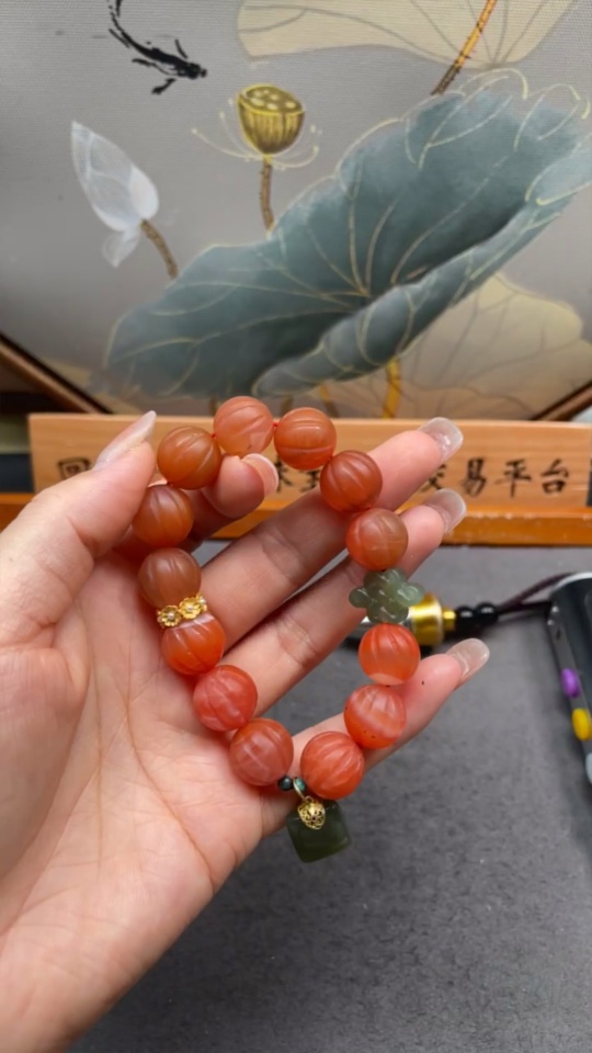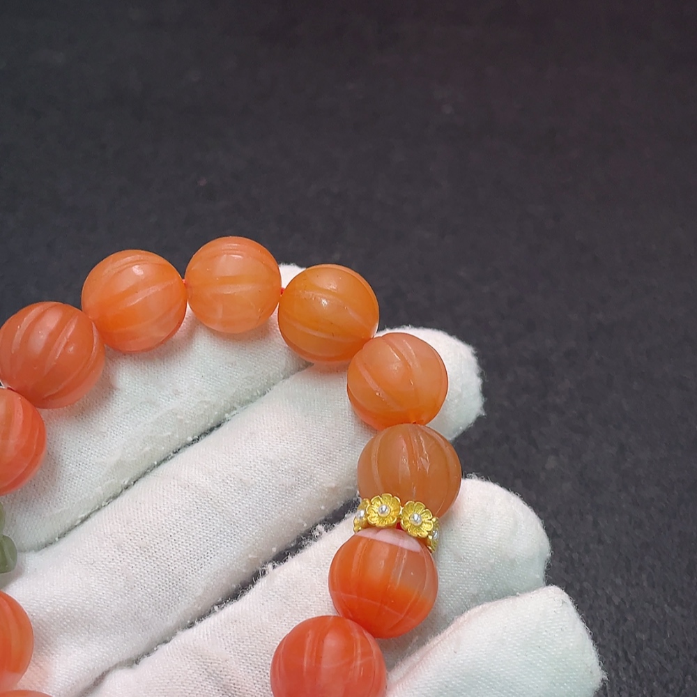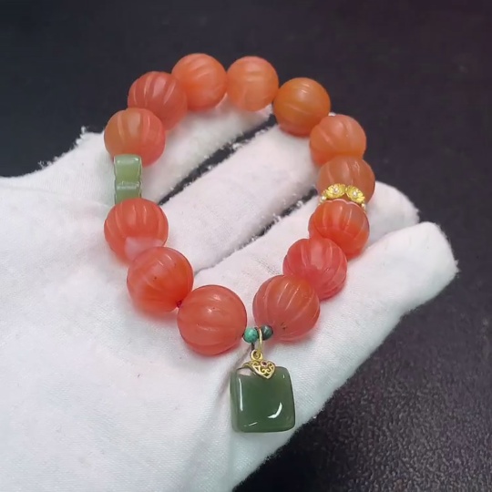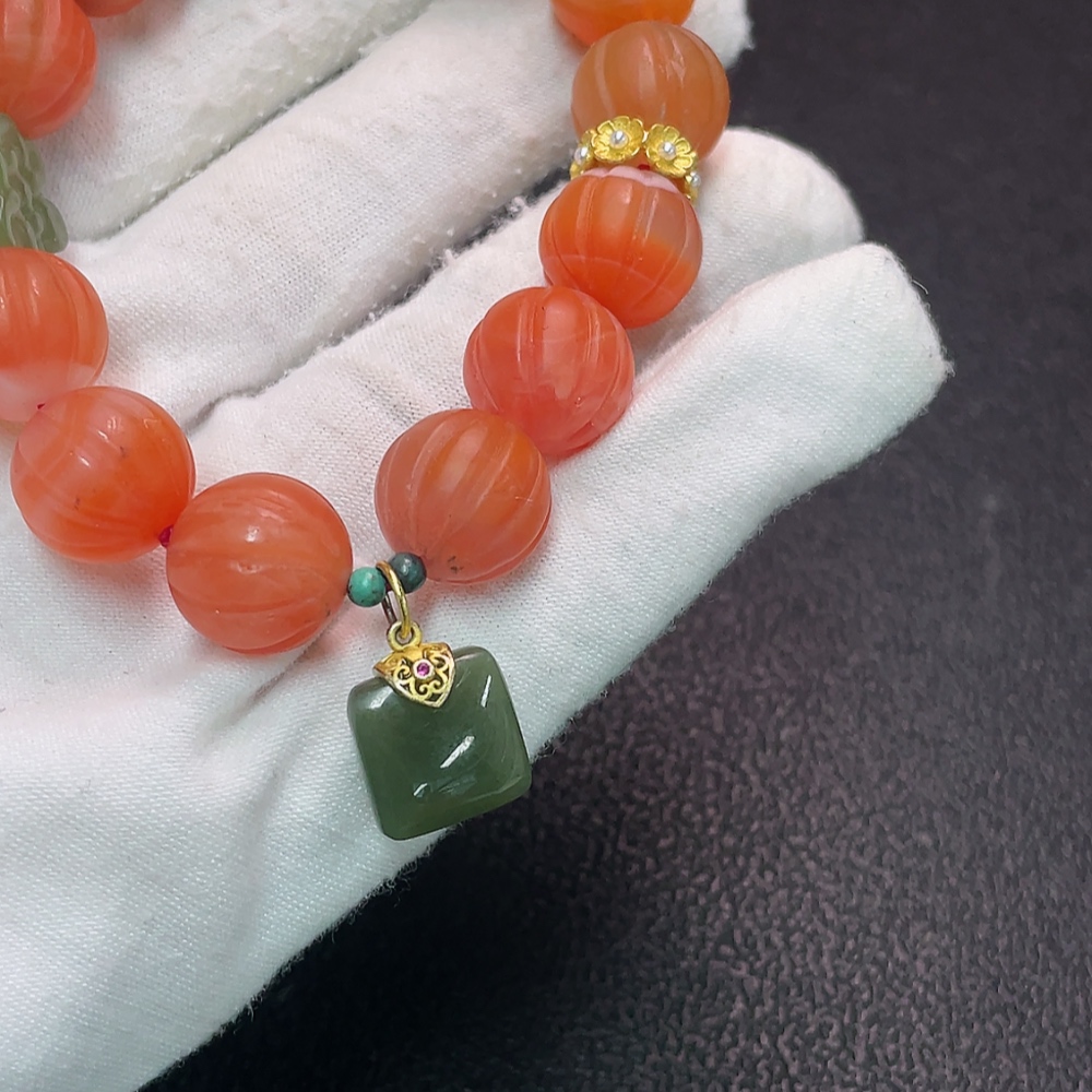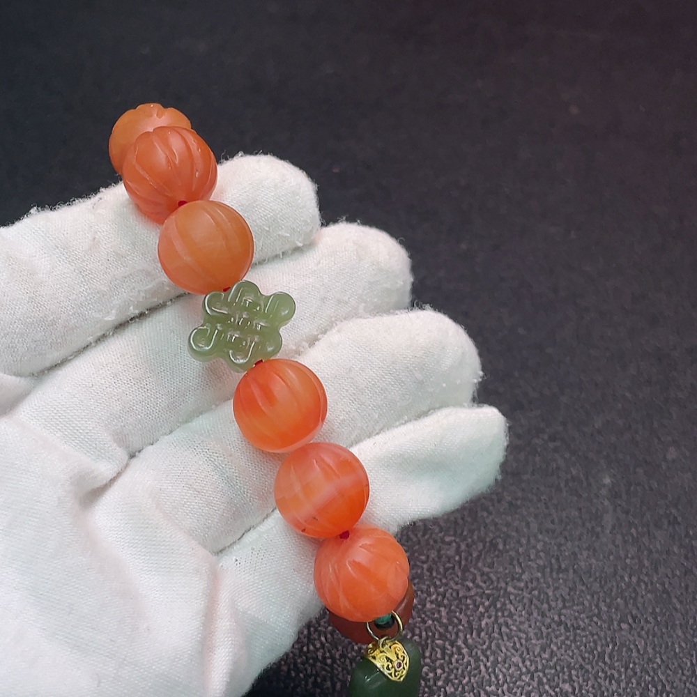 South Red Agate Bracelet with Visible Organic Matter and Hetian Jade, Non-Gold, Total Weight Approximately 44.29g, Size Around 12.9mm
