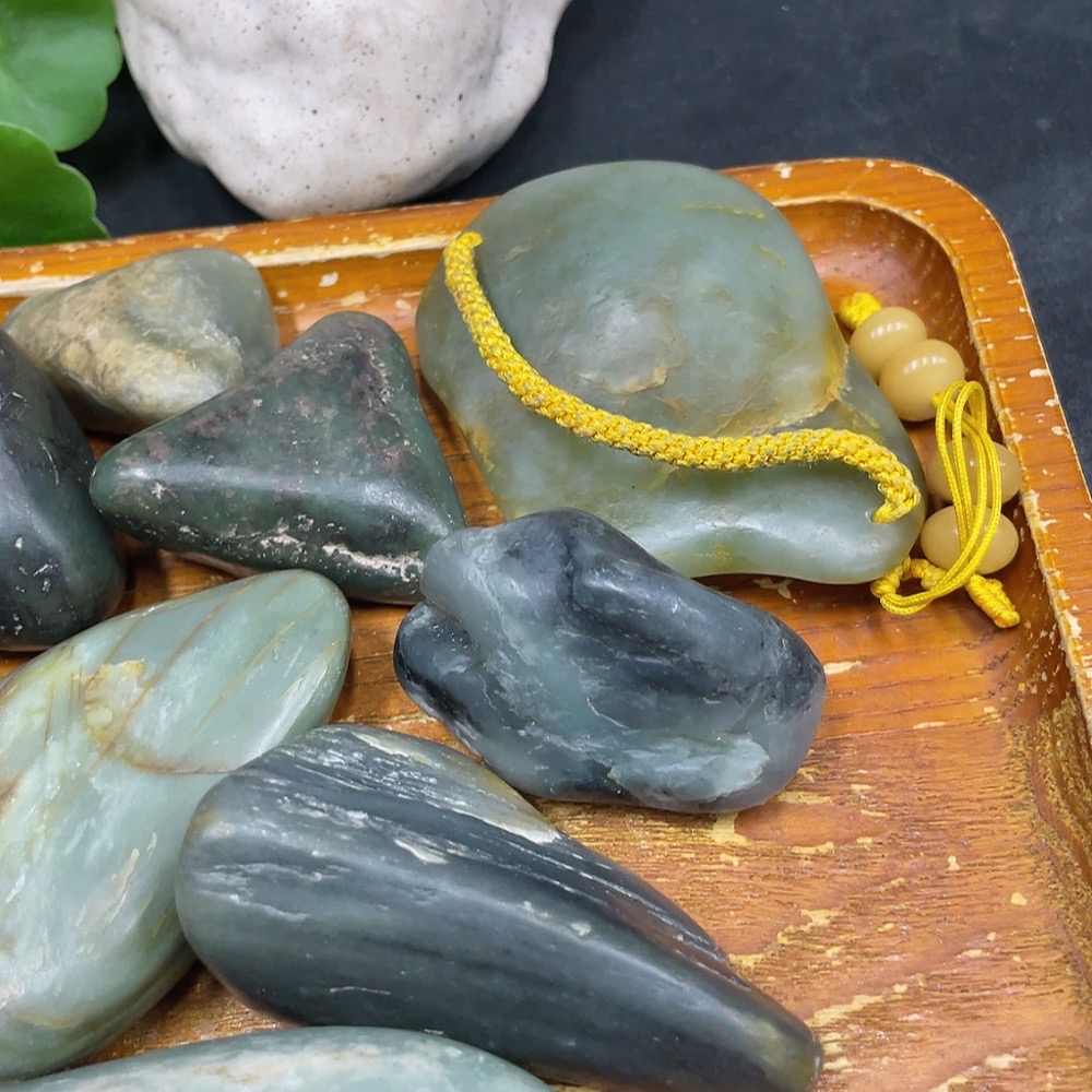 Hetian Jade, undetermined skin color origin, containing other mineral components, total weight approx. (including rope) 700g