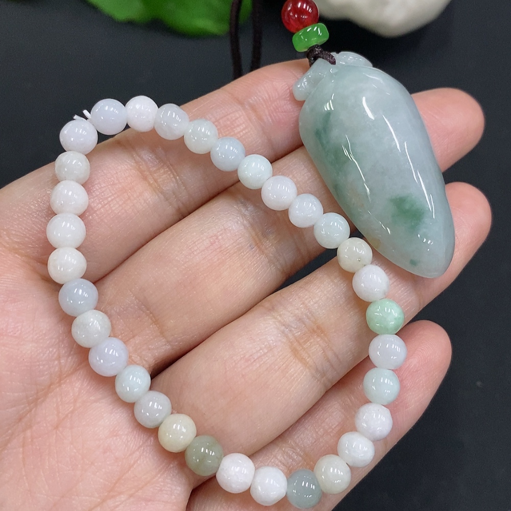 Jadeite Pendant with Bead Strand (Beads Not Grade A)
