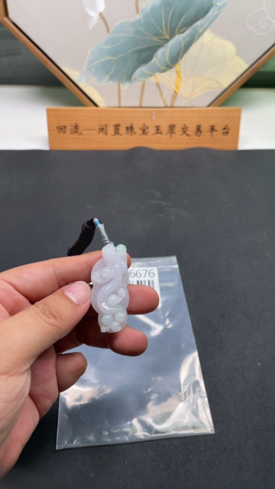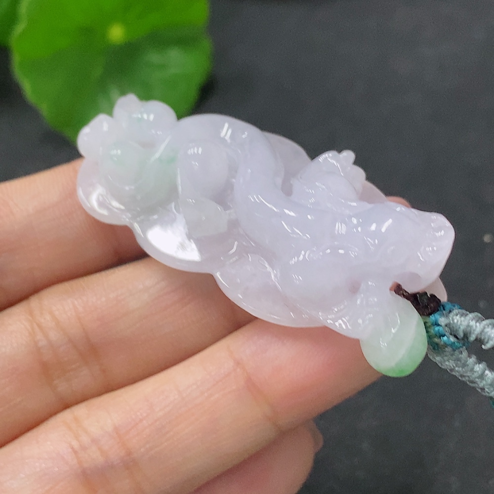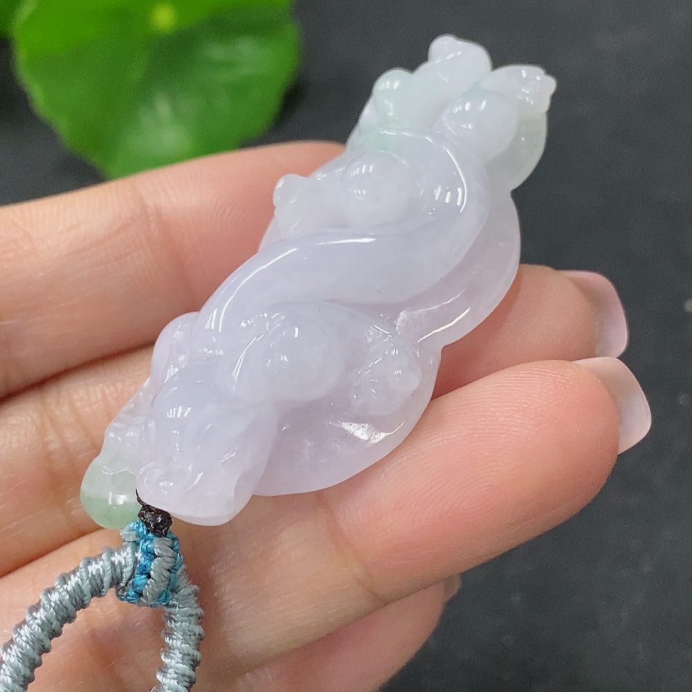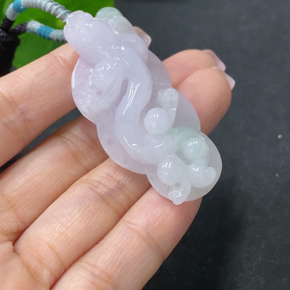 Jadeite Pendant Grass Dragon Total Weight Approx. 18g with Rope