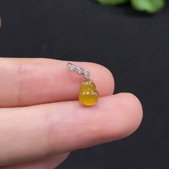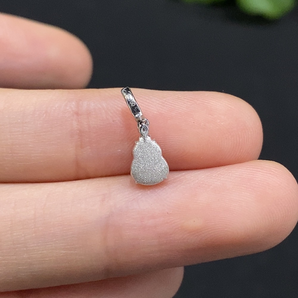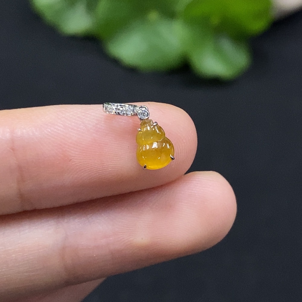 Jadeite Gourd Inlaid Pendant 18K Gold with Diamond, Total Weight Approximately 0.38g