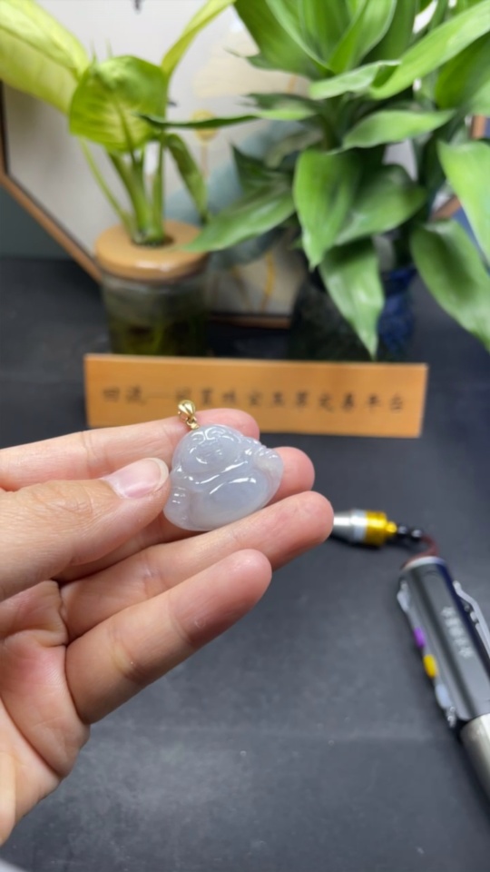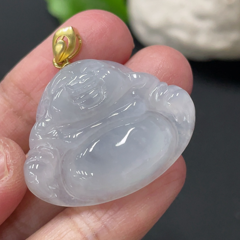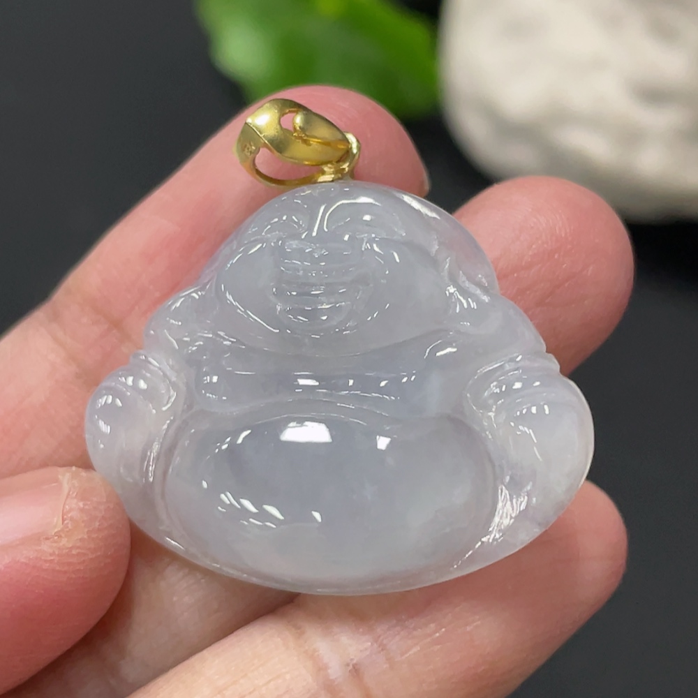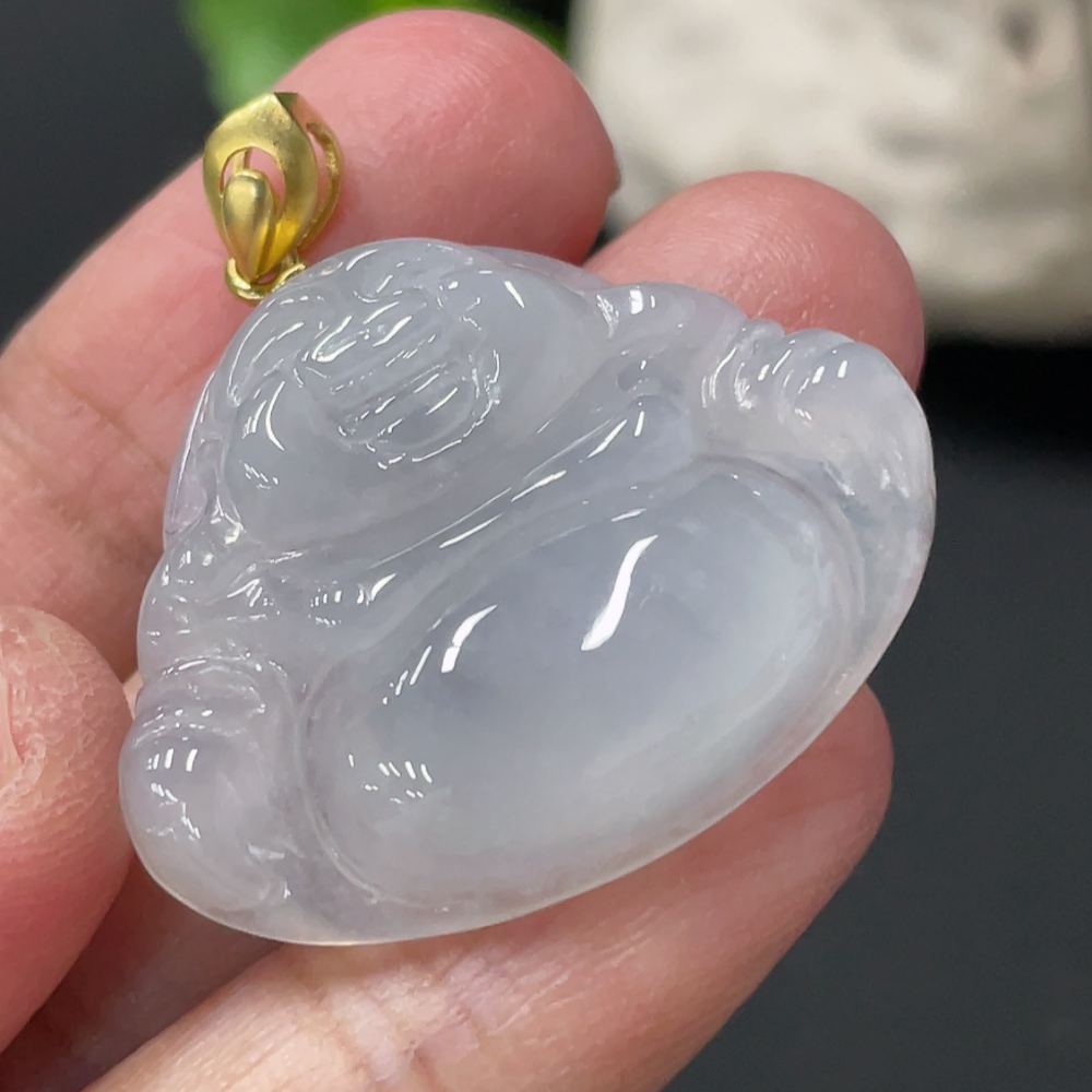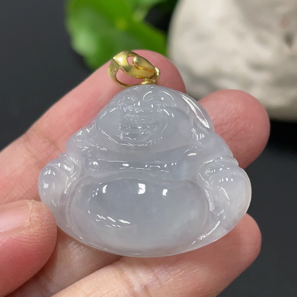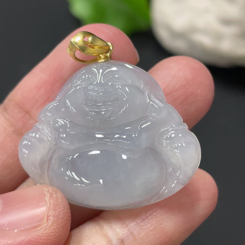 Jadeite Buddha Pendant Total Weight Approx. 7.6g 18k Gold Clasp