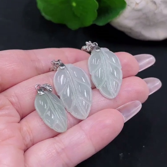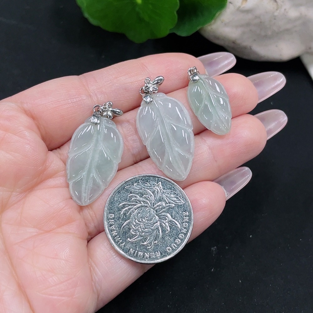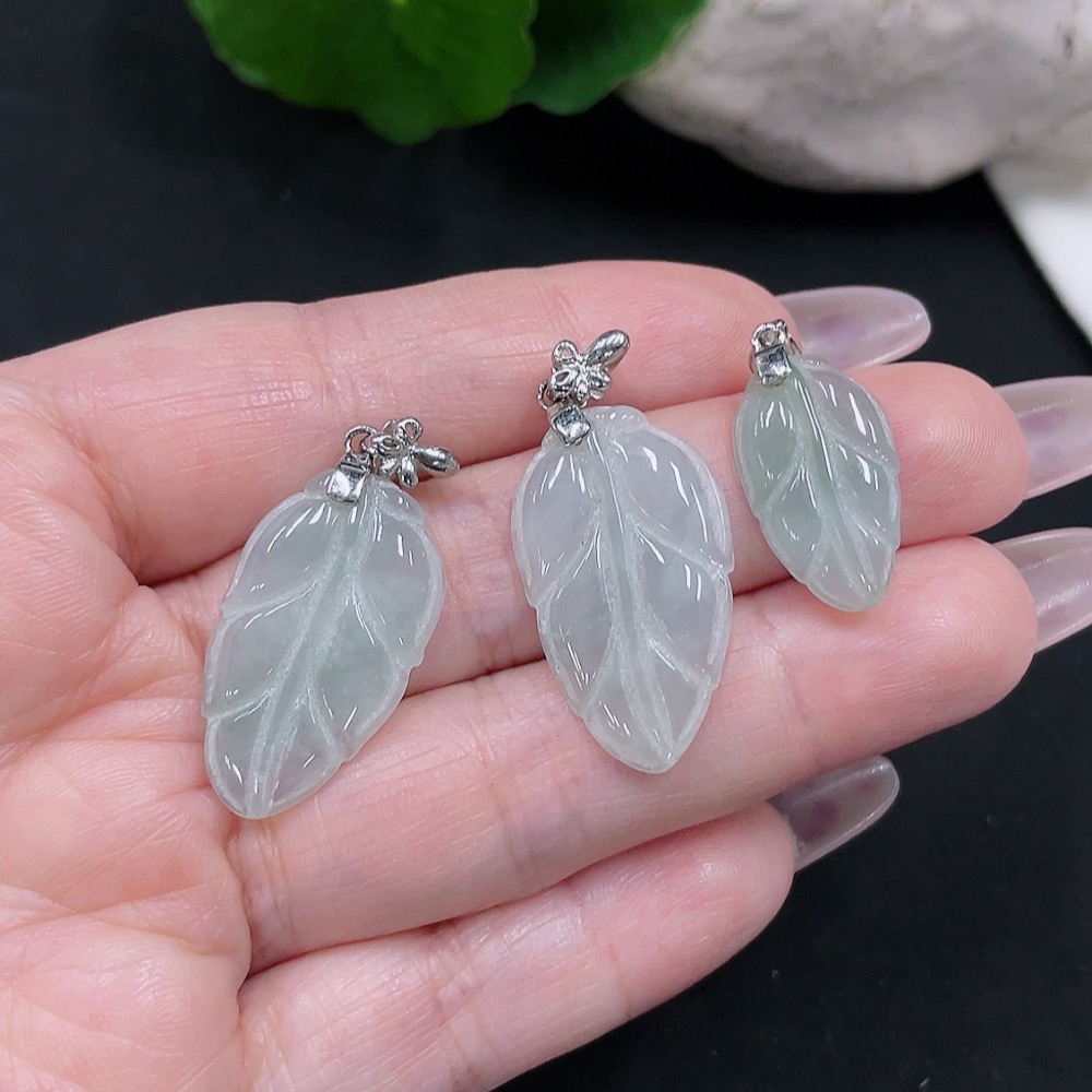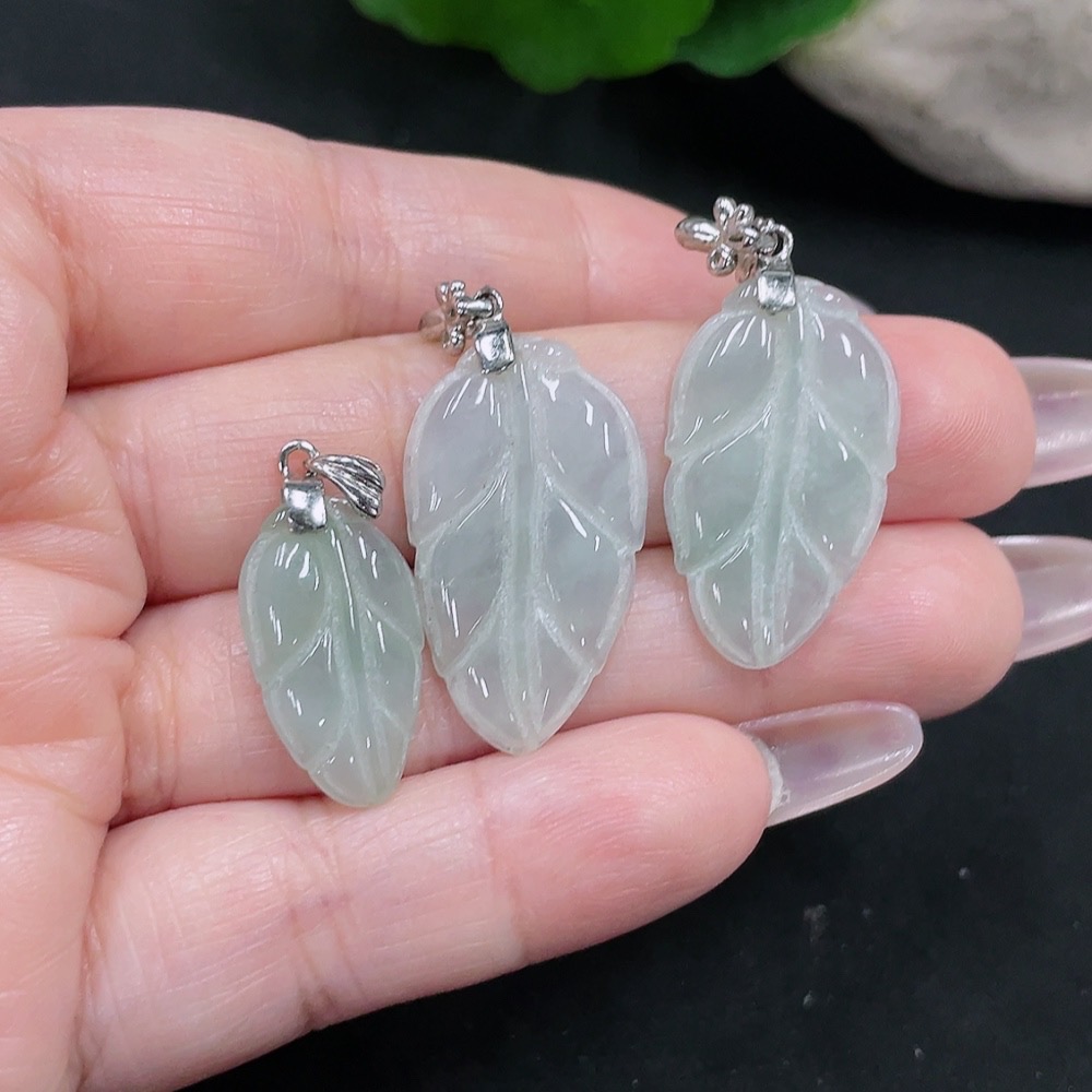 Jadeite Leaf Pendant Sell as a Lot (Non-Gold Inlaid)