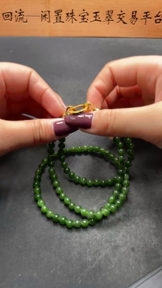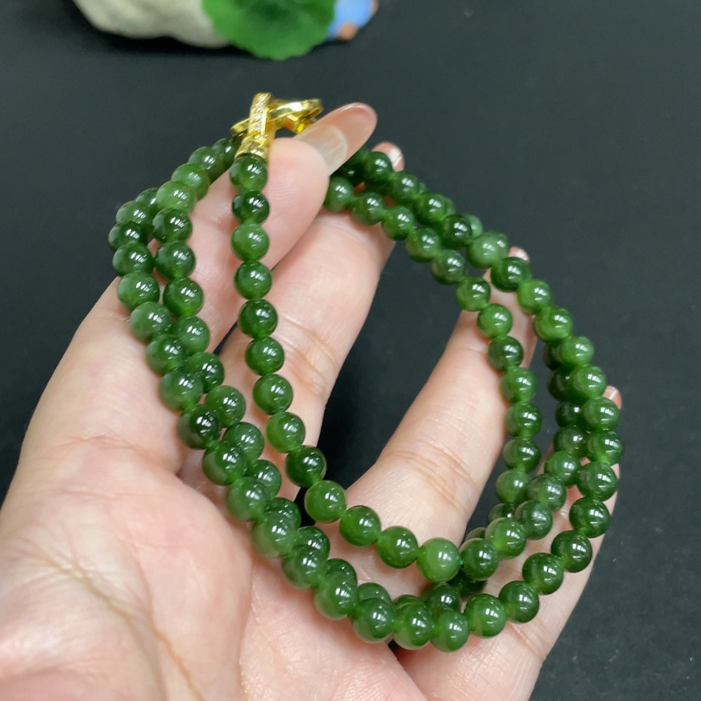 Hetian Jade Bead Necklace, approx. 5.8mm, total weight approx. 37.6g, non-gold