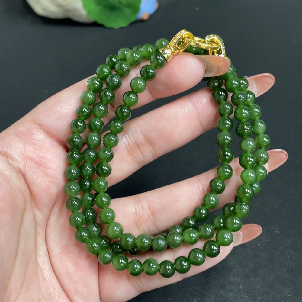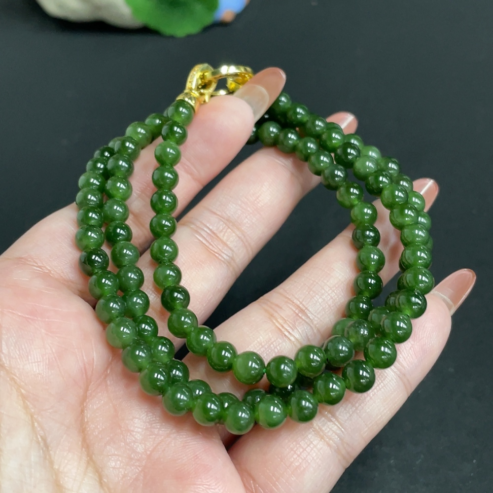 Trezaar - Hetian Jade Bead Necklace, approx. 5.8mm, total weight approx. 37.6g, non-gold