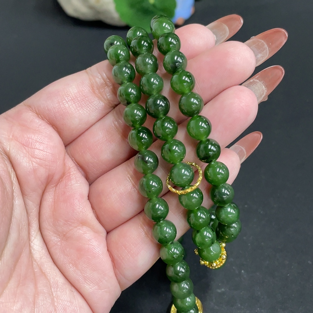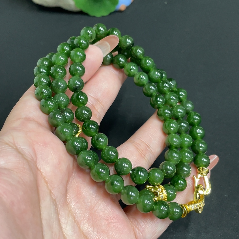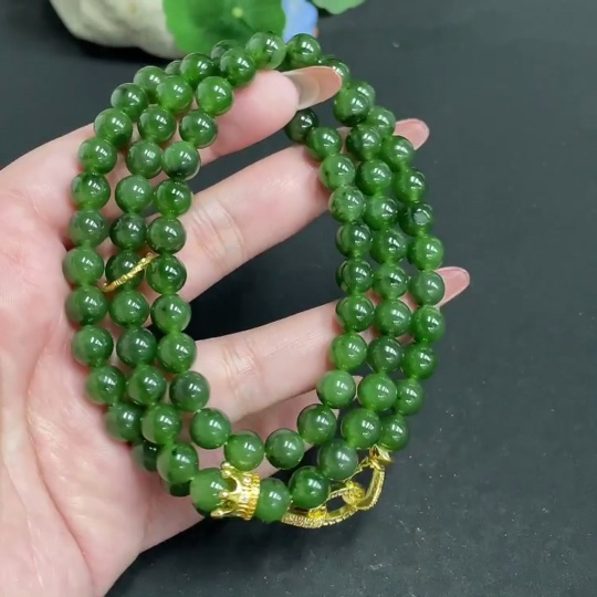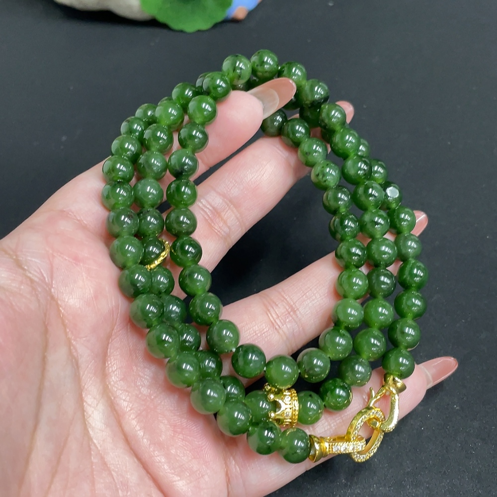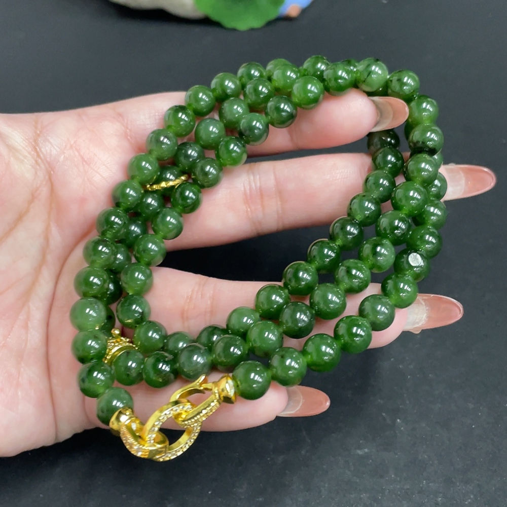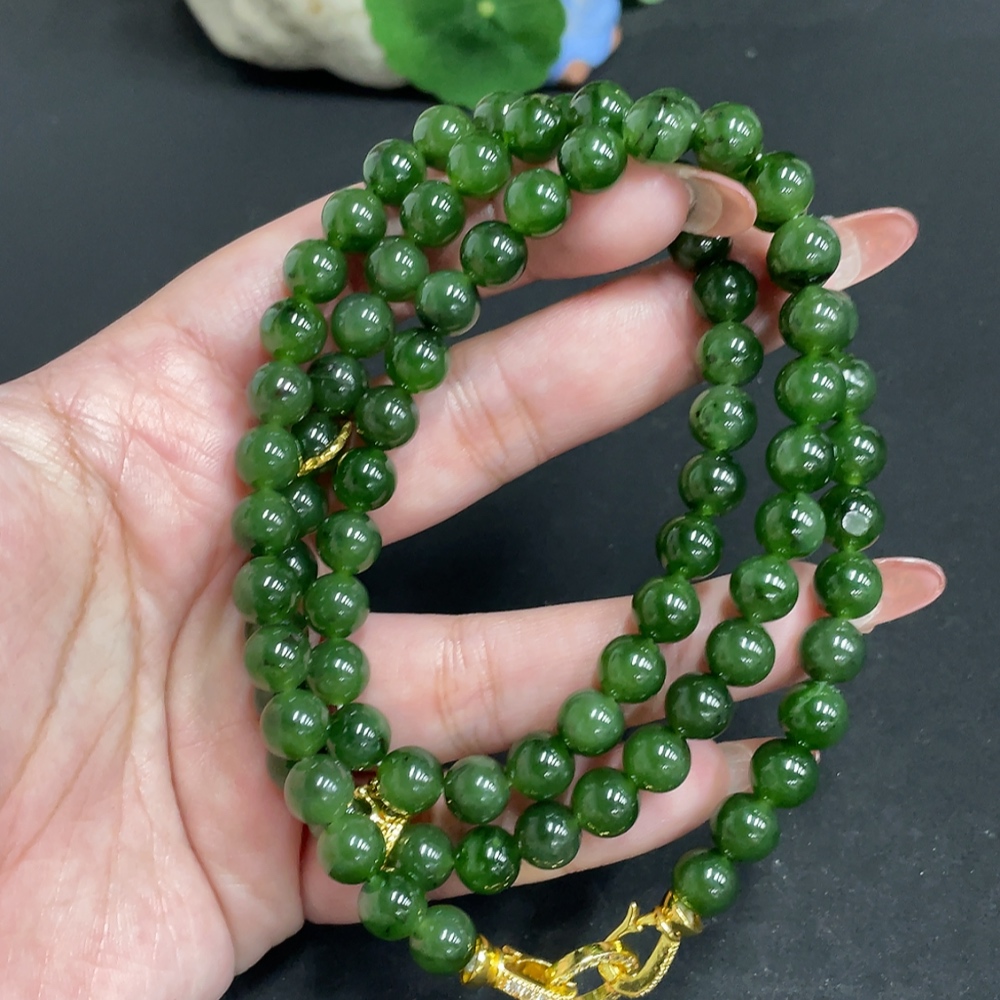Hetian Jade Jasper Bead Necklace, approx. 7.8mm, total weight approx. 73.4g, non-gold