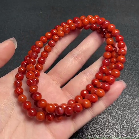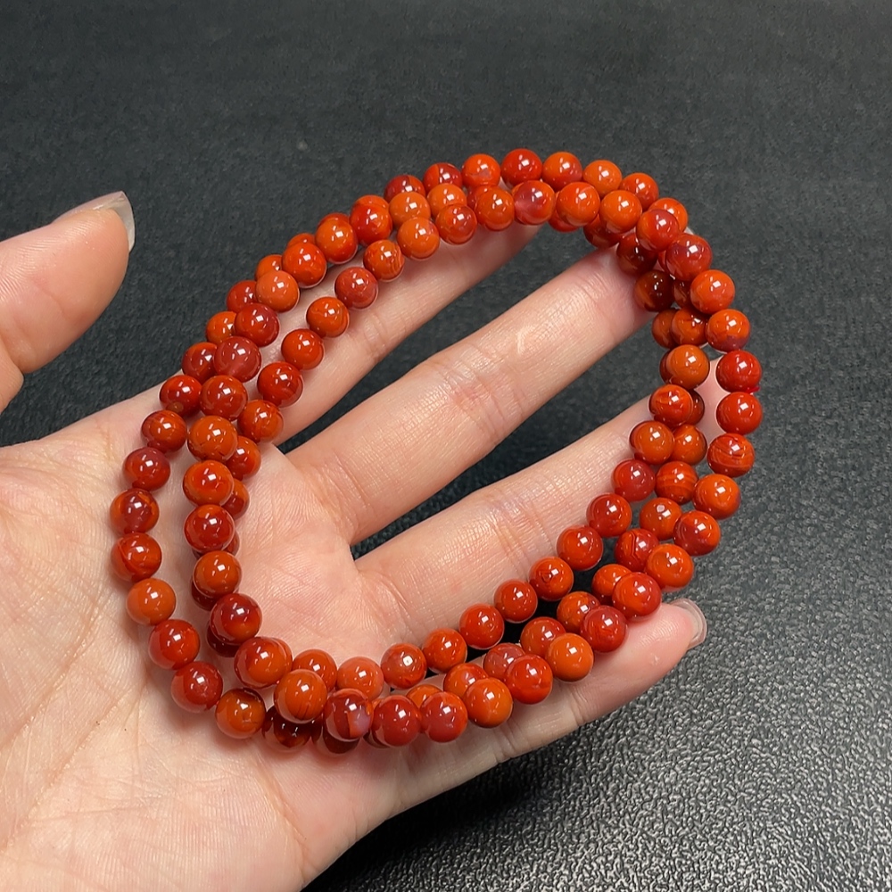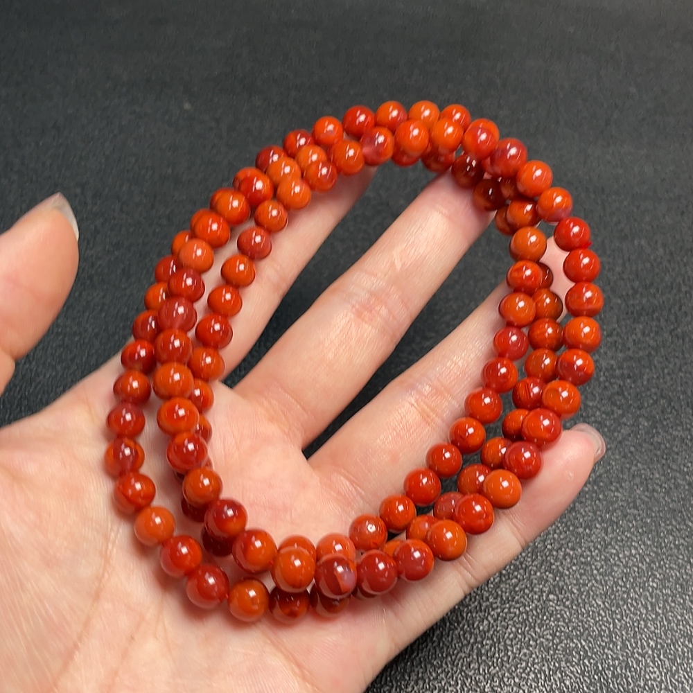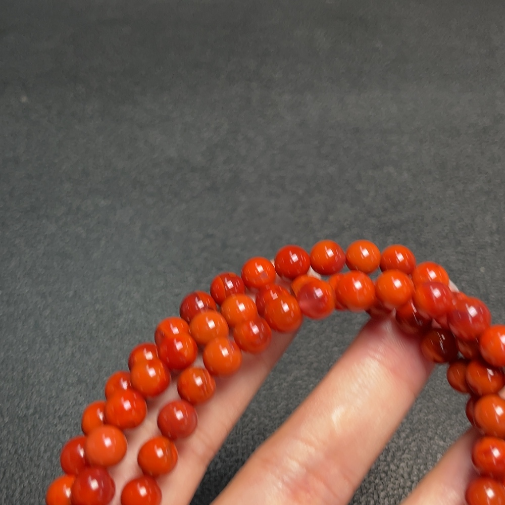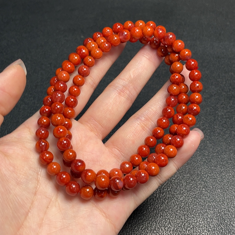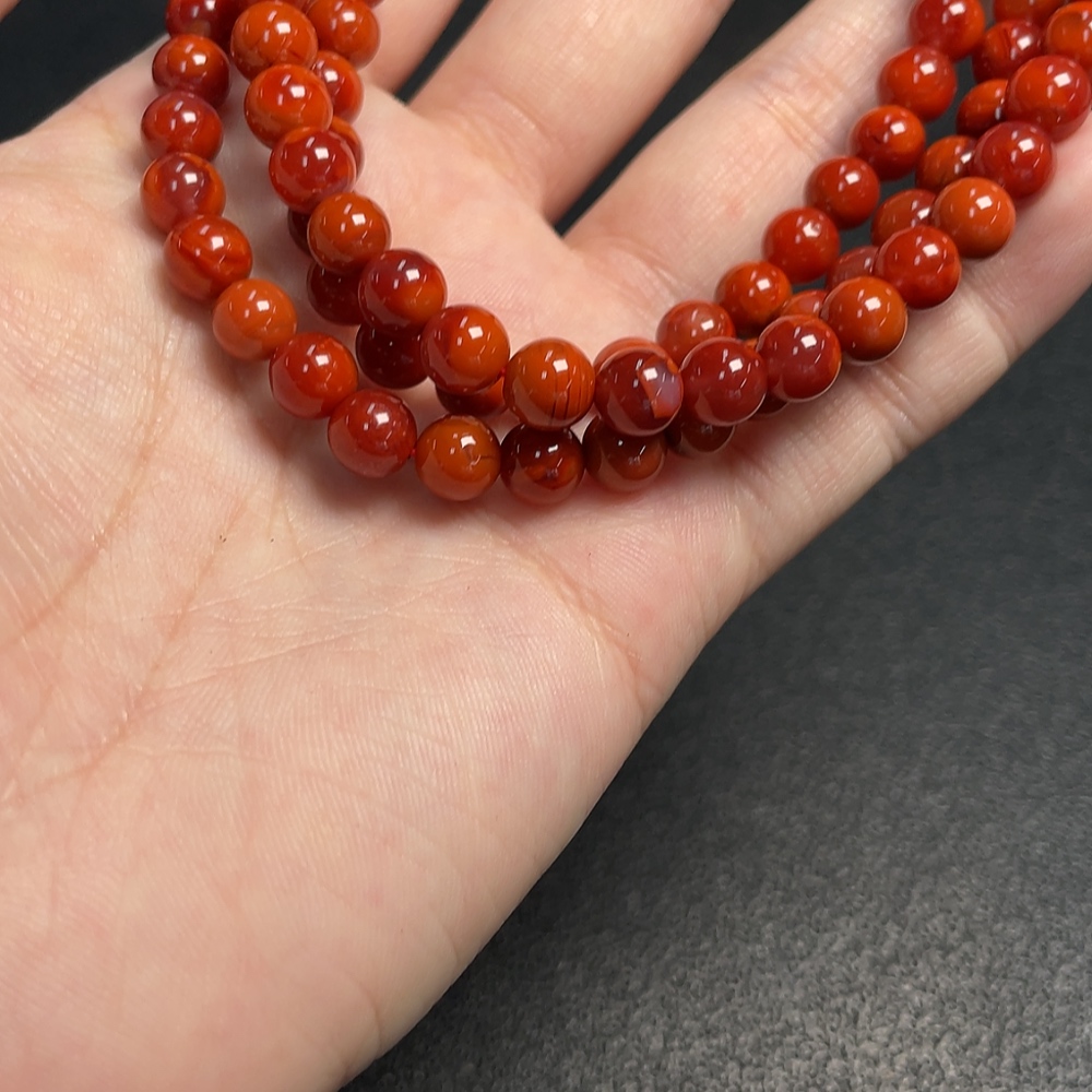 Red Agate Beaded Necklace with Visible Organic Matter, Total Weight Approx. 46.69g, Bead Size ~6.8mm