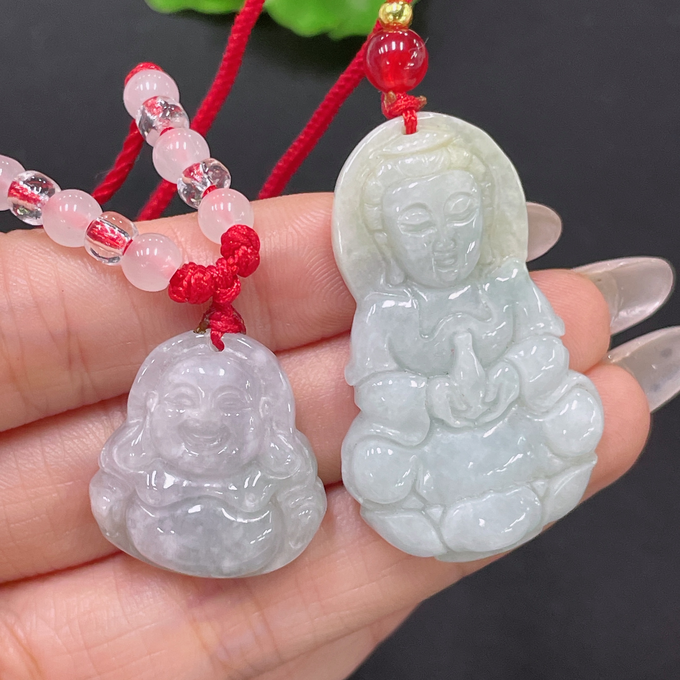 Jadeite Pendant Buddha + Guanyin with Non-Grade A Beads Sell as a Lot
