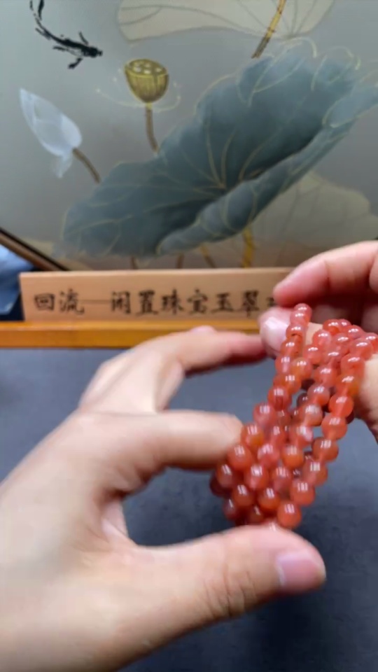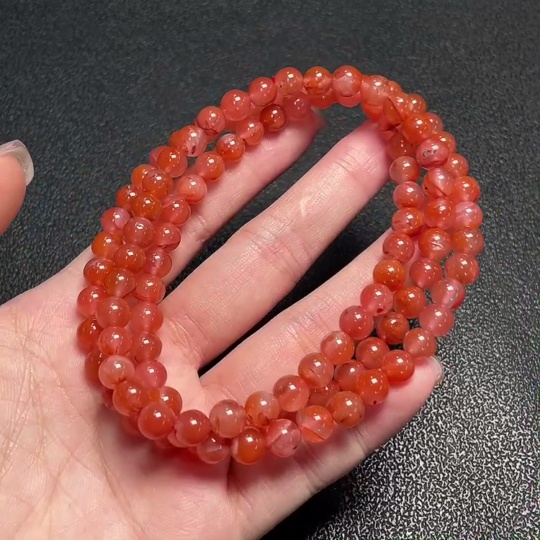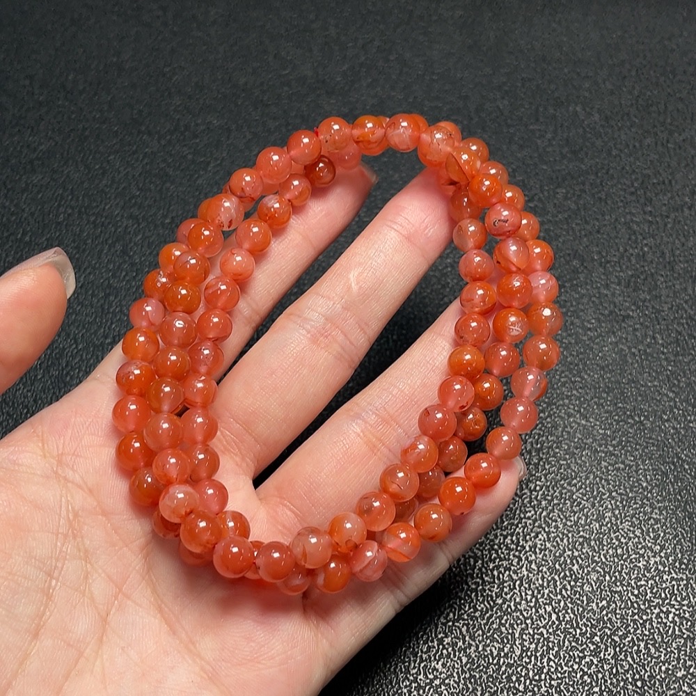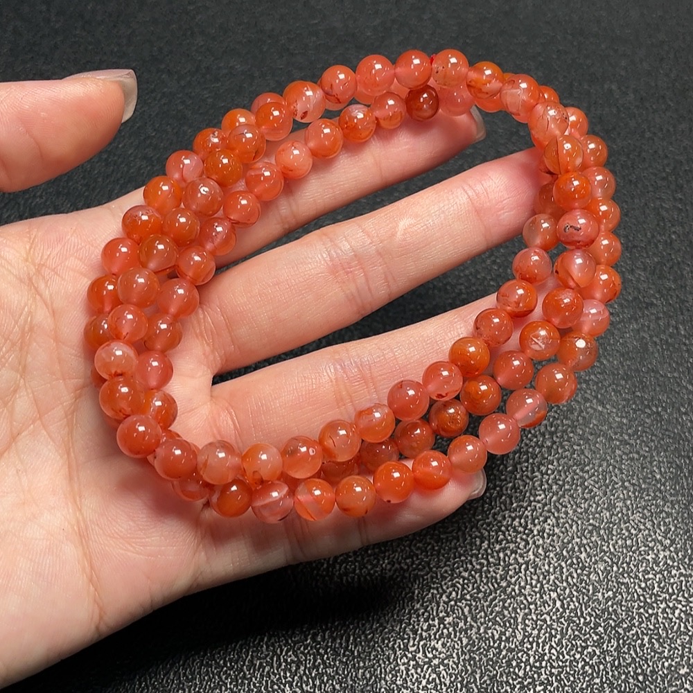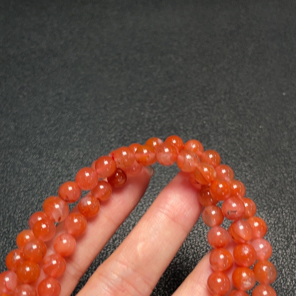 South Red Agate Bead Necklace with Visible Organic Matter, Total Weight Approx. 44.1g, Bead Size About 6.6mm