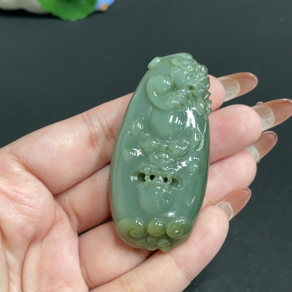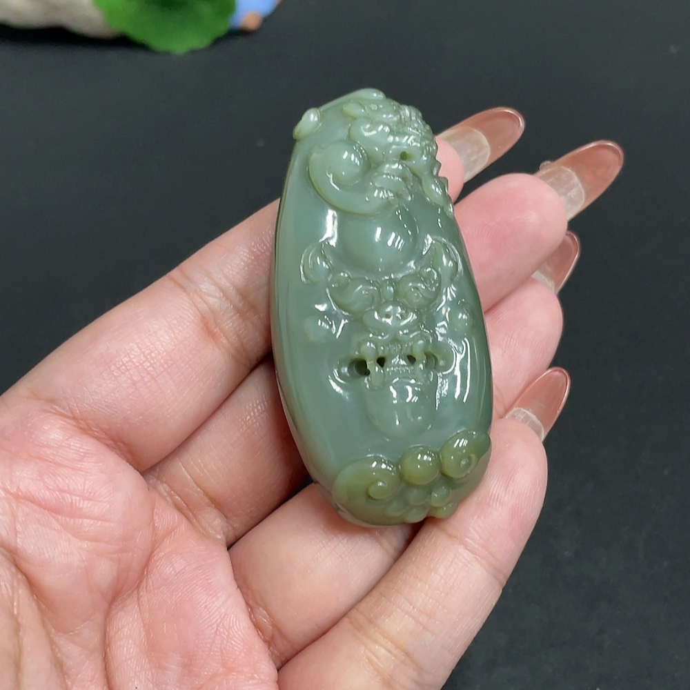 Hetian Jade Pendant Auspicious Beast Total Weight Approx. 48.7g
