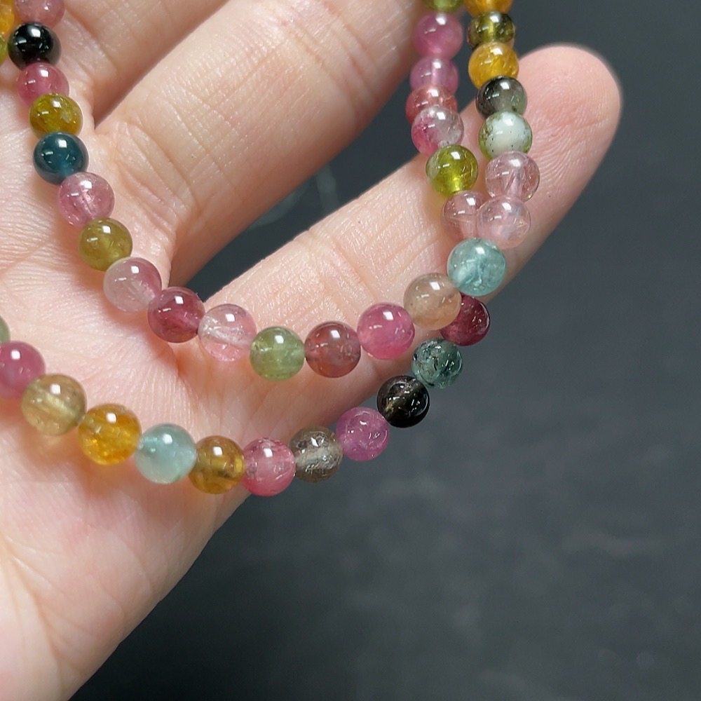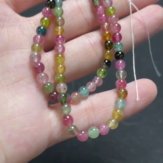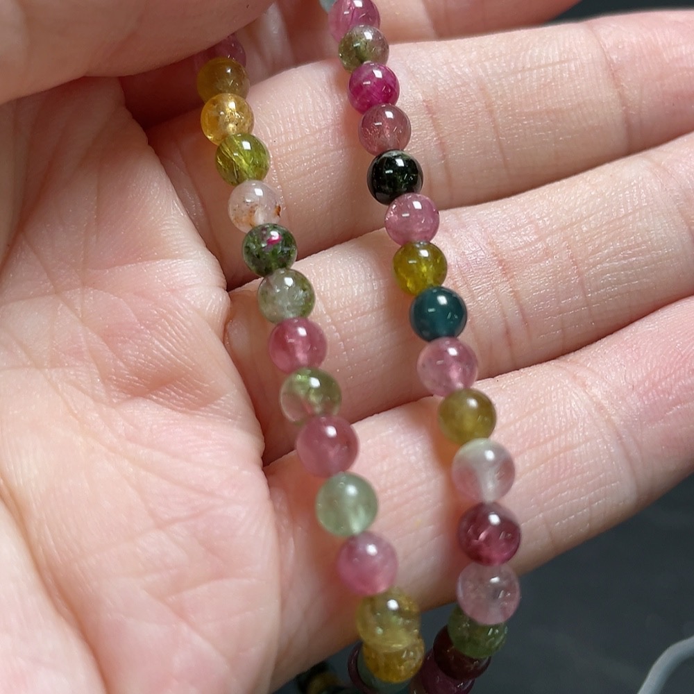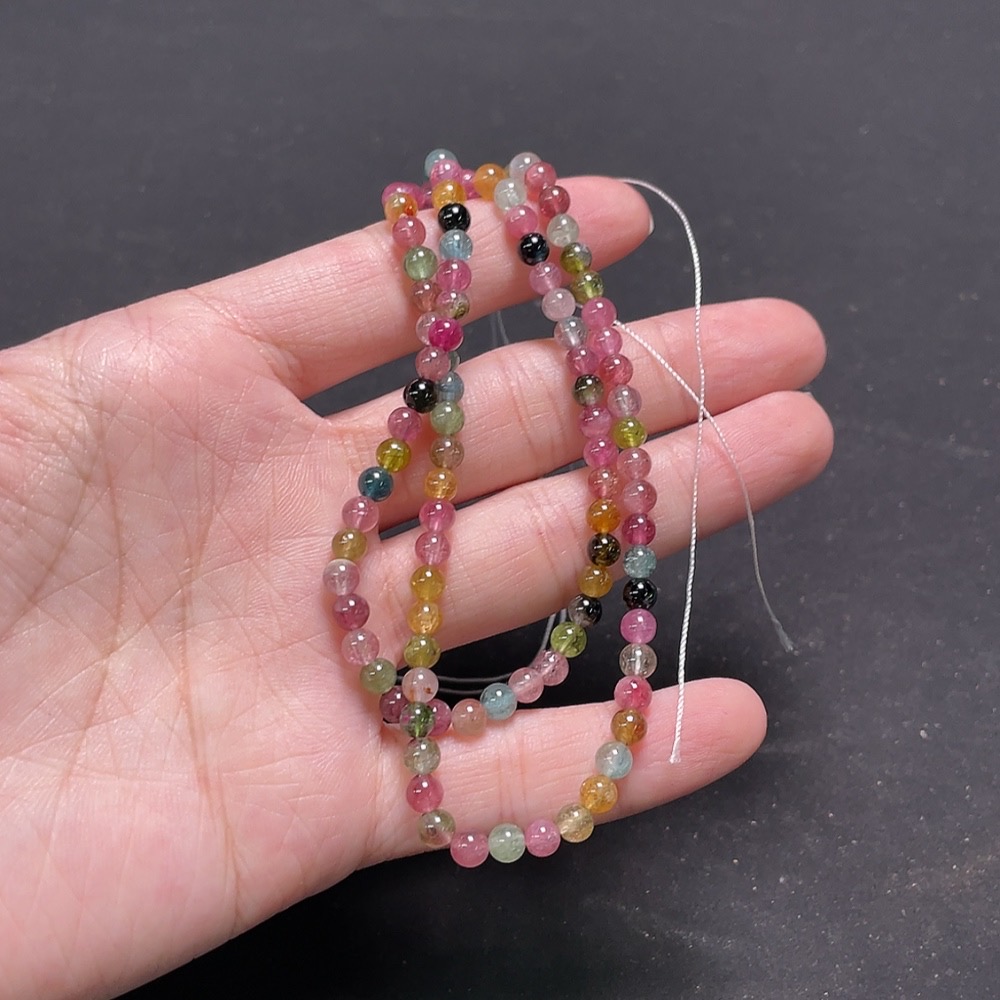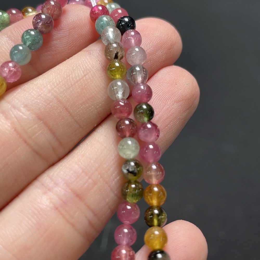 Tourmaline bead necklace with other mineral components and visible organic matter, total weight approx. 10.2g, size about 4mm (mineral)