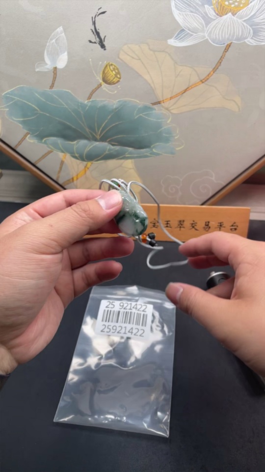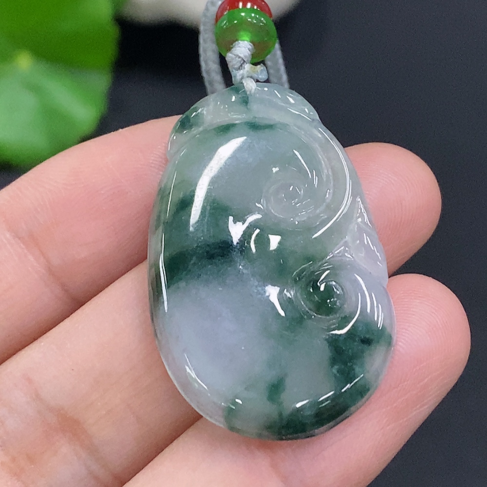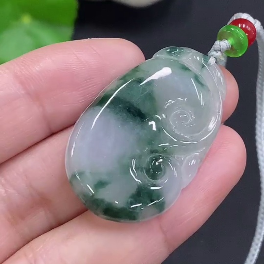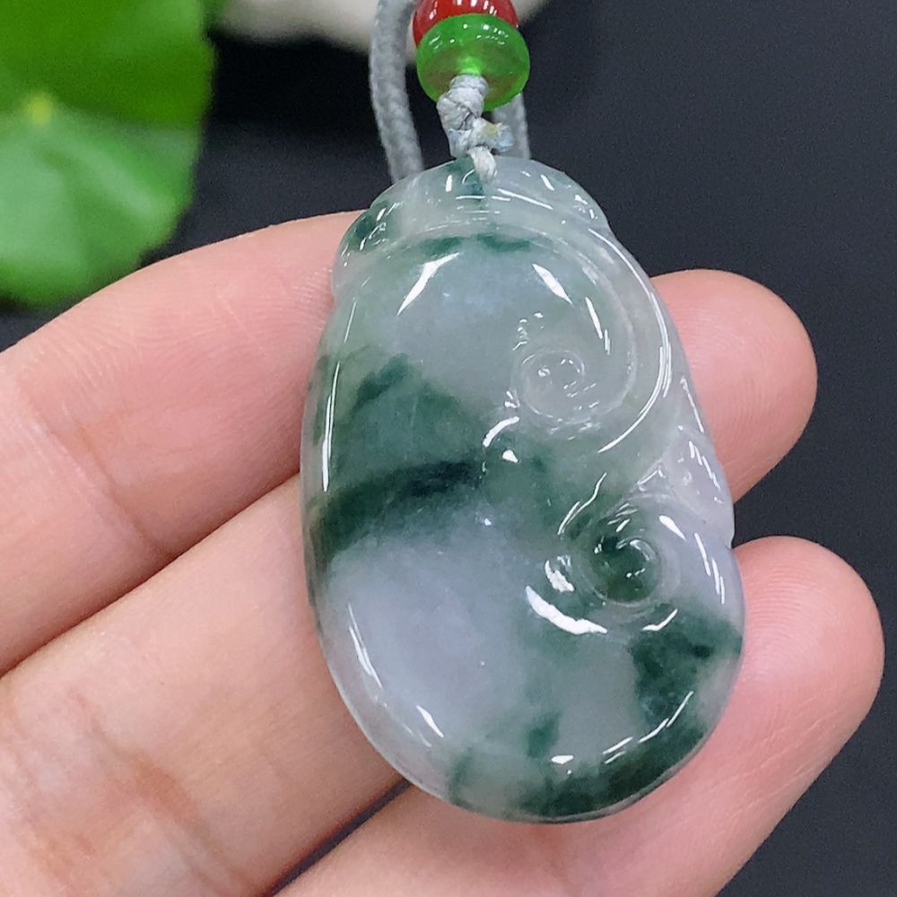 Jadeite Ruyi Pendant, total weight including cord approx. 7.7g