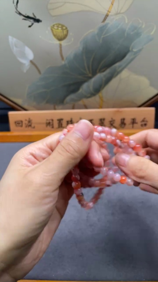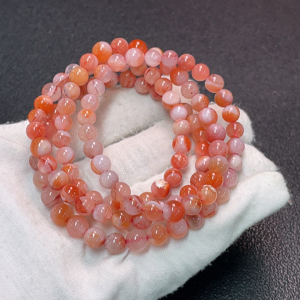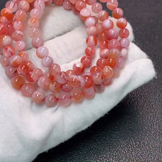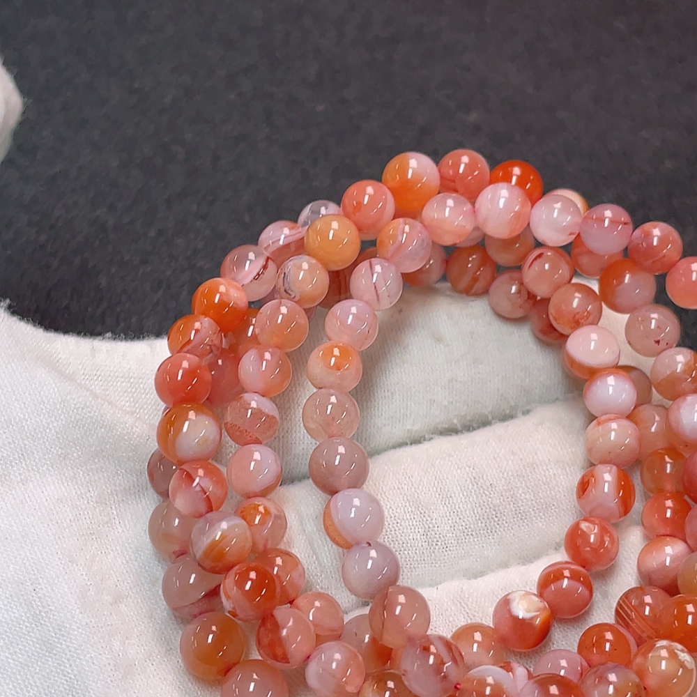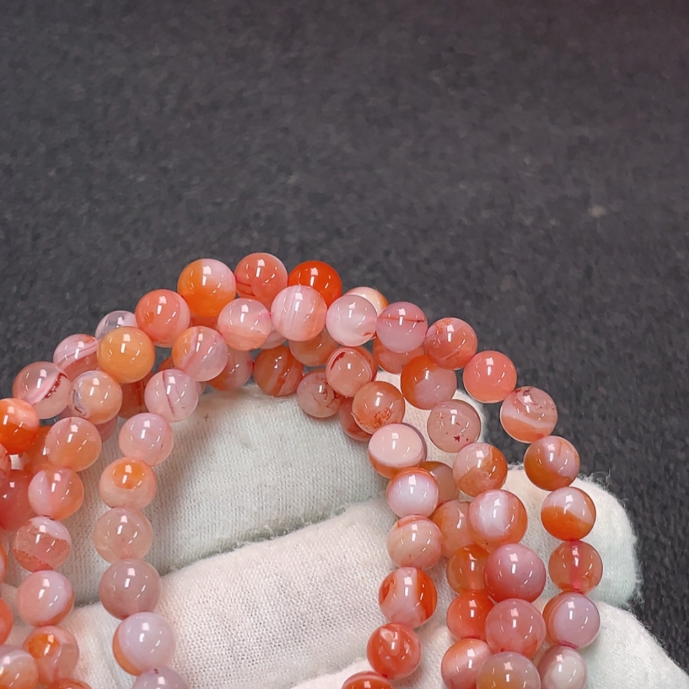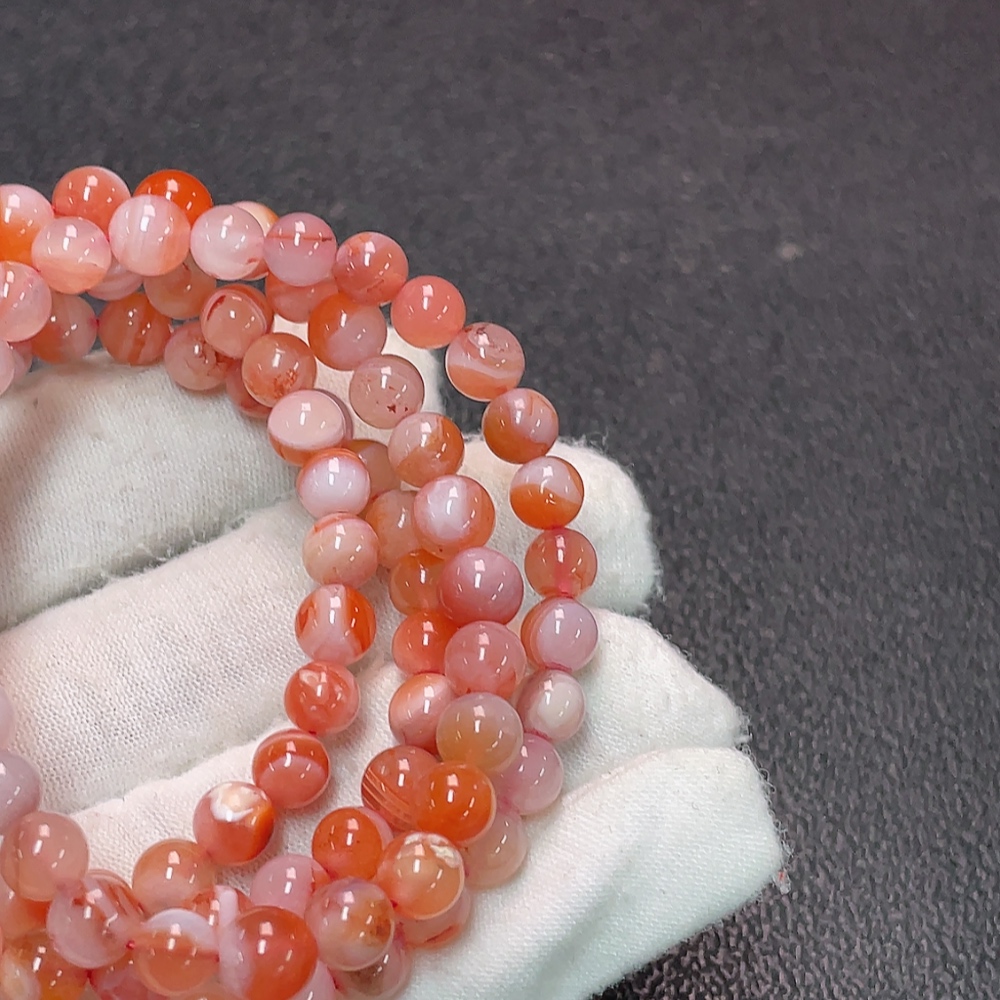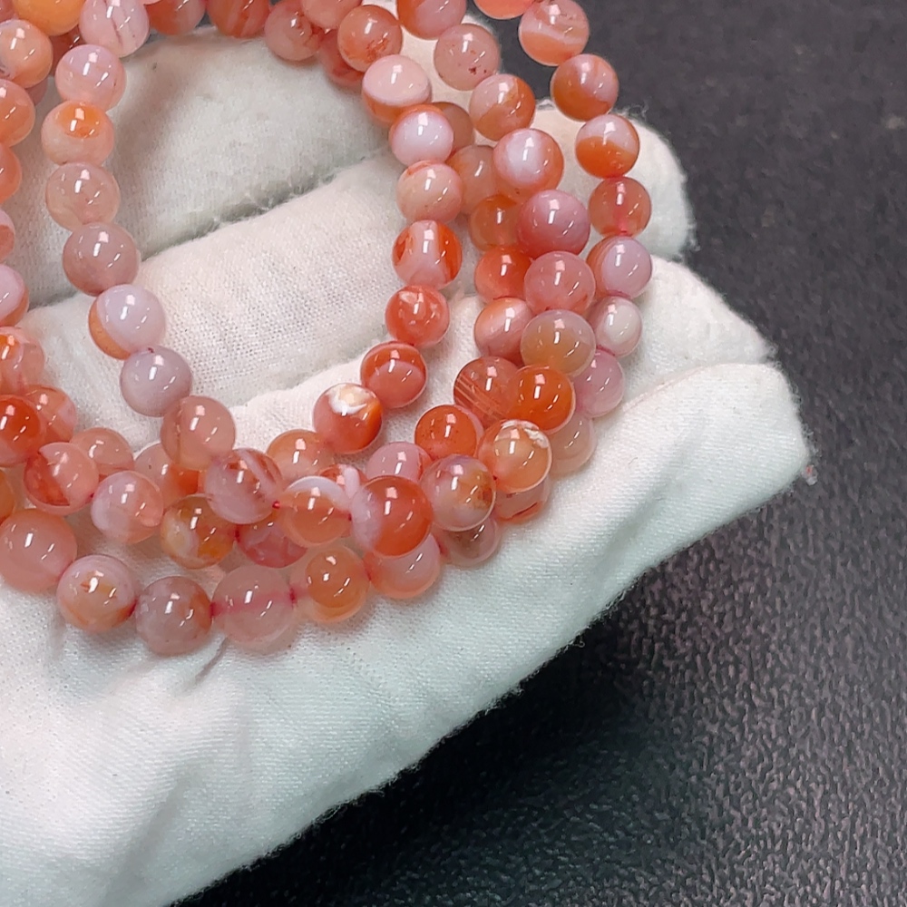 Red Agate Beaded Necklace with Visible Organic Matter, Total Weight Approximately 38.24g, About 6.4mm in Size