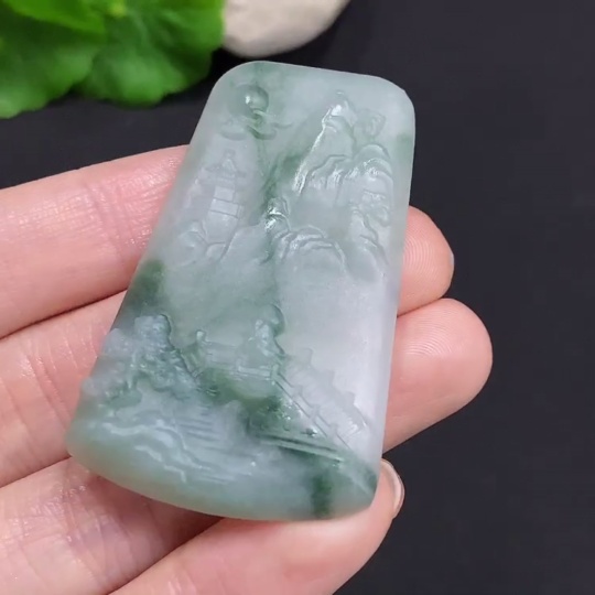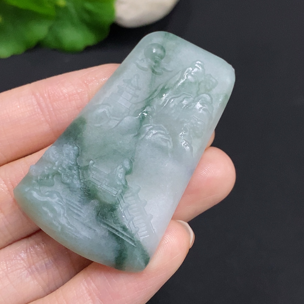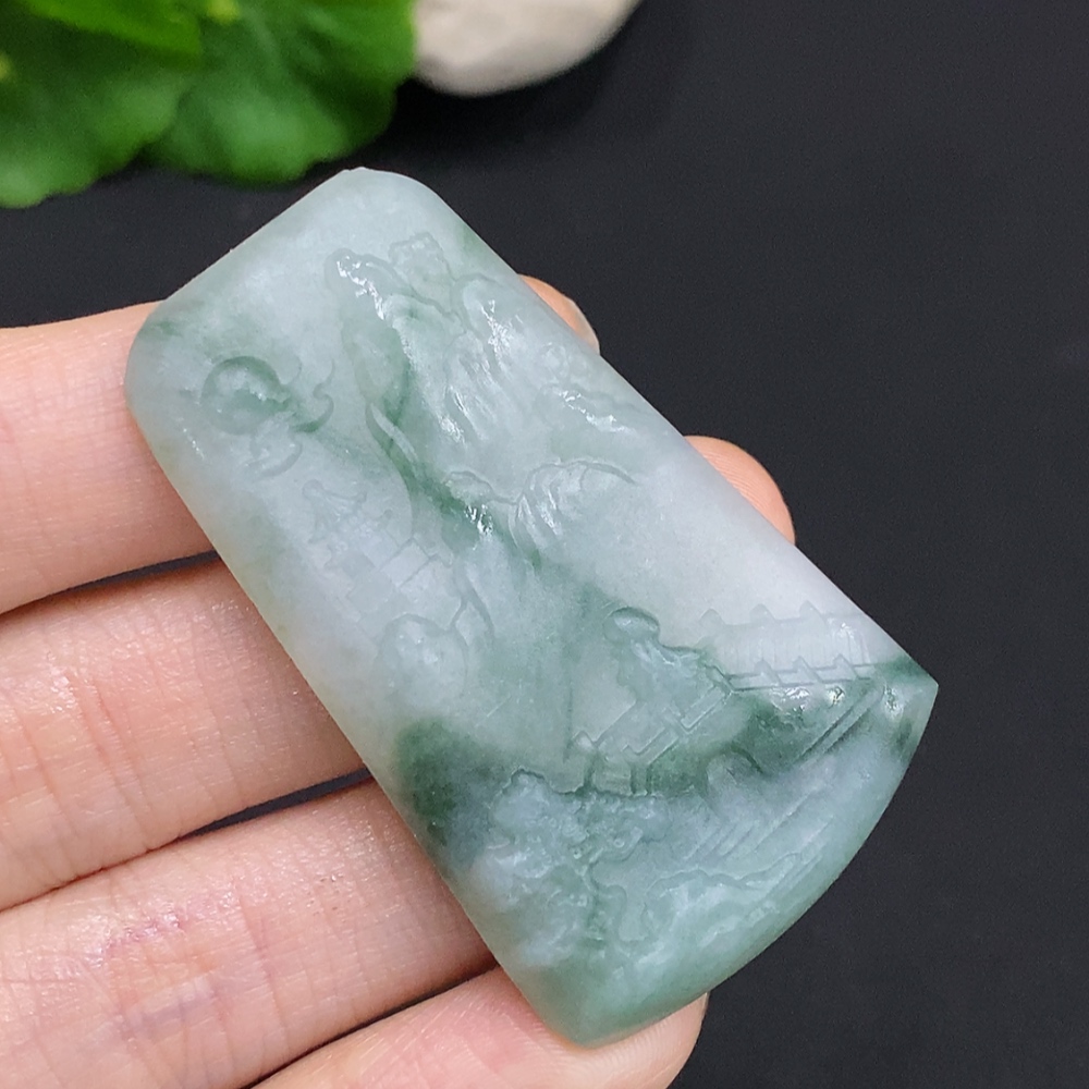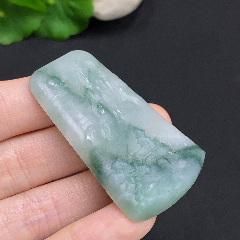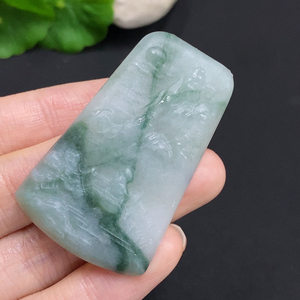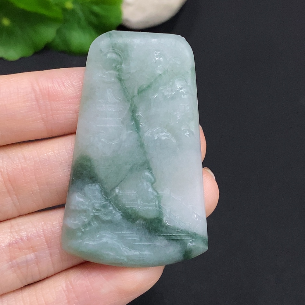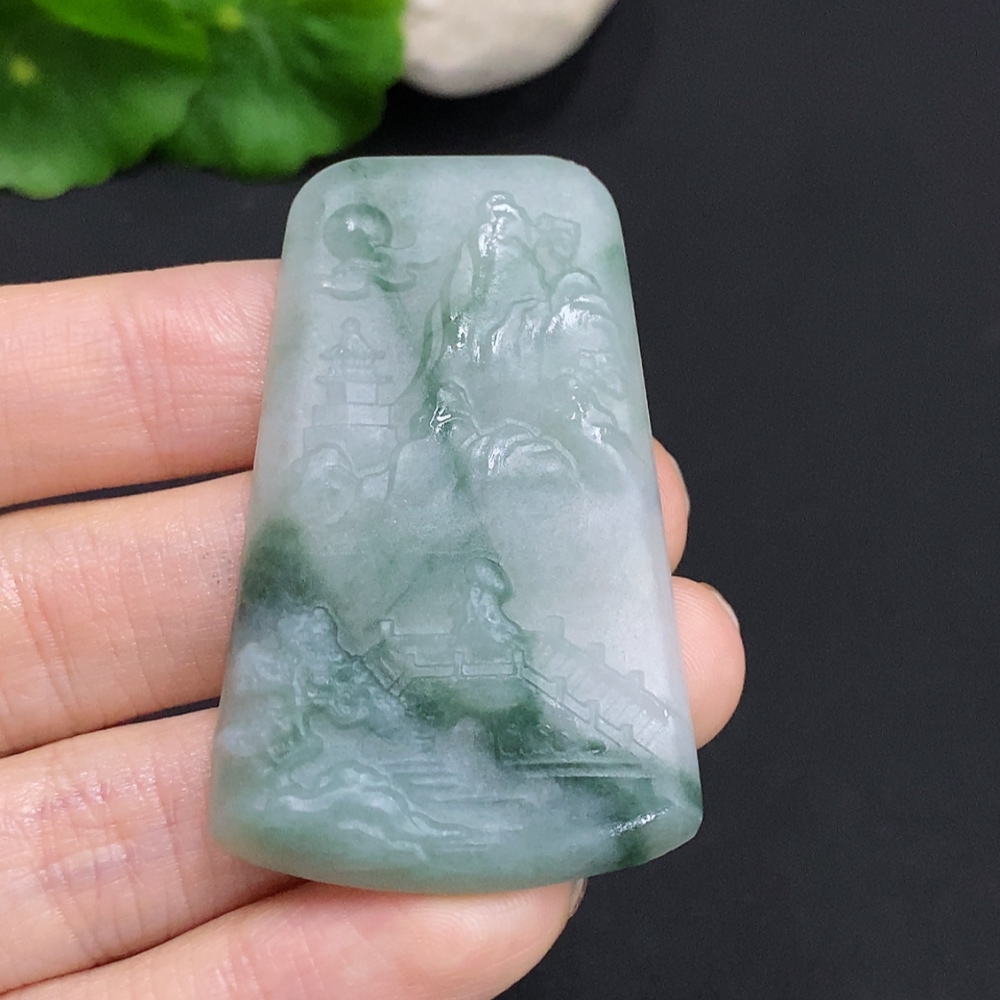 Jadeite Unpolished Landscape Pendant, Total Weight Approximately 18.1g