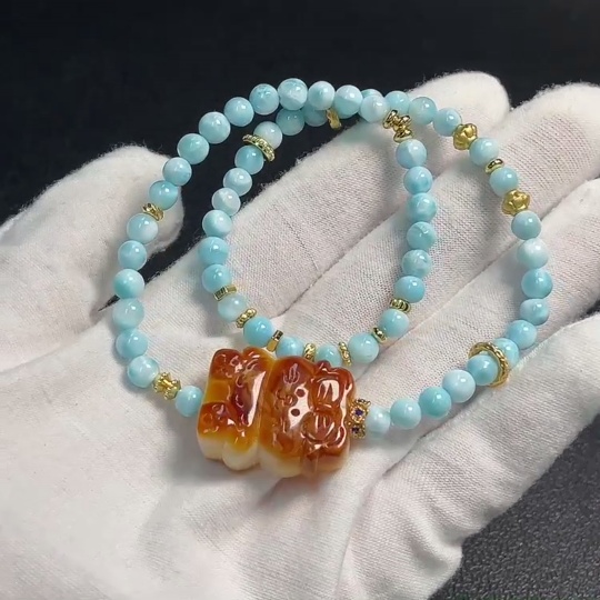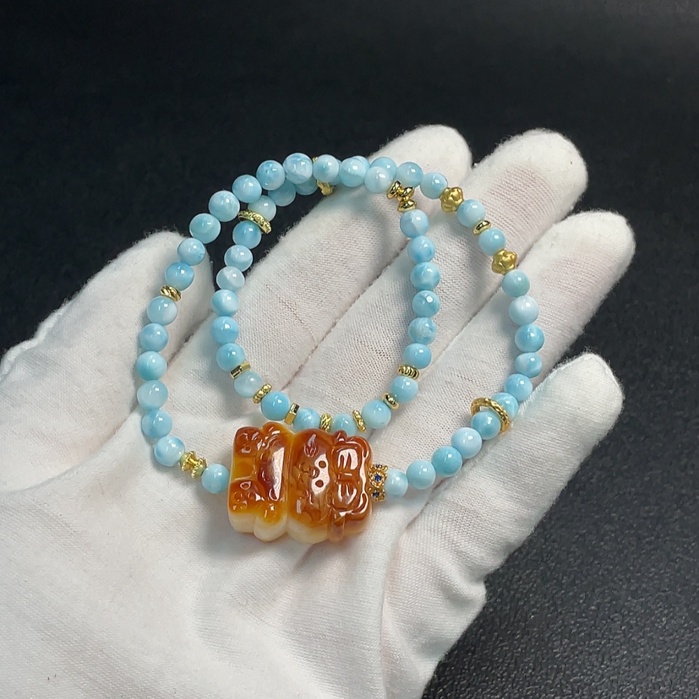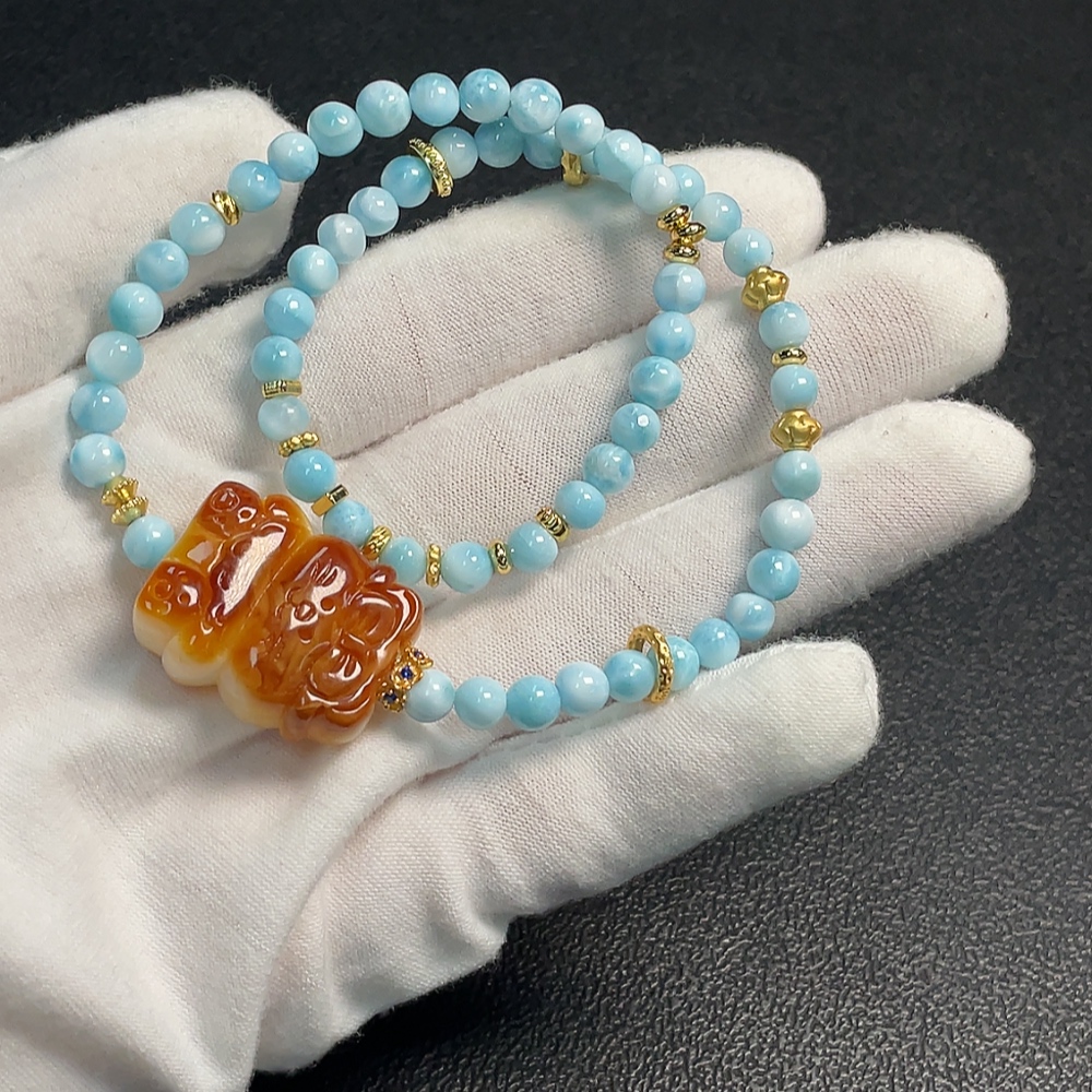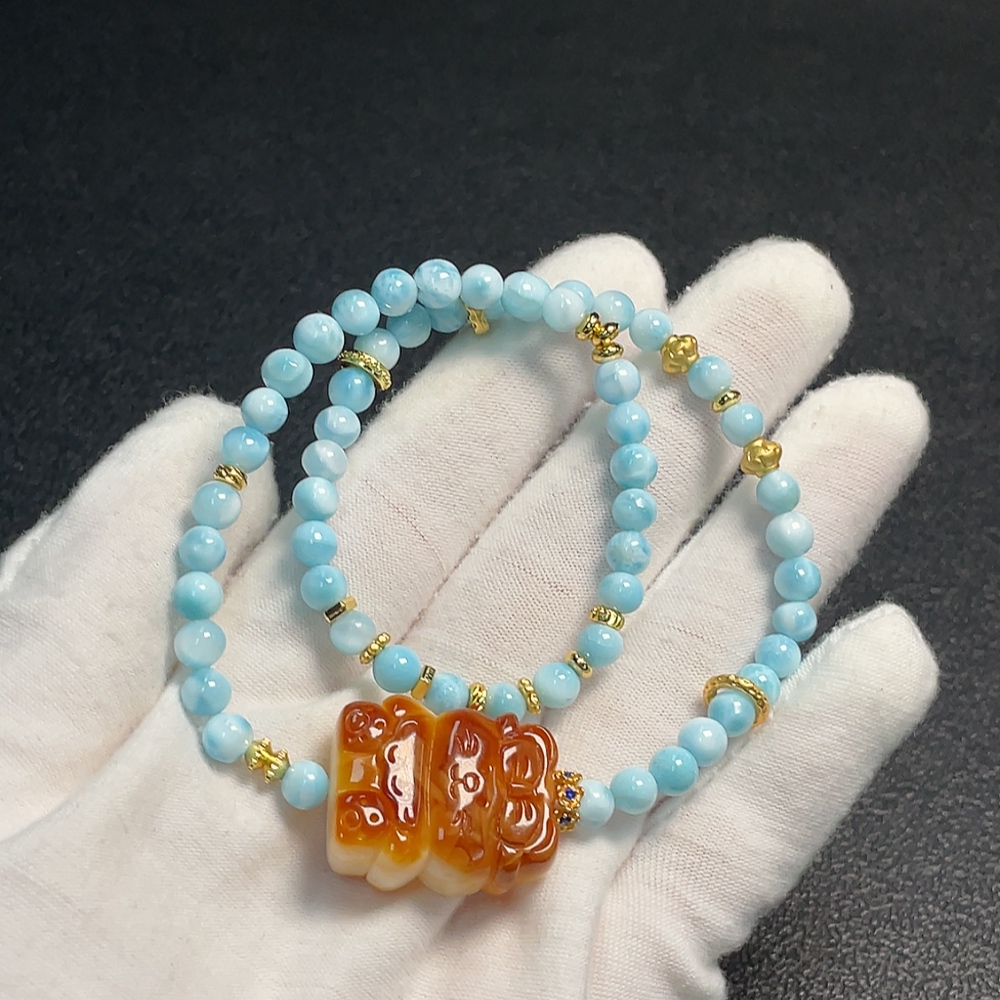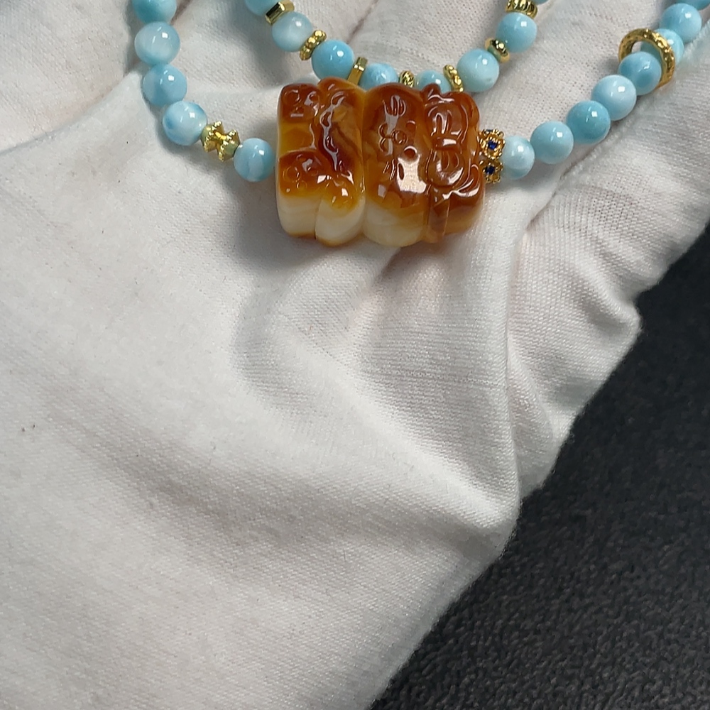 Amber Beeswax Pendant with Larimar, Non-Gold, Total Weight Approx. 19.36g