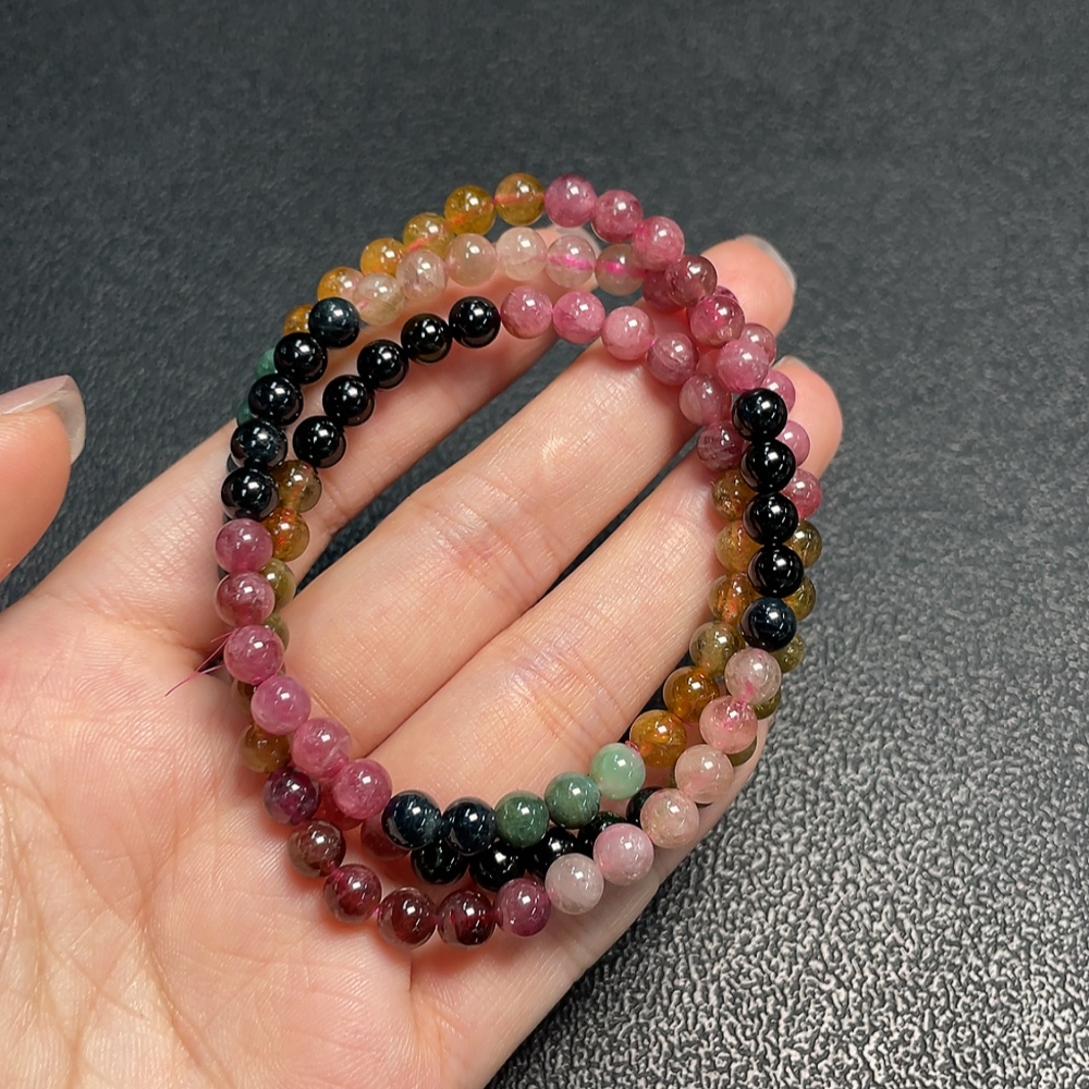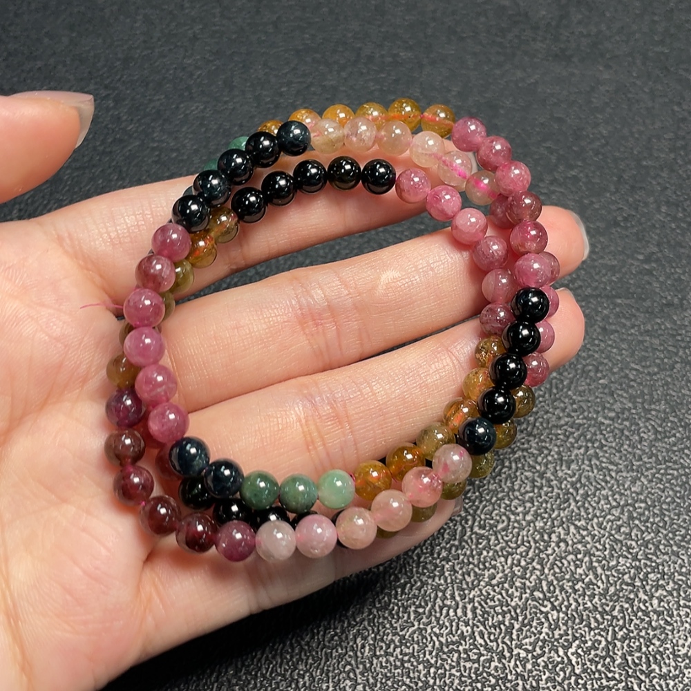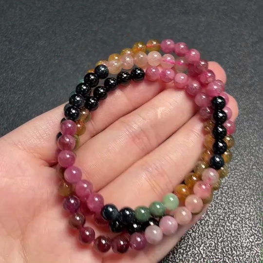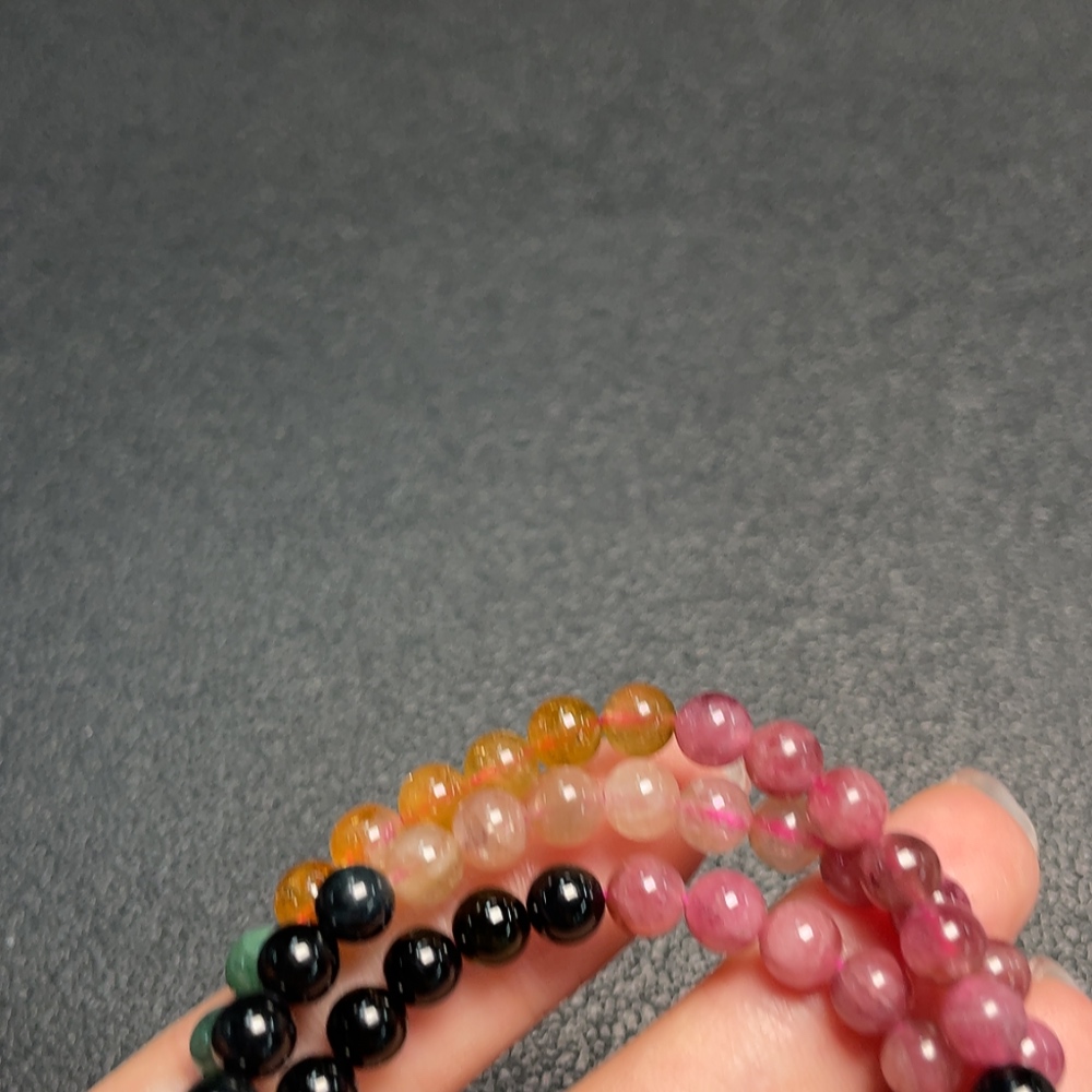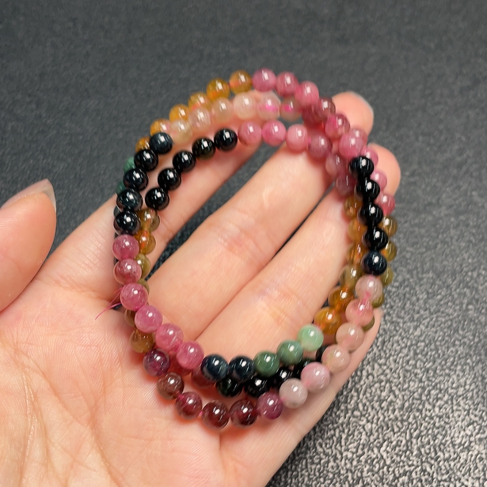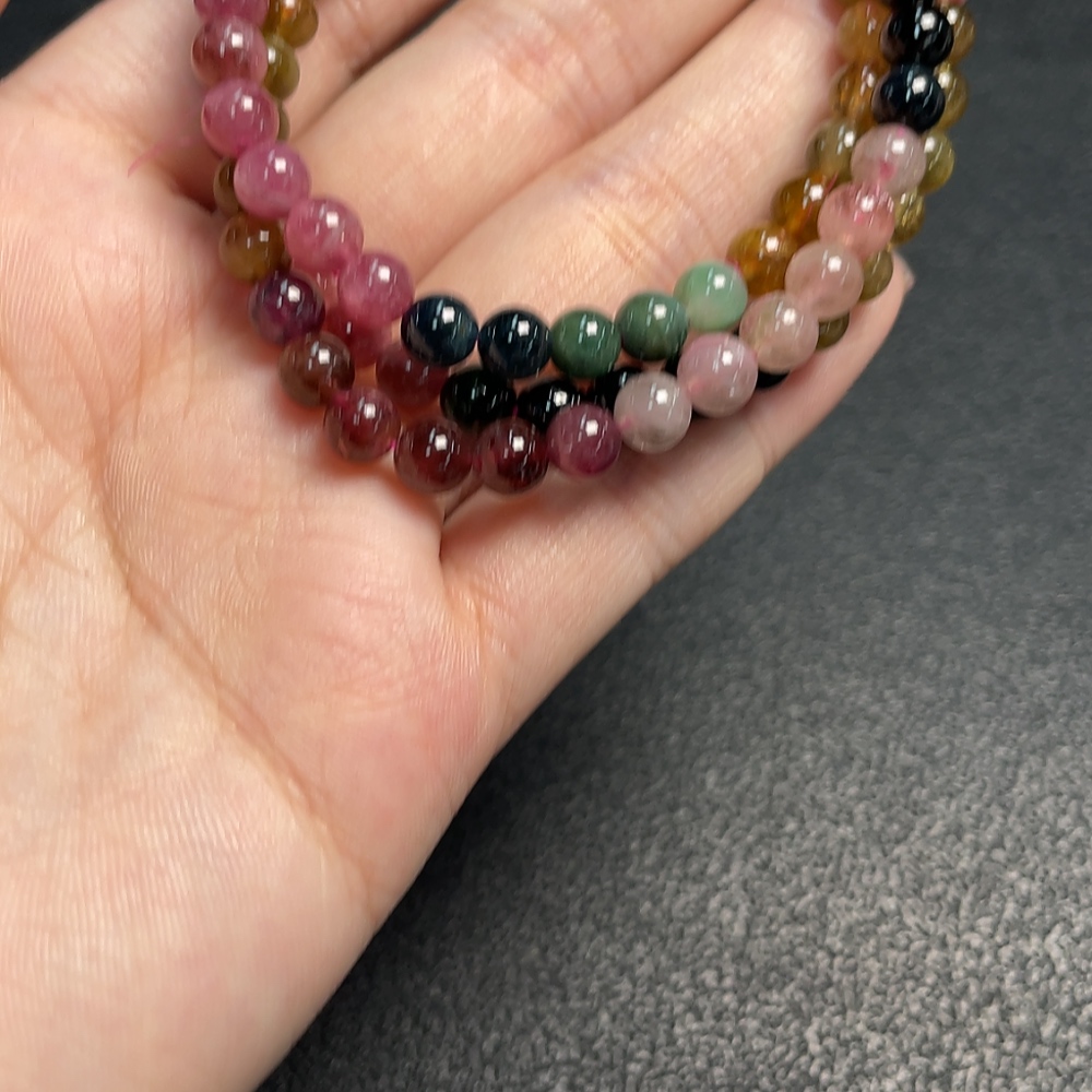 Tourmaline bead necklace with visible organic matter and other mineral components, total weight approximately 26.86g, bead size about 5.5mm
