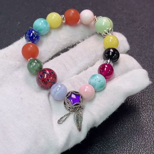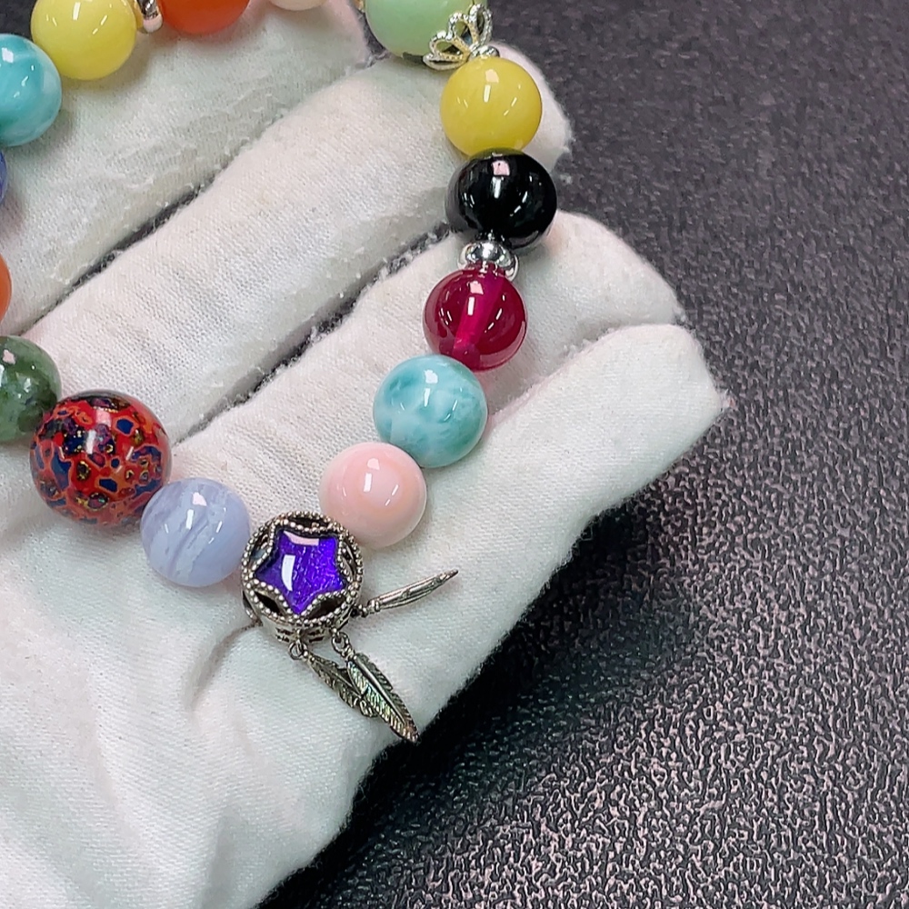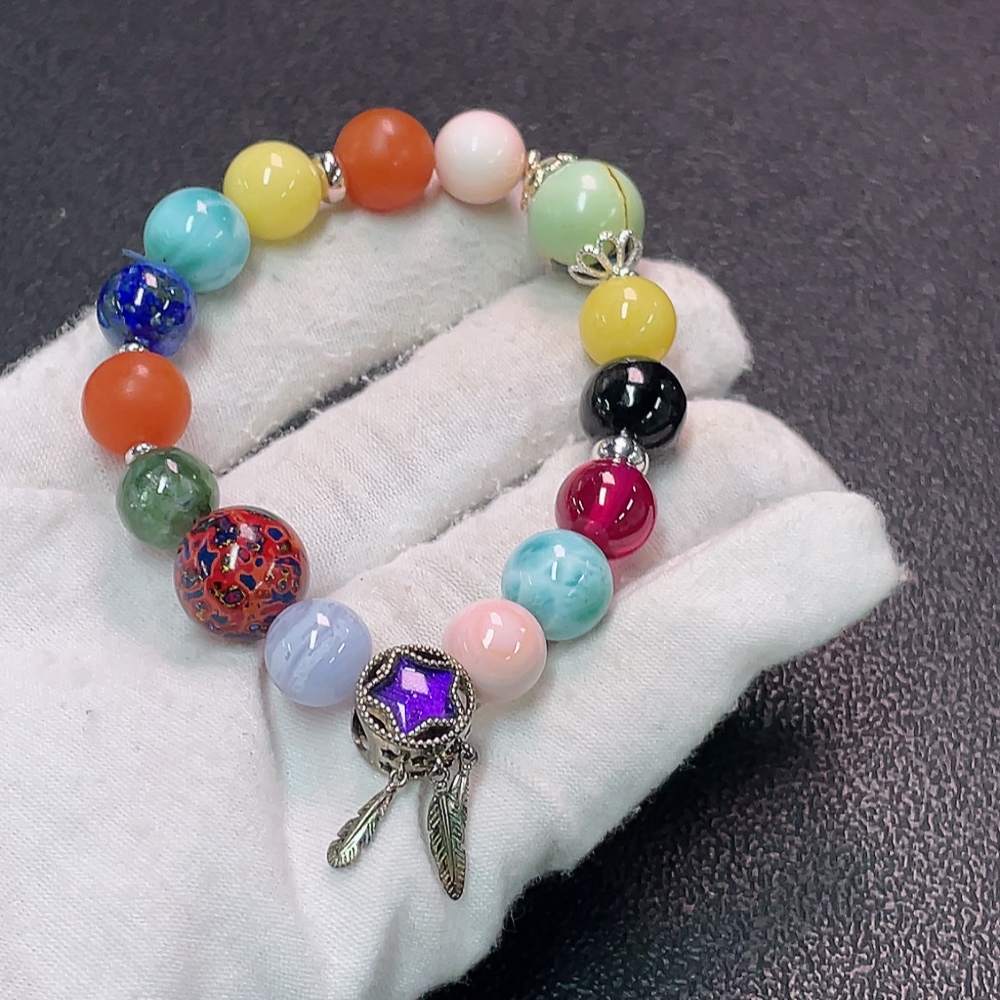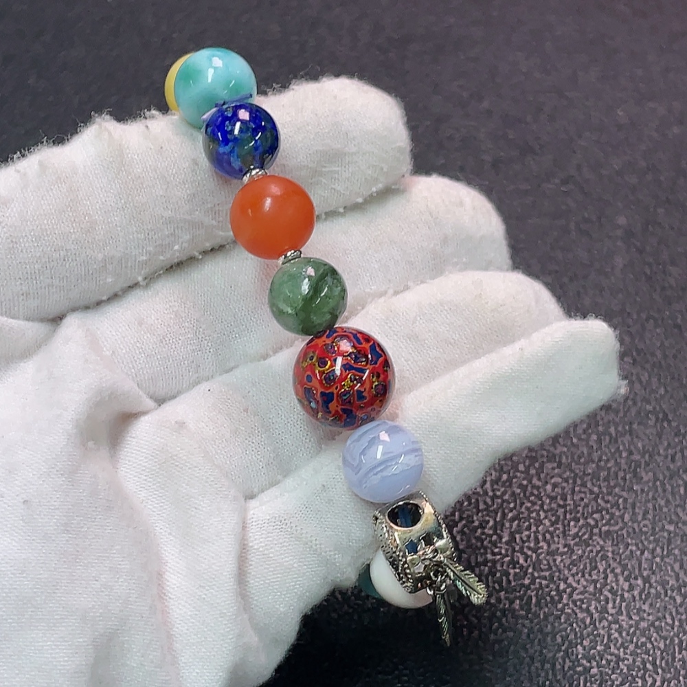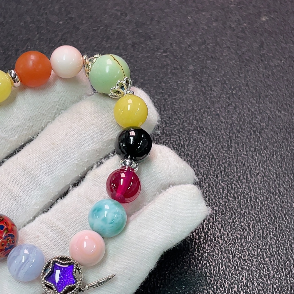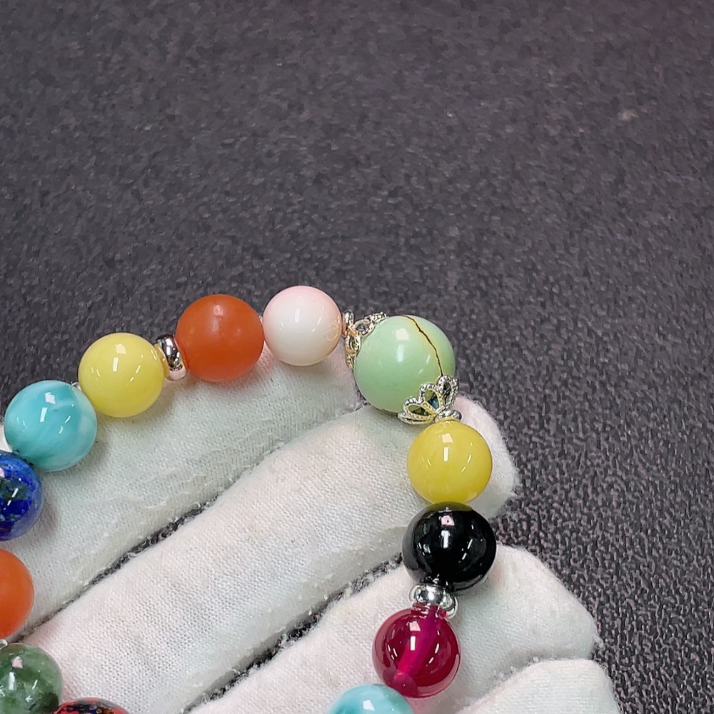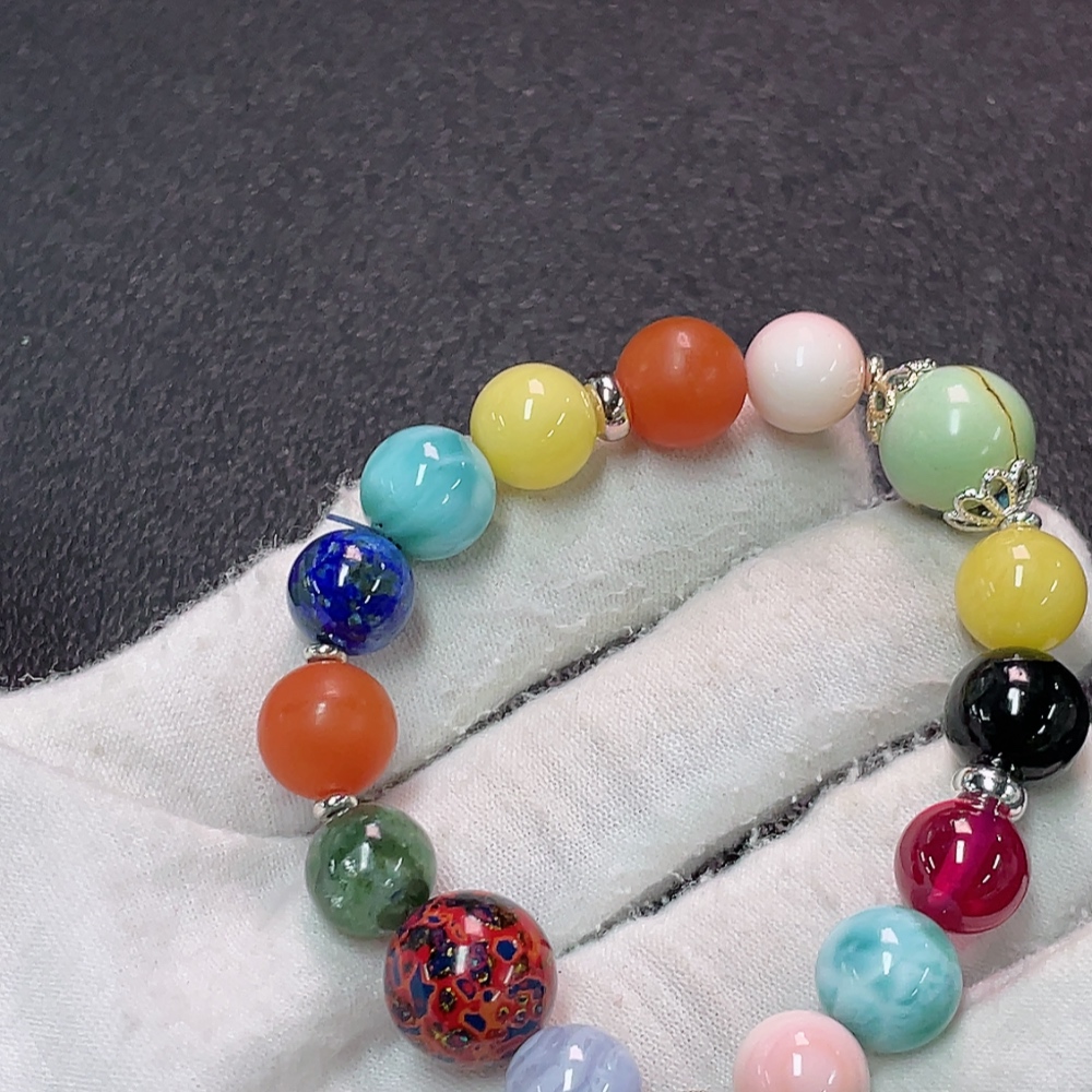 Amber Beeswax Bracelet with South Red Agate and Larimar, Non-Gold, Stones May Be Non-Natural, Total Weight Approx. 26.46g, Size About 9.9mm