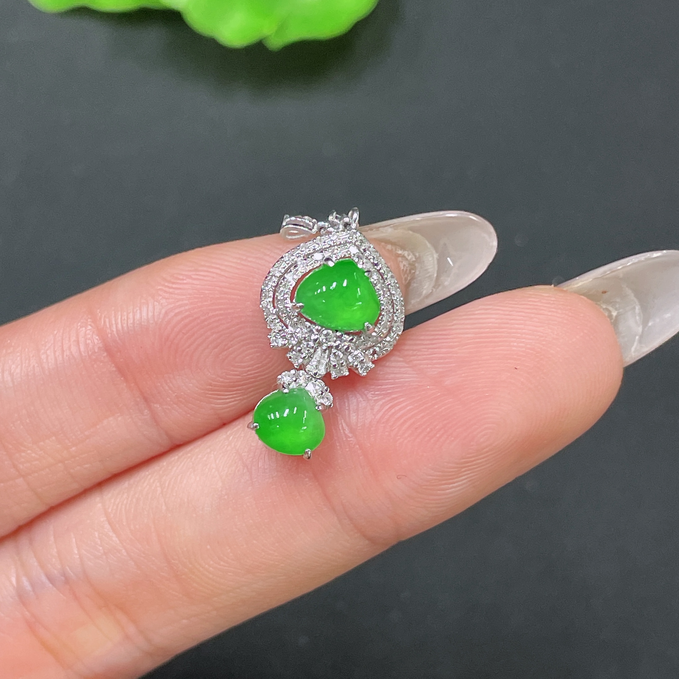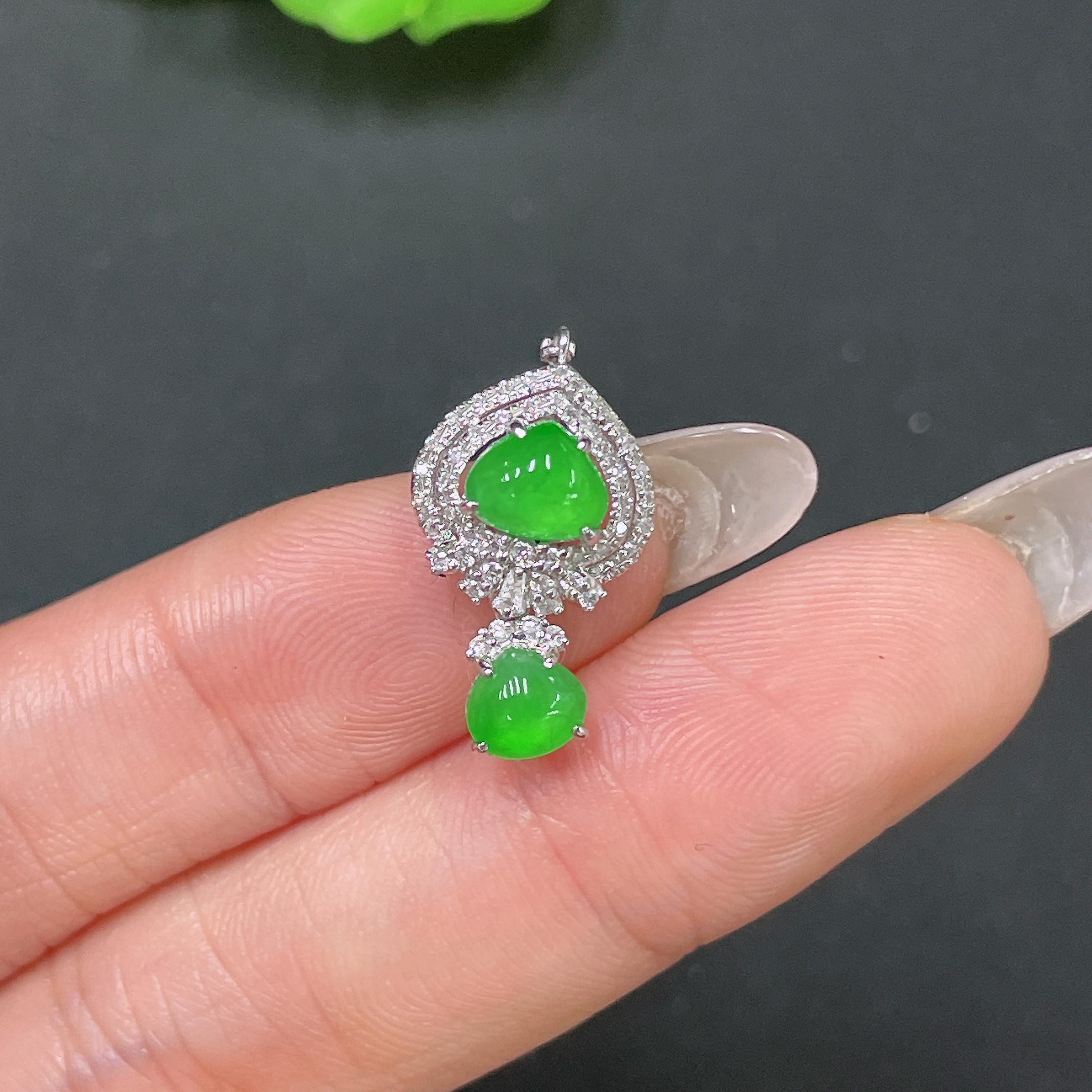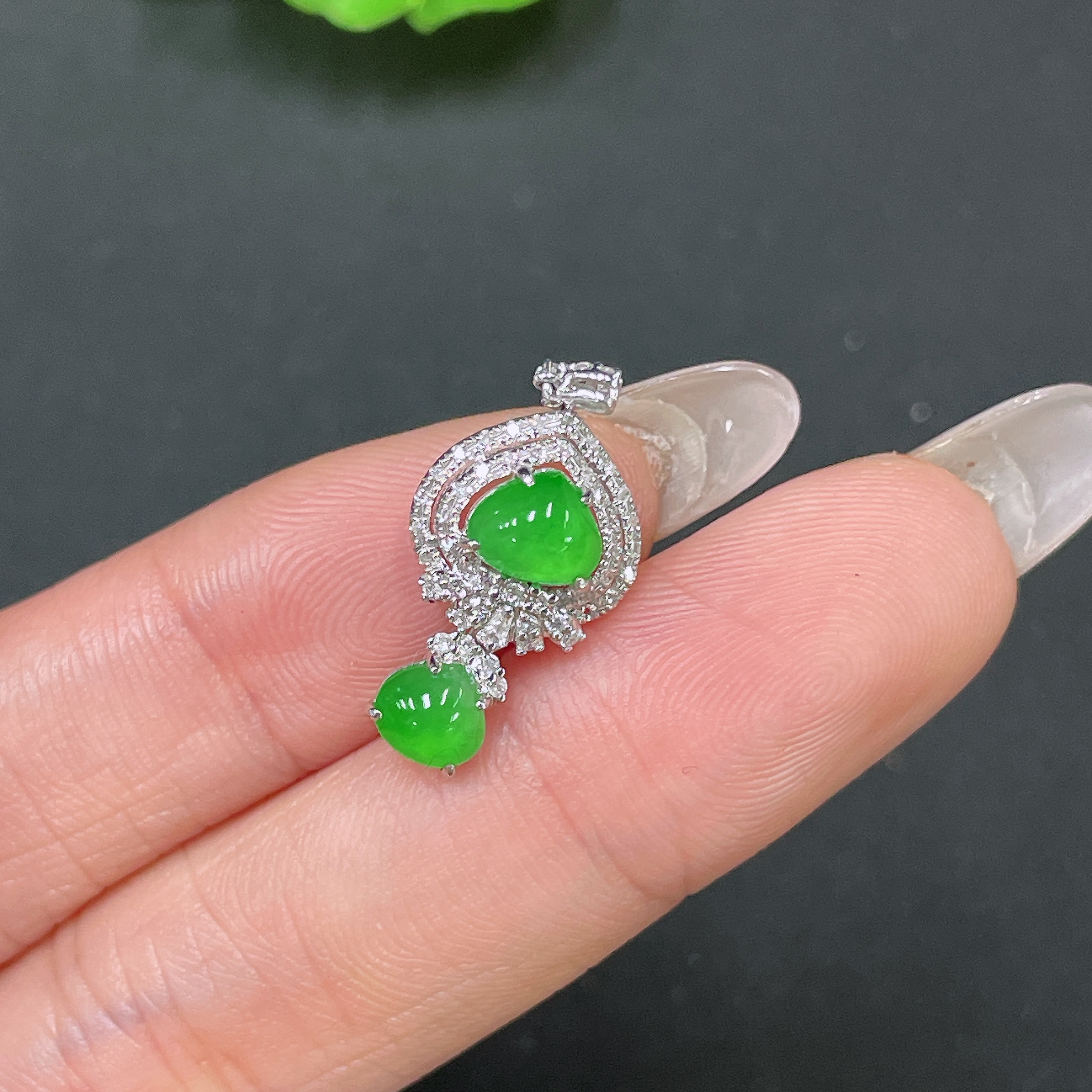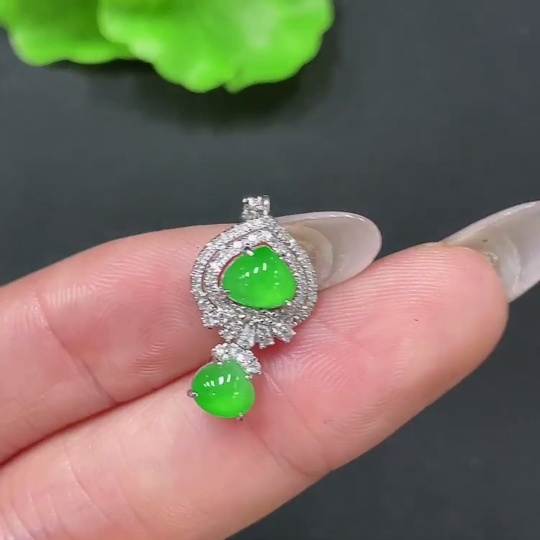Jadeite Pendant 18k Gold Set with Diamonds Total Weight Approx. 1.68g