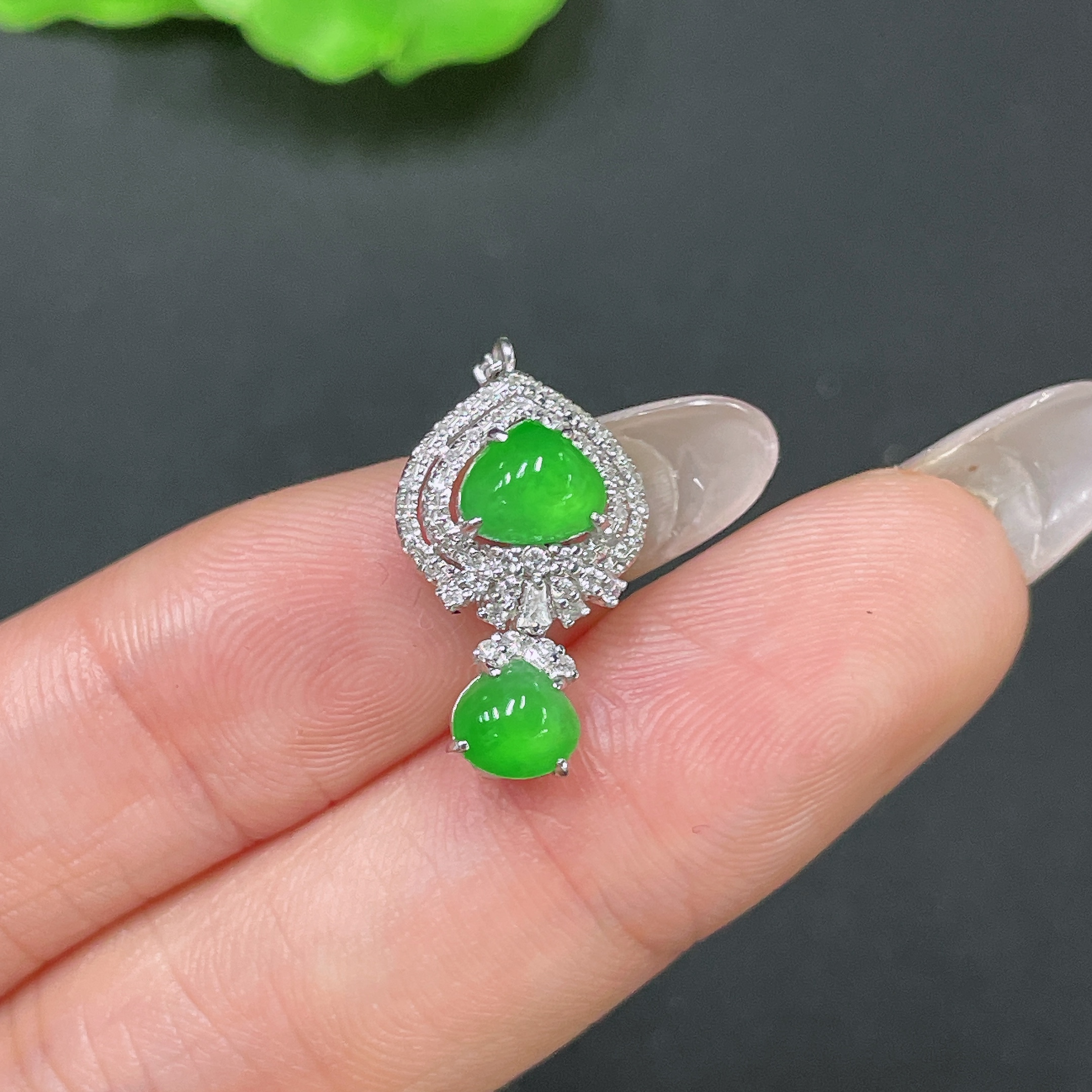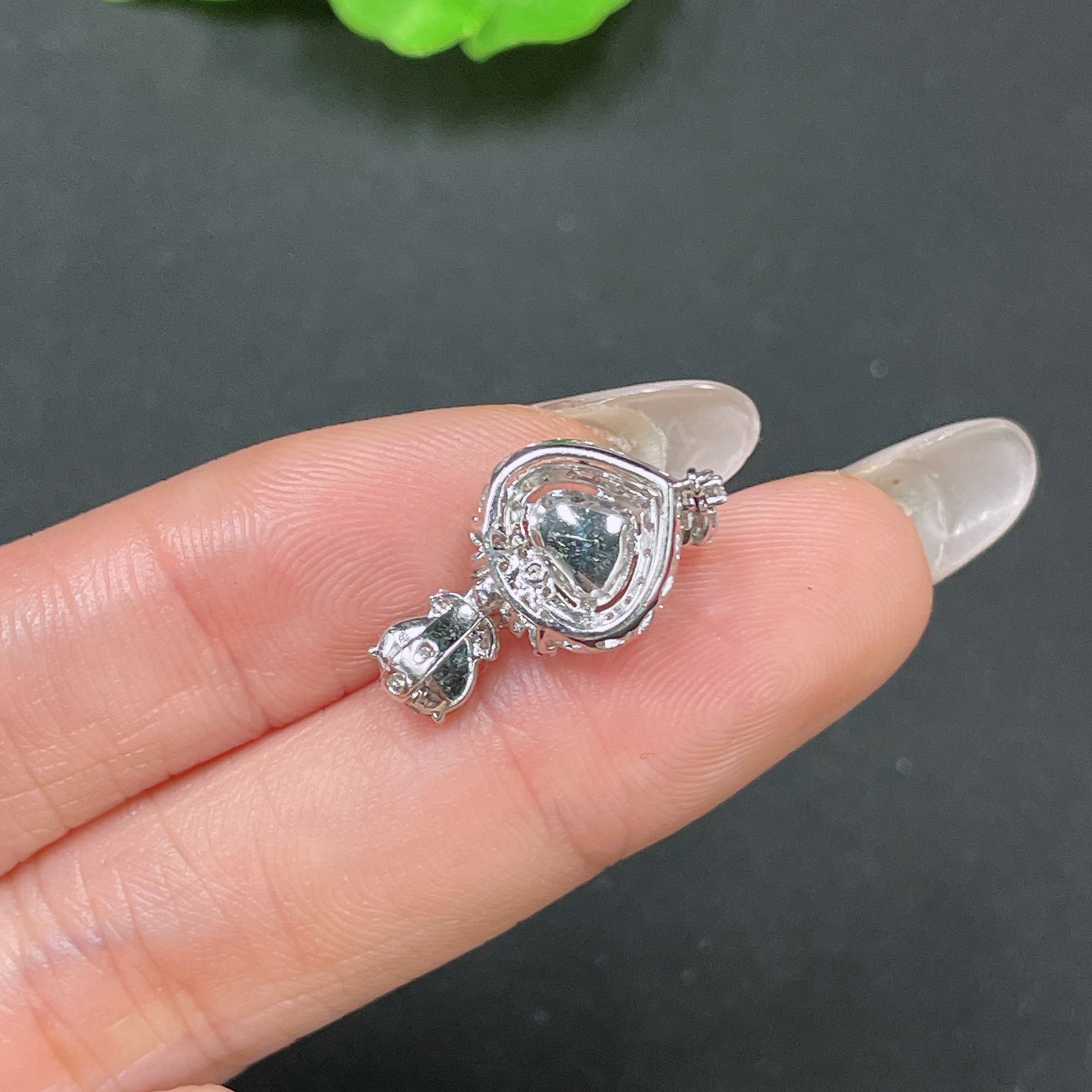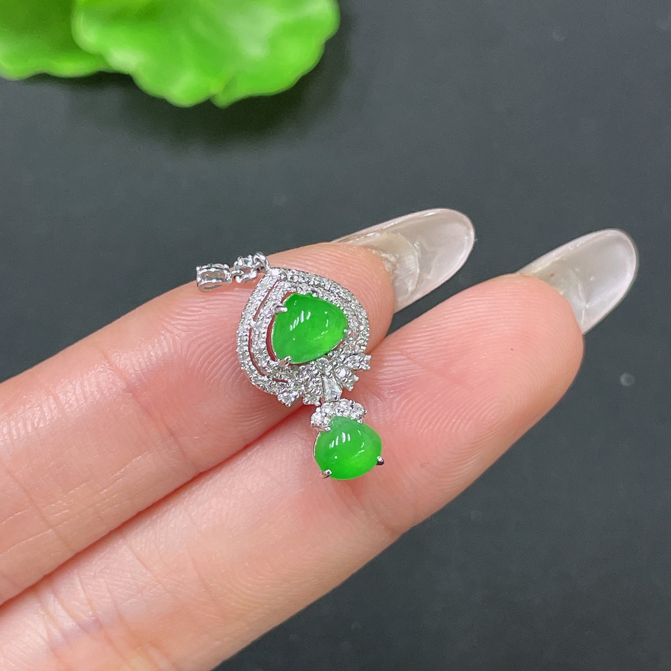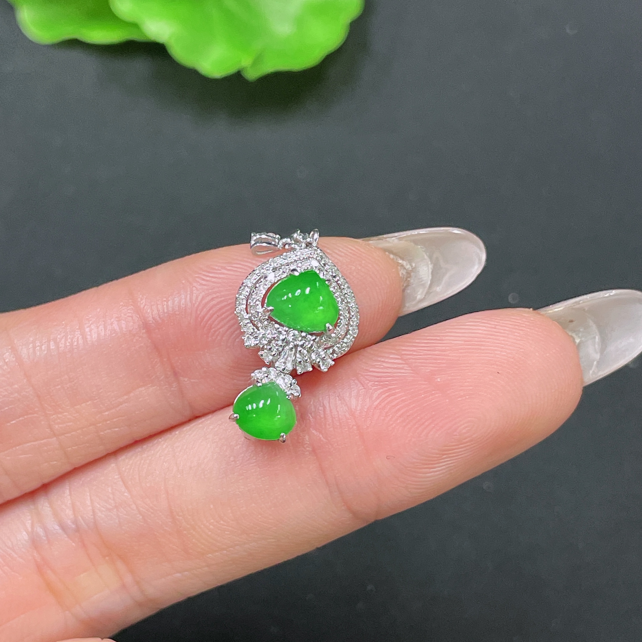 Jadeite Pendant 18k Gold Set with Diamonds Total Weight Approx. 1.68g
