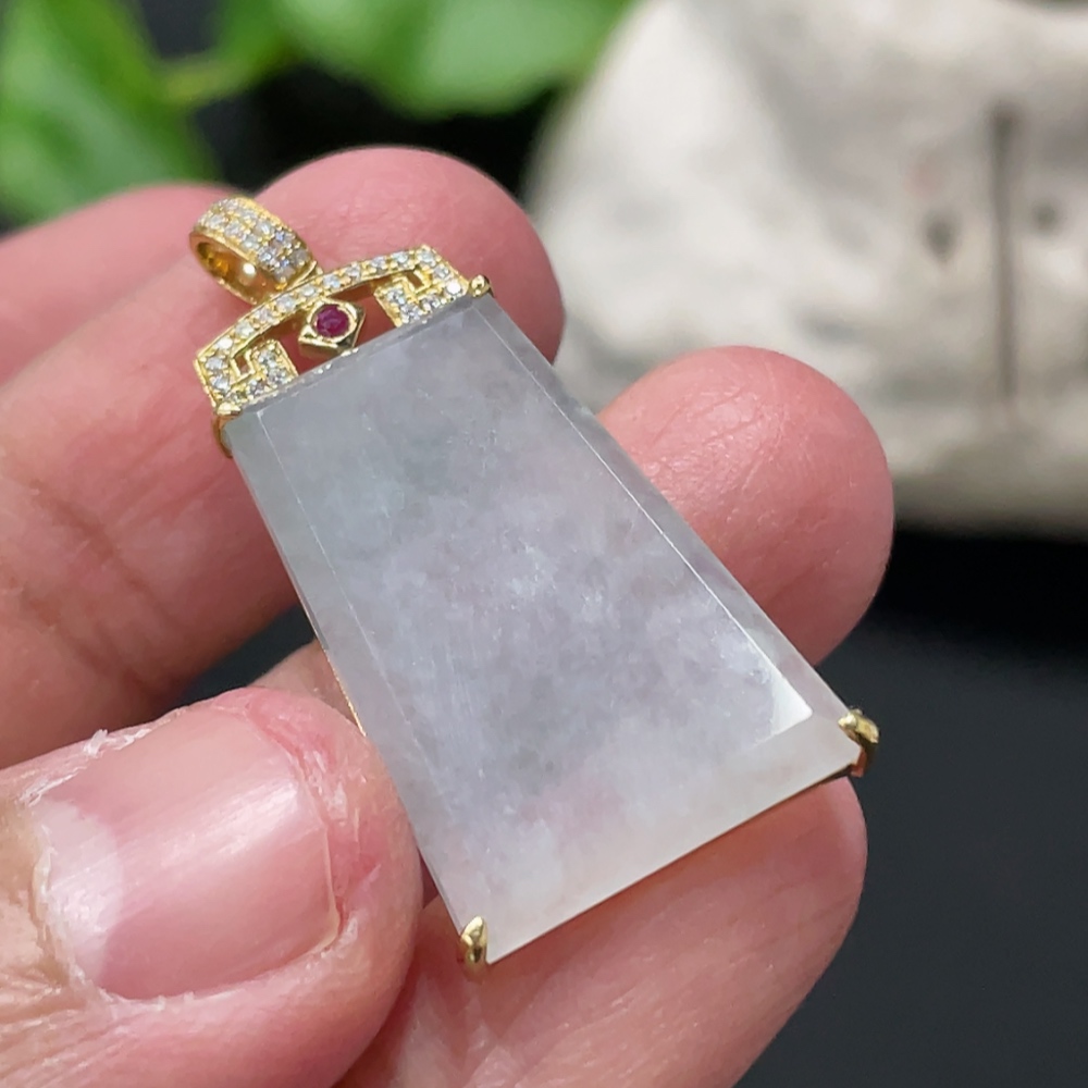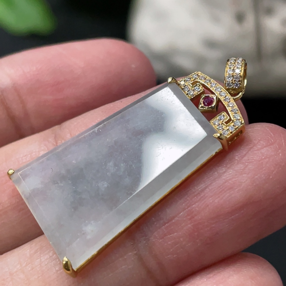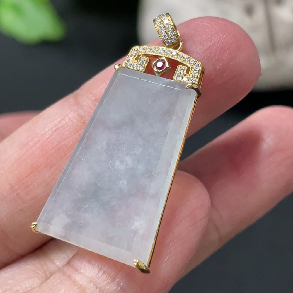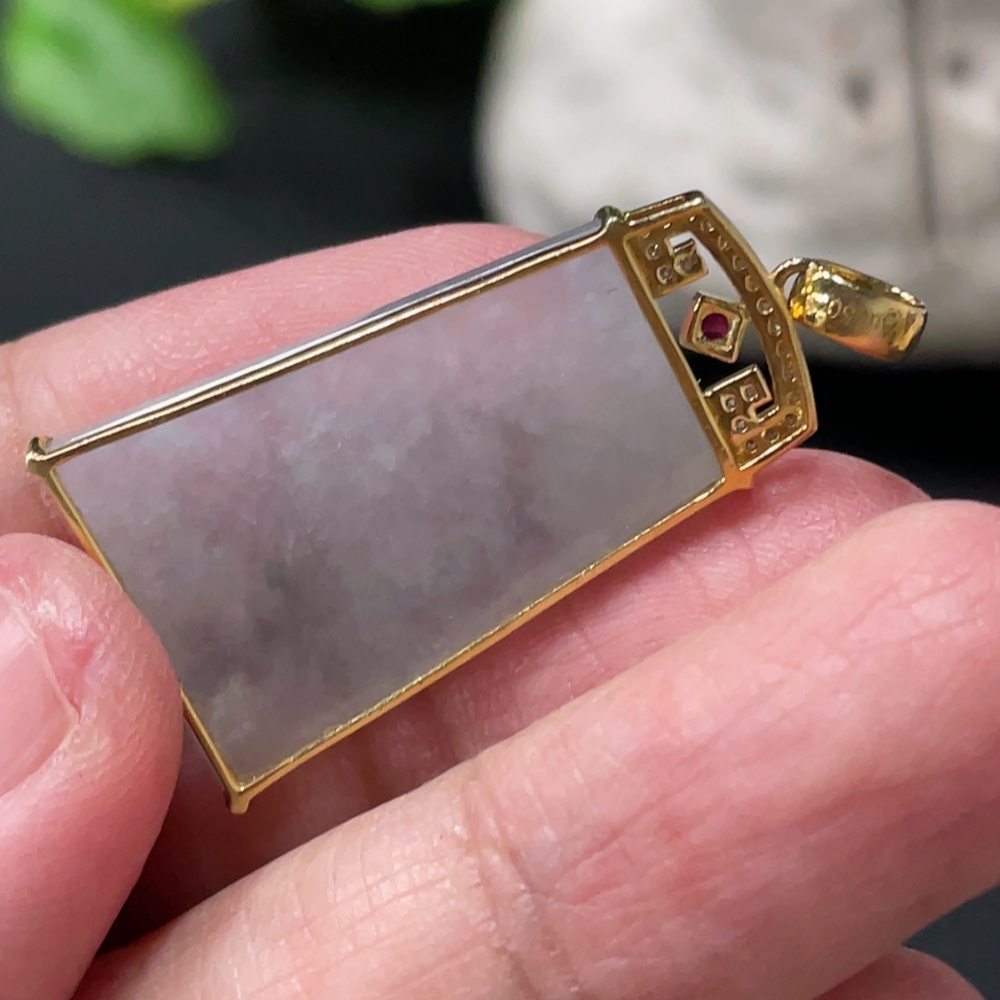 Jadeite Plain Pendant with 18k Gold Setting, Non-Diamond, Total Weight Approx. 4.2g
