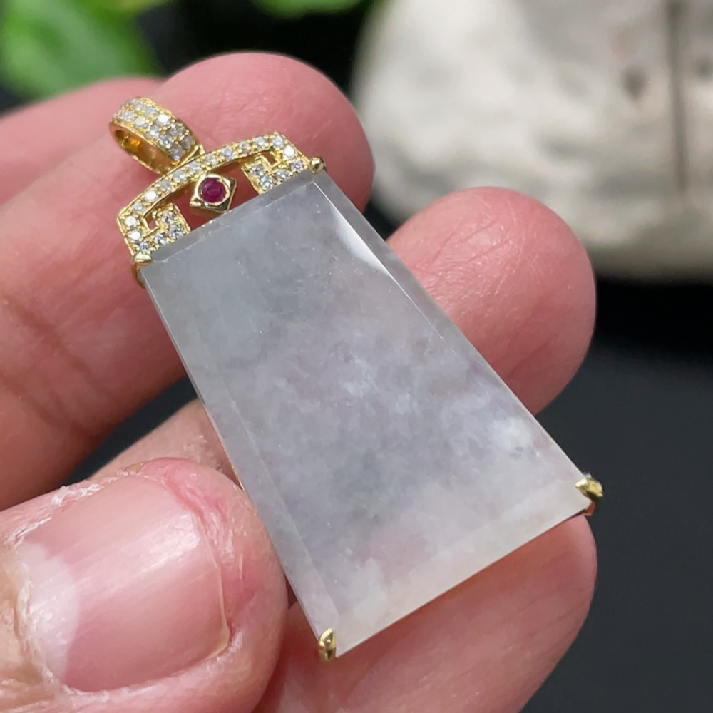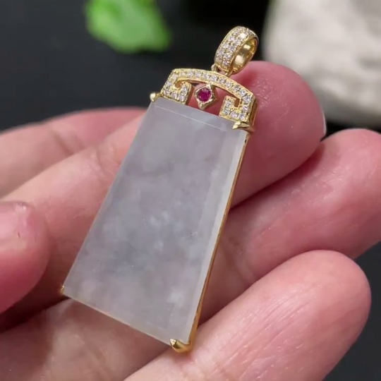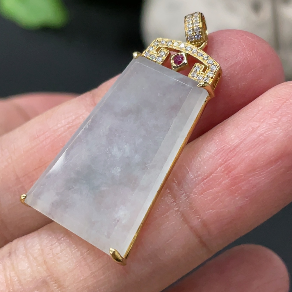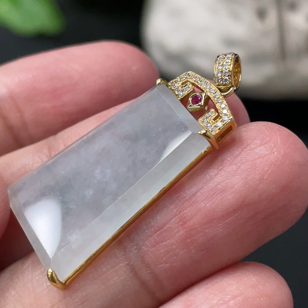 Jadeite Plain Pendant with 18k Gold Setting, Non-Diamond, Total Weight Approx. 4.2g