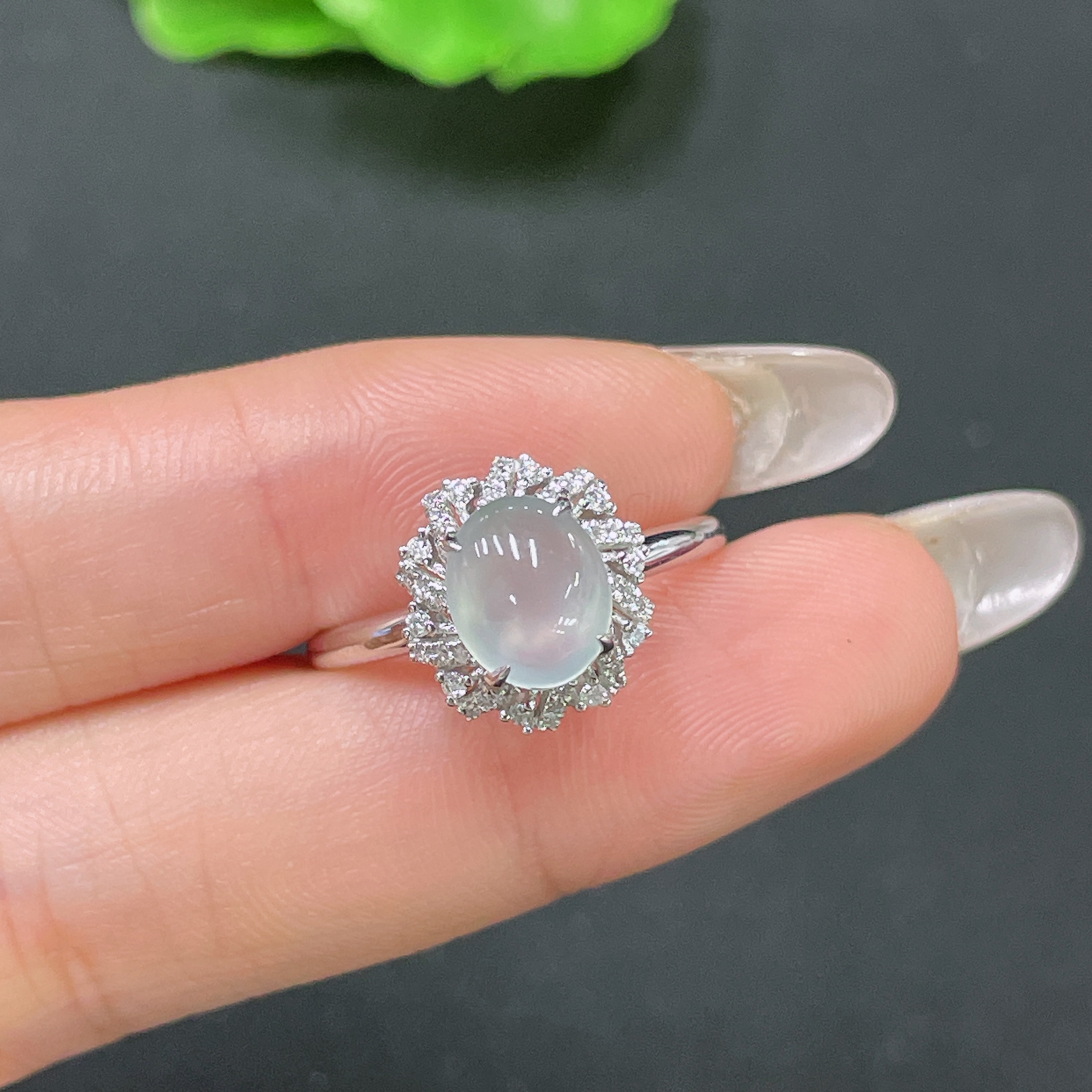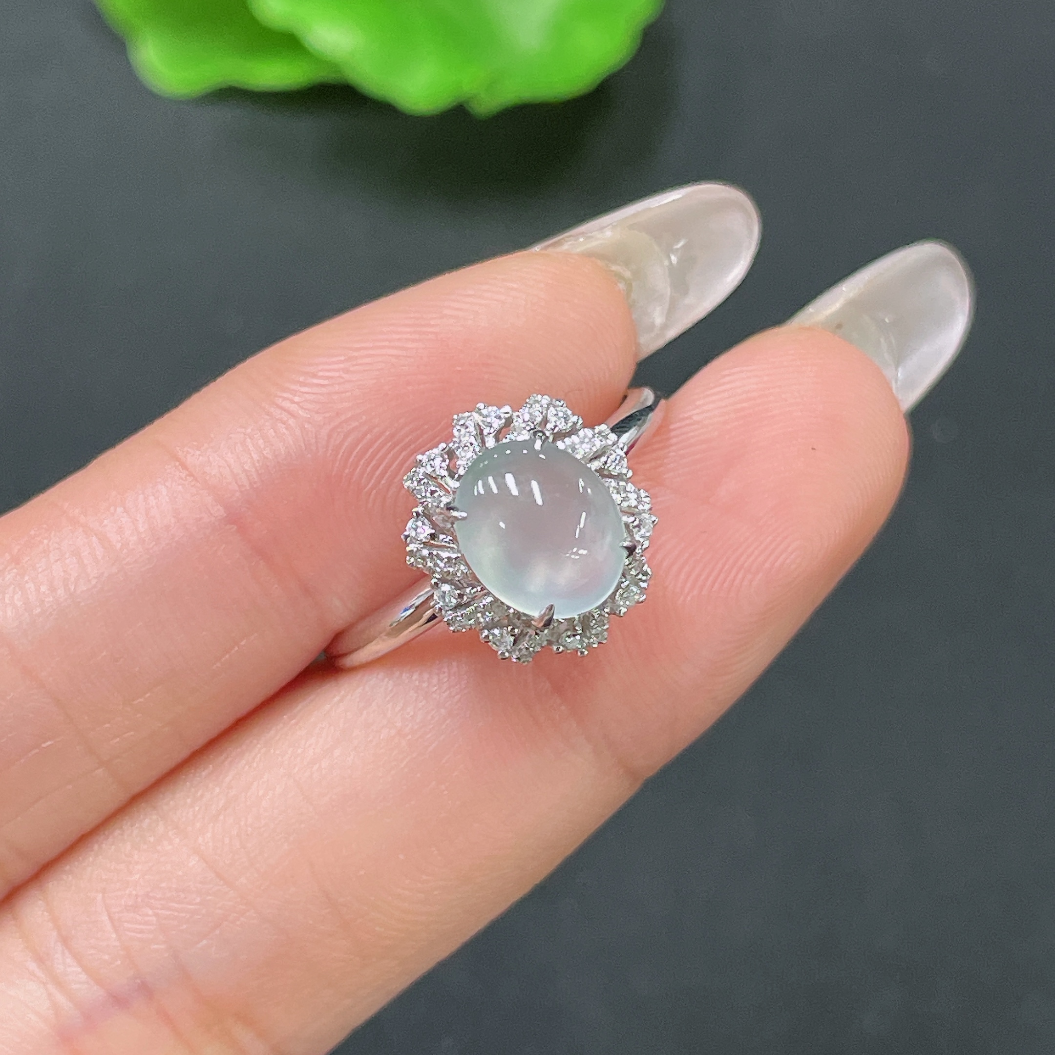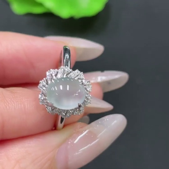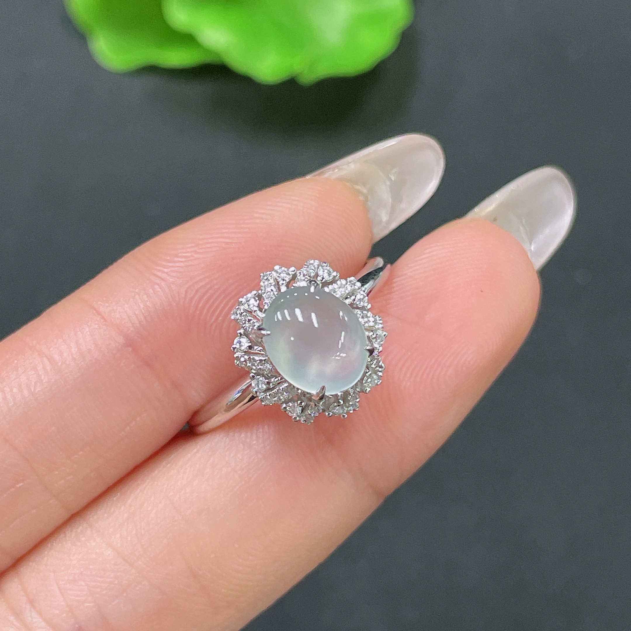Jadeite Ring 18k Gold Setting with Diamond Total Weight Approx. 2.4g Size 18