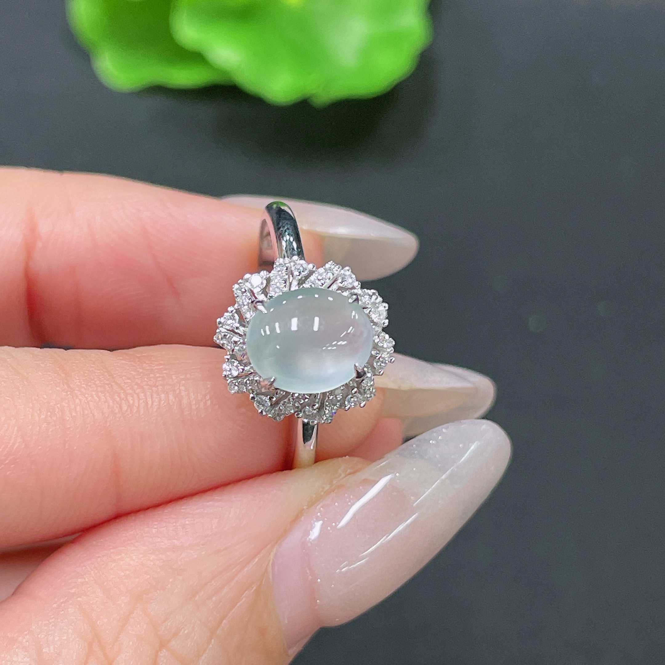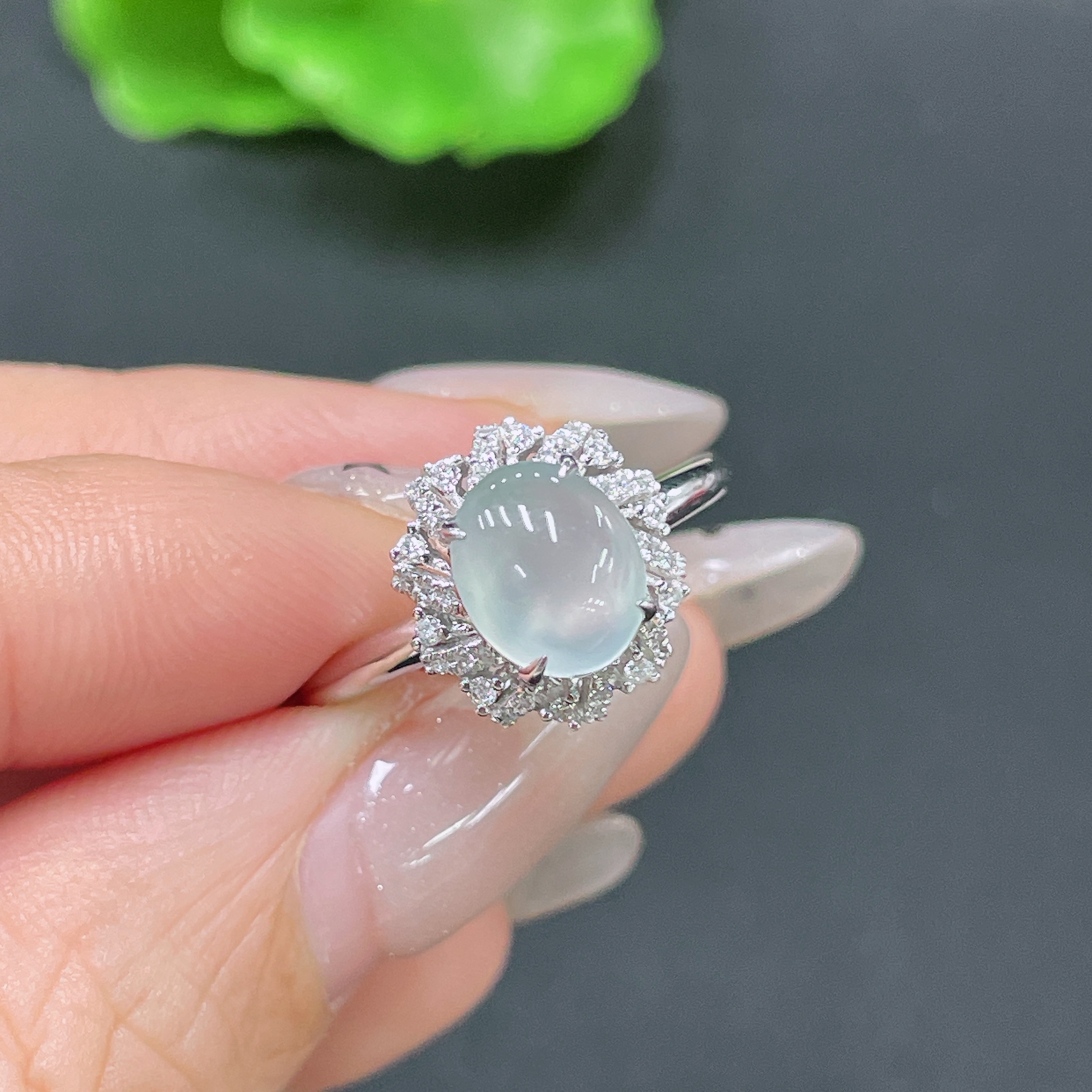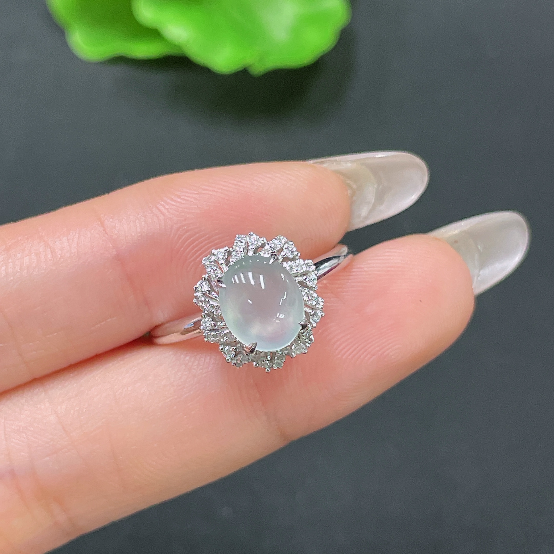 Jadeite Ring 18k Gold Setting with Diamond Total Weight Approx. 2.4g Size 18