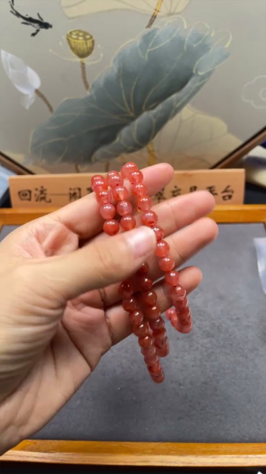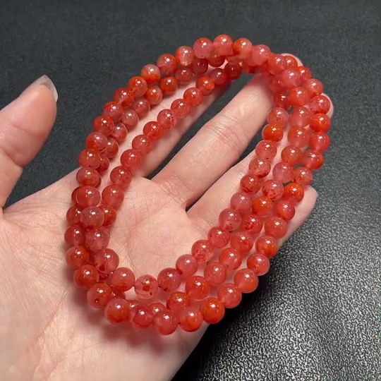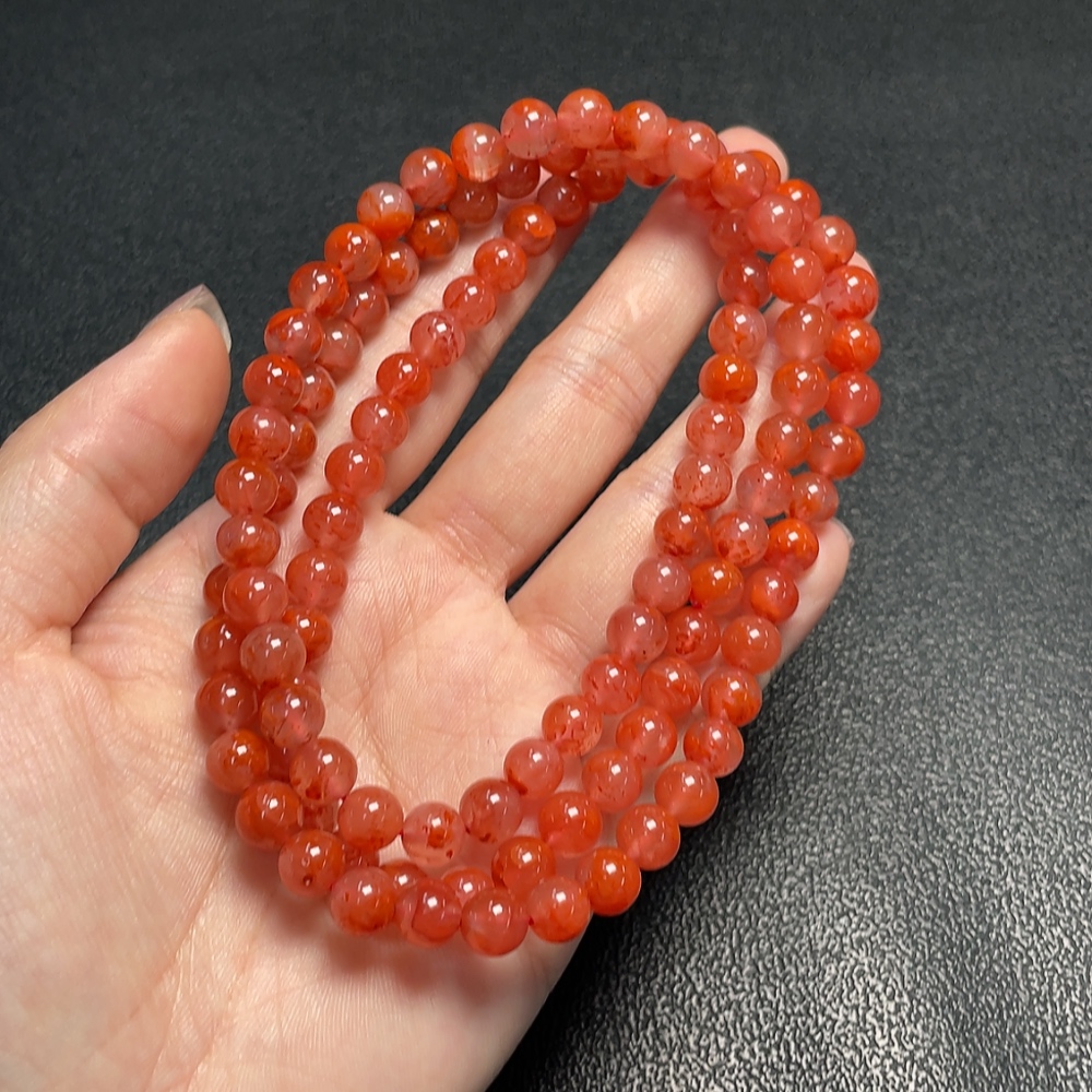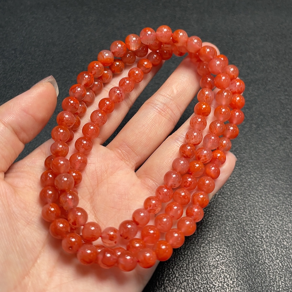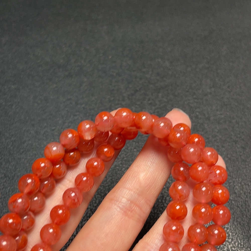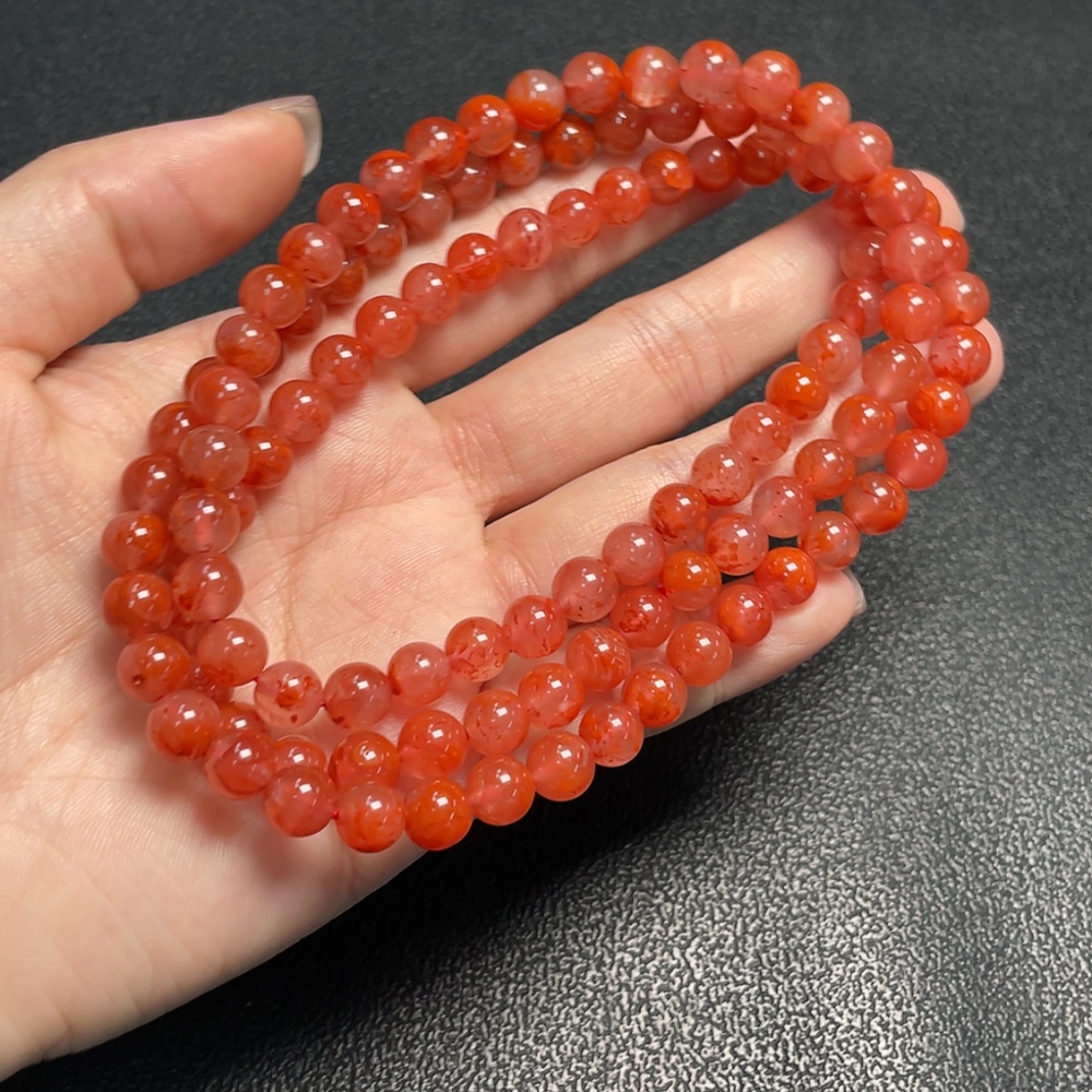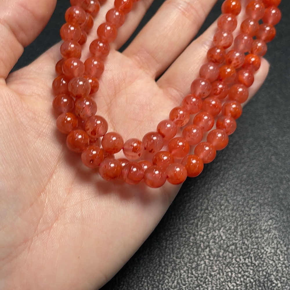 Southern Red Agate Bead Necklace with Visible Organic Matter, Total Weight Approximately 55.06g, Bead Size About 7.2mm