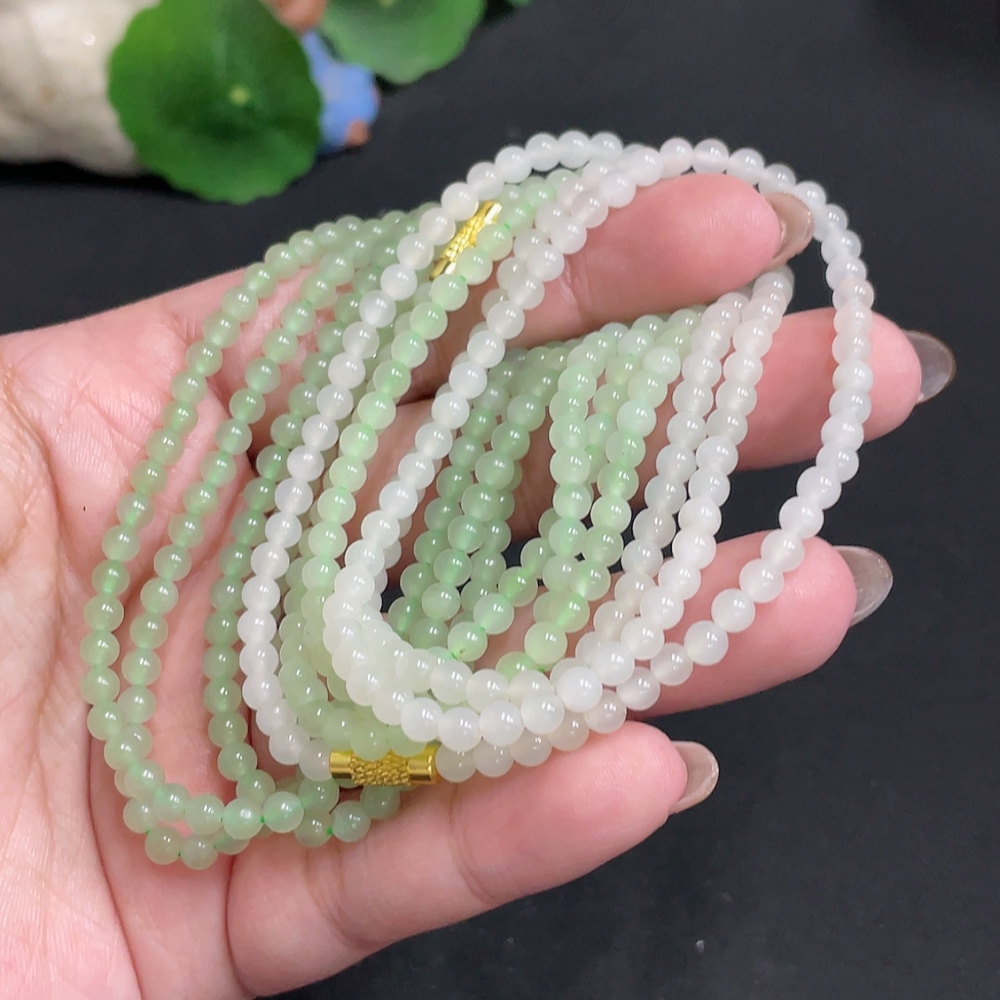 Hetian Jade Bead Necklace, Approx. 3.8mm, Non-Gold, Total Weight Approx. 42.6g