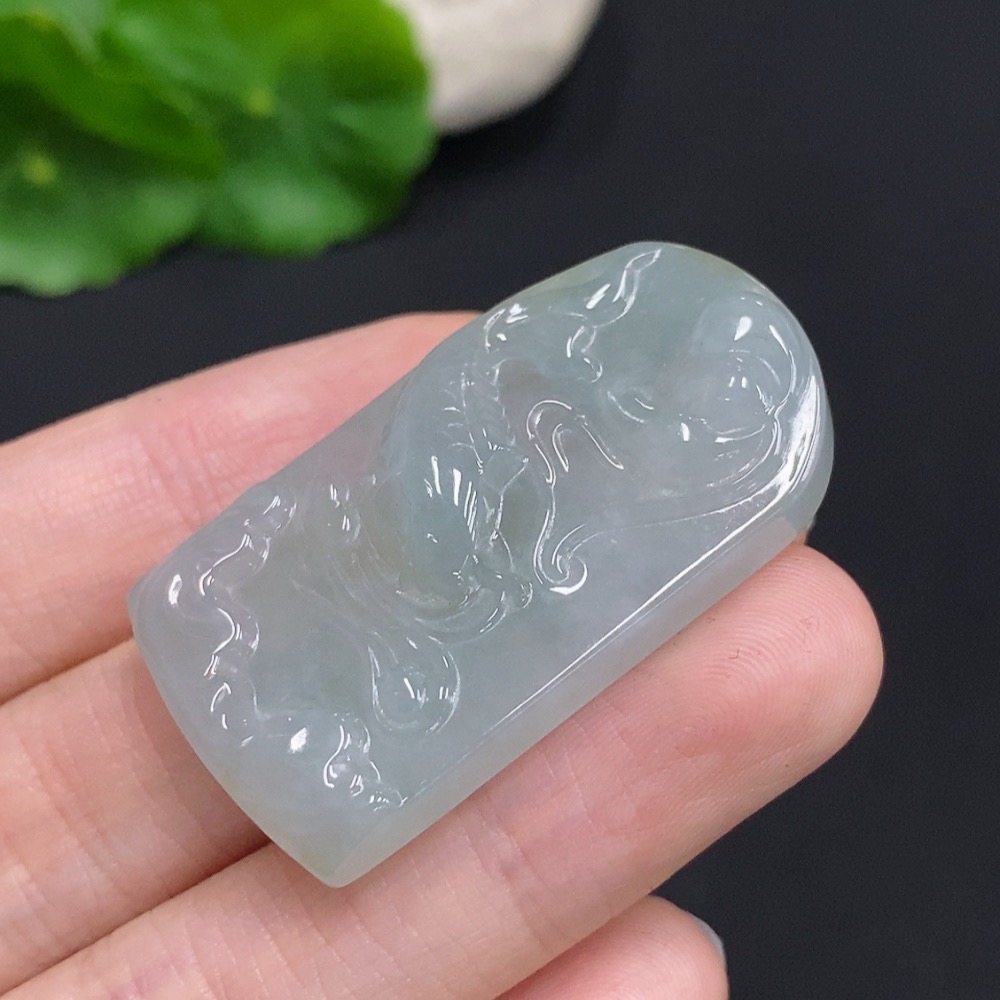Jadeite Auspicious Yearly Abundance Pendant Total Weight Approx. 13.5g