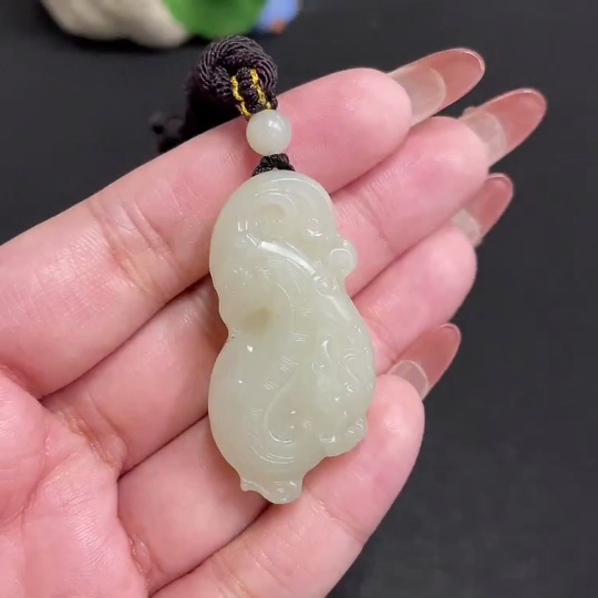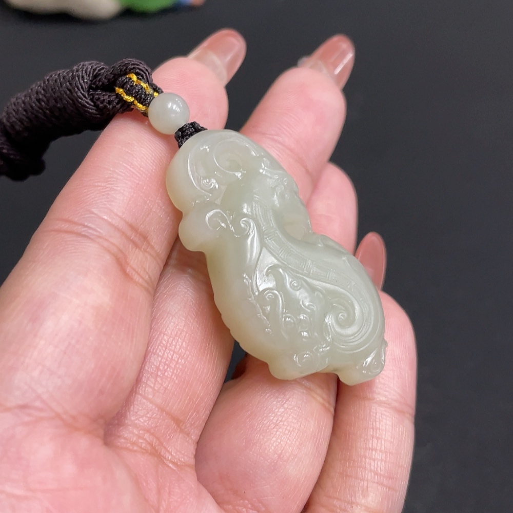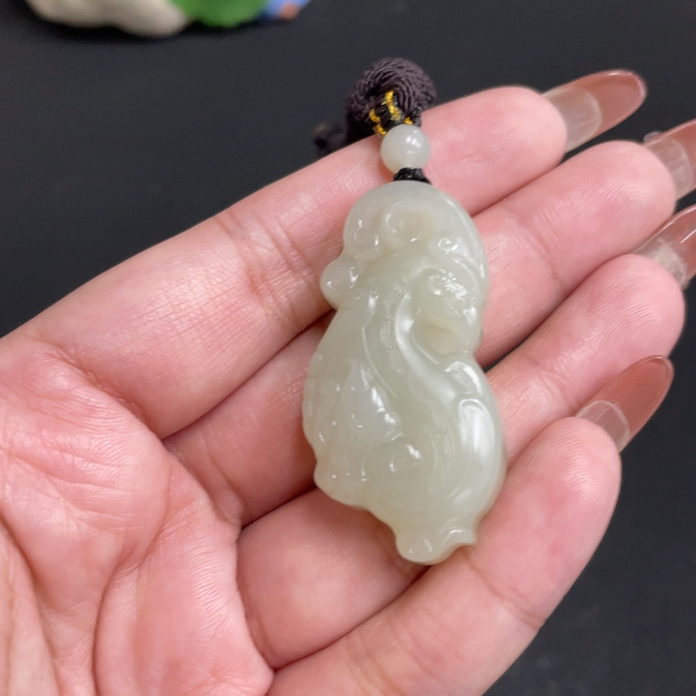 Hetian Jade Pendant, Auspicious Beast, Total Weight Approx. [including rope] 22g