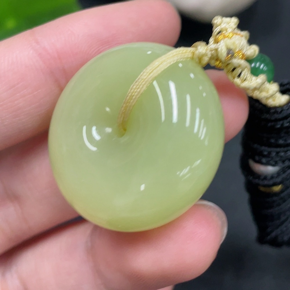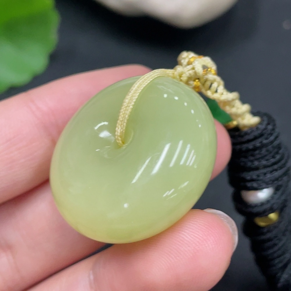 Hetian Jade Pendant, Peace Buckle, with Non-Hetian Jade Beads, Total Weight Approx. 21.2g (Including Rope)