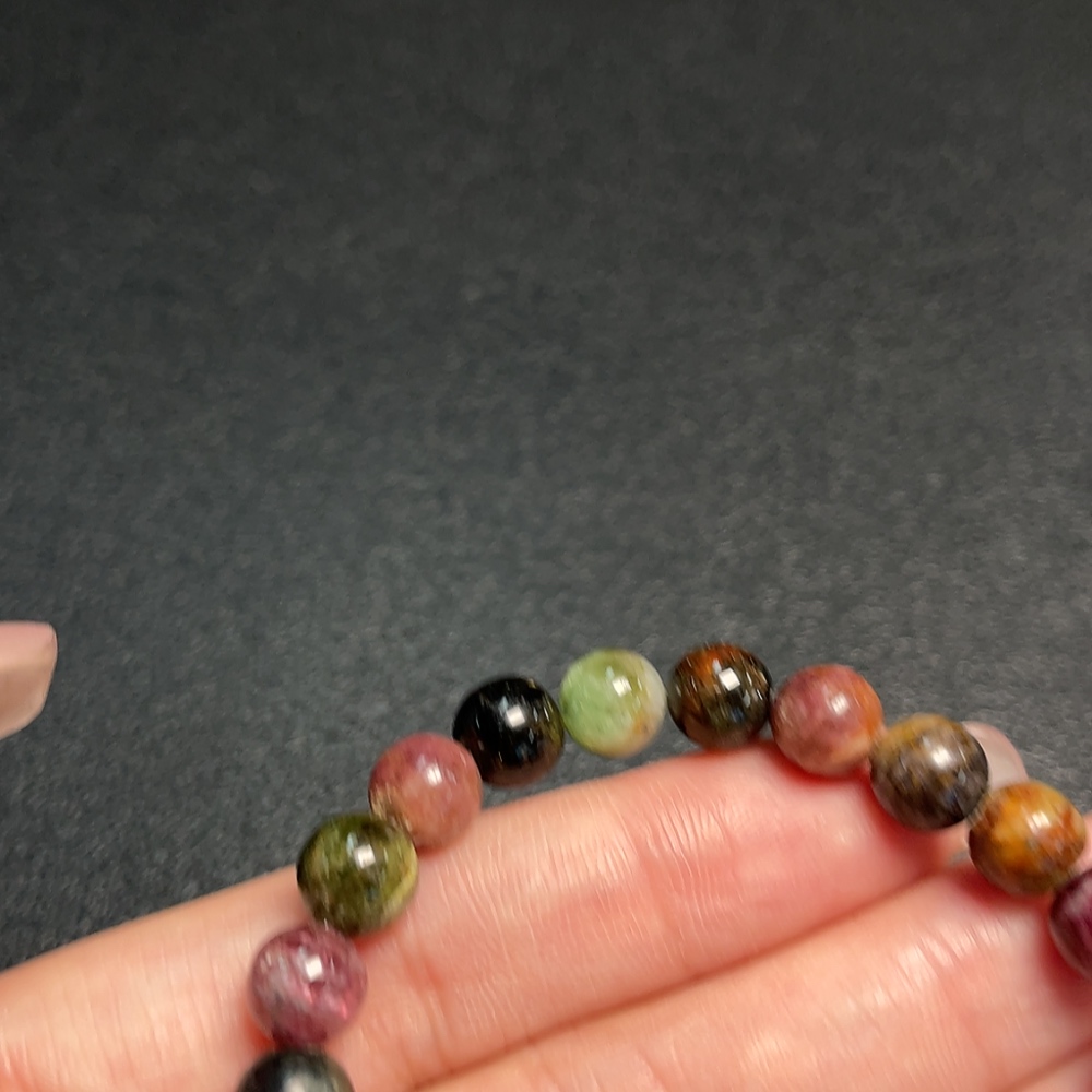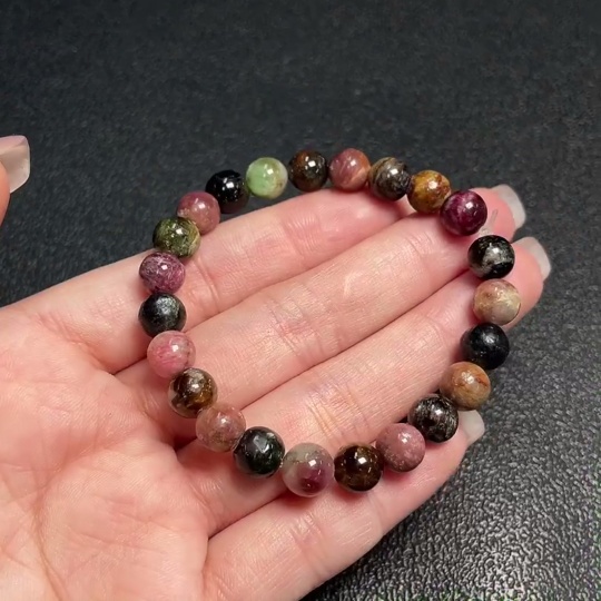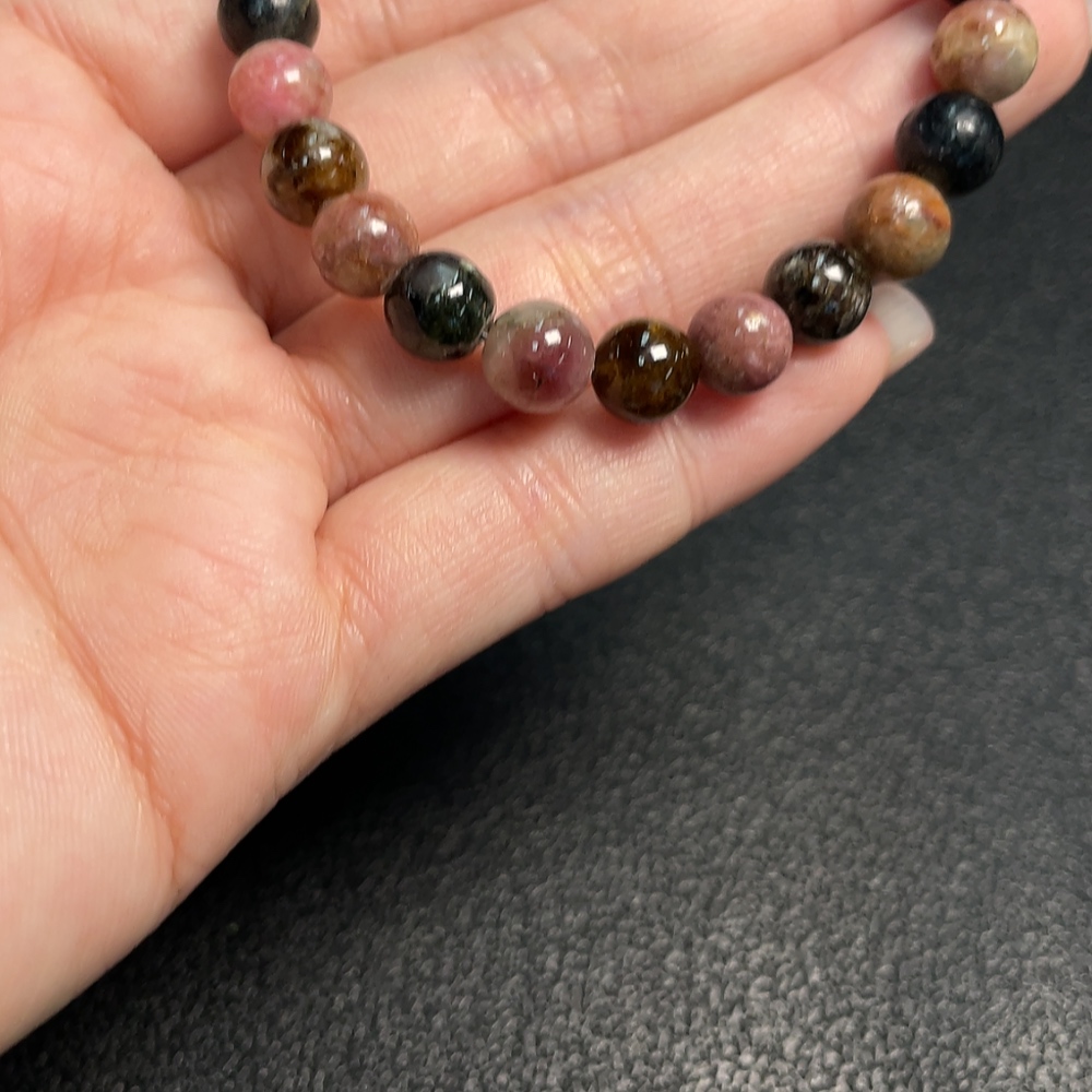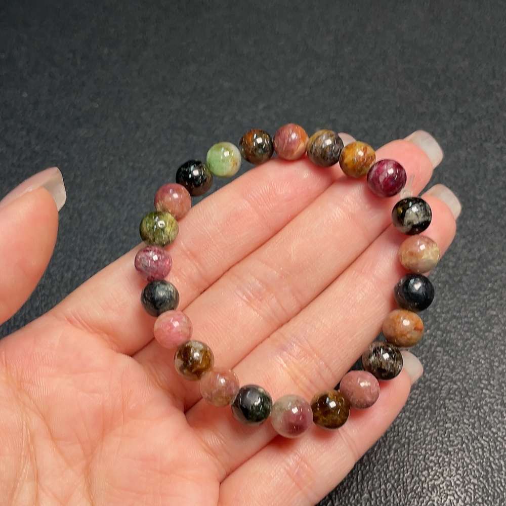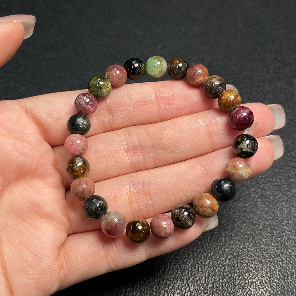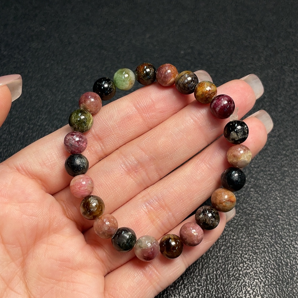 Tourmaline Bracelet with Visible Organic Matter and Other Mineral Components, Total Weight Approx. 15.54g, Size About 7.4mm (Inclusive of Minerals)