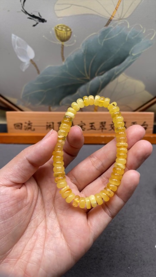 Amber Beeswax Bracelet, Total Weight Approx. 8.62g, Size About 8.4mm