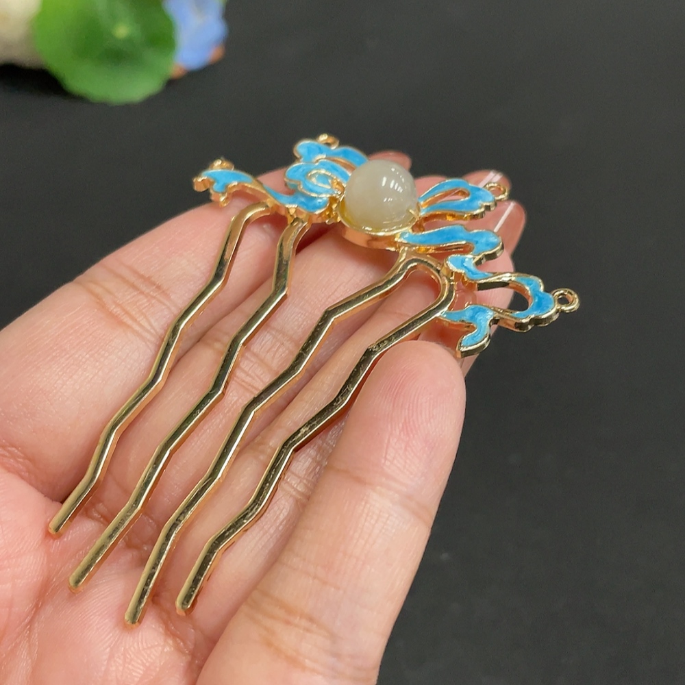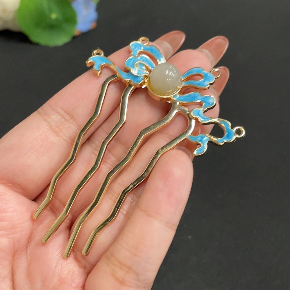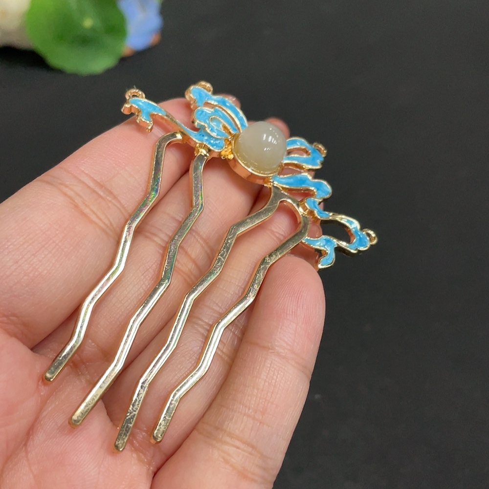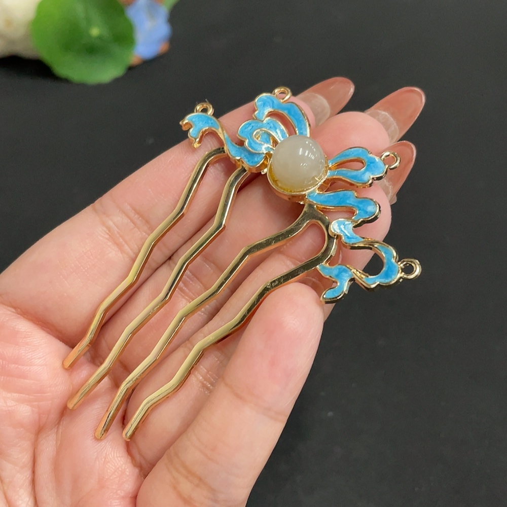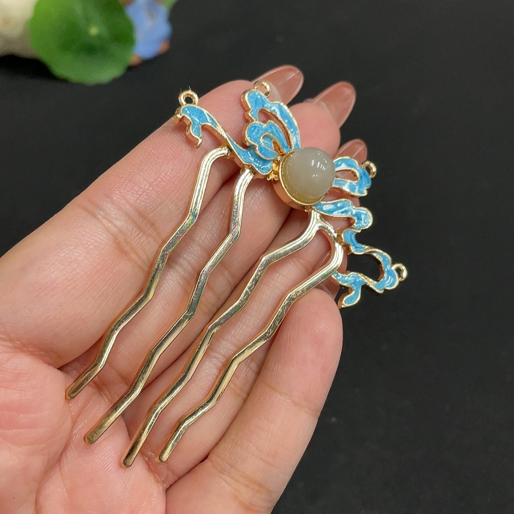 Hetian Jade Inlaid Hairpin, Approx. 9.5mm, Total Weight Approx. 8.7g, Non-Gold