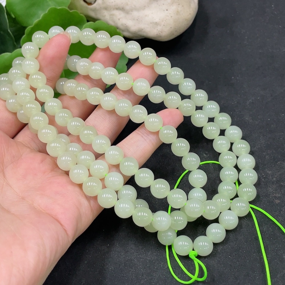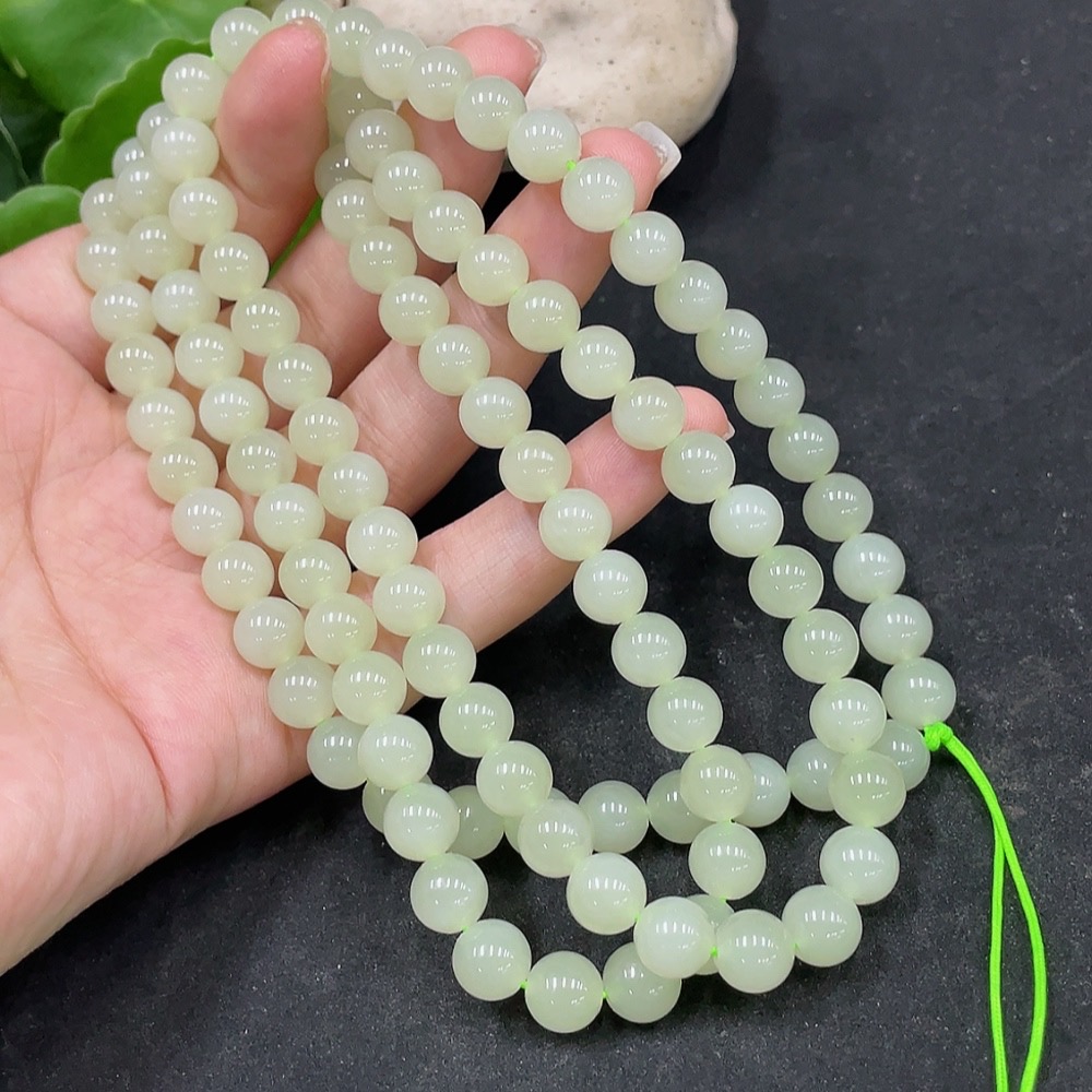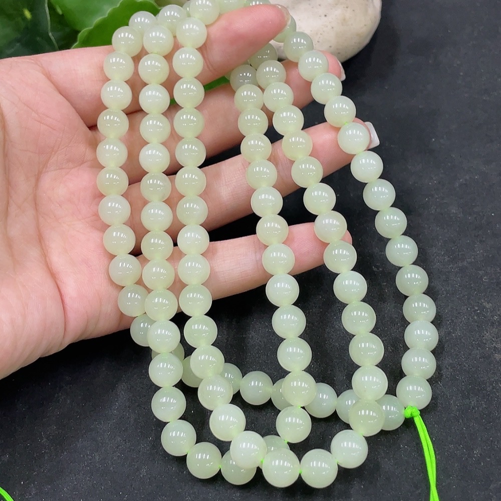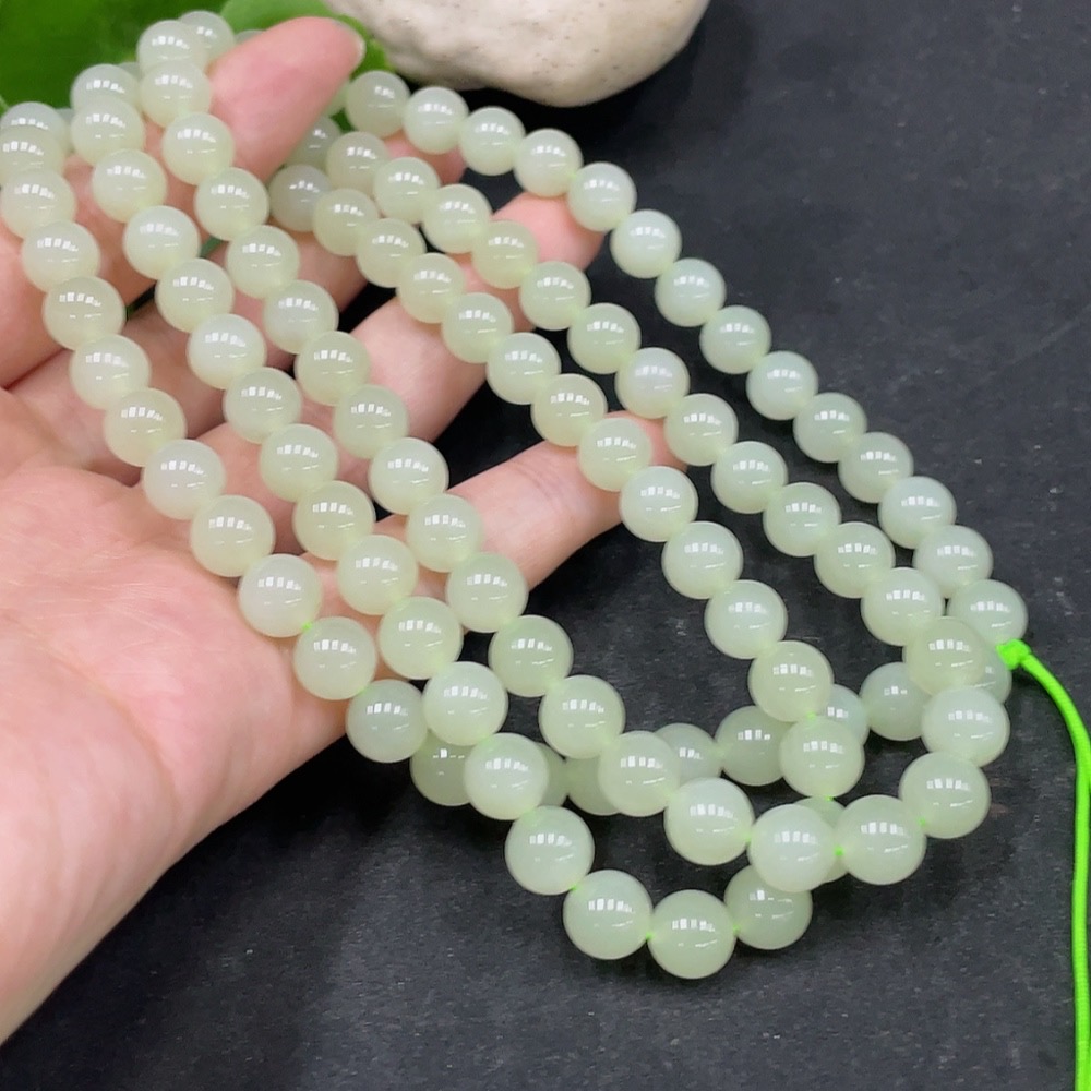 Hetian Jade Bead Necklace, approx. 7.8mm, total weight about 84.9g