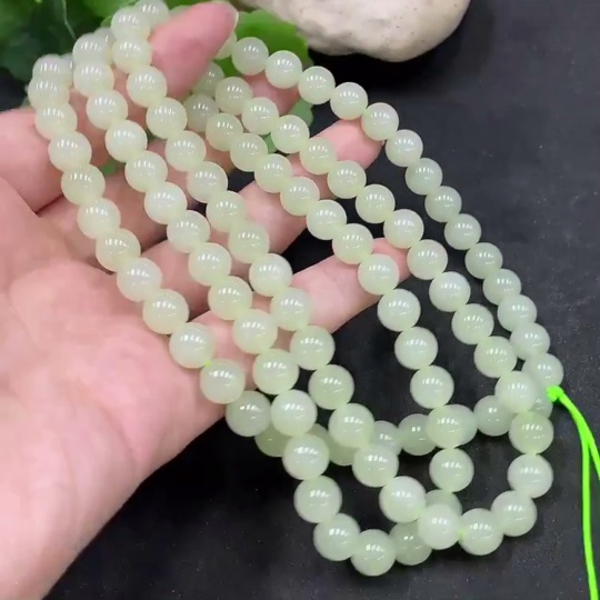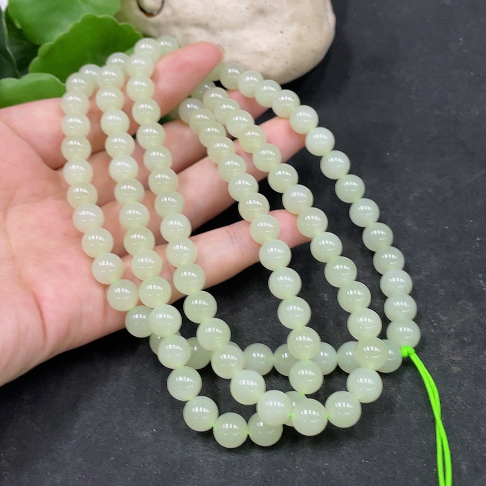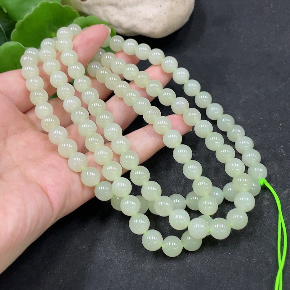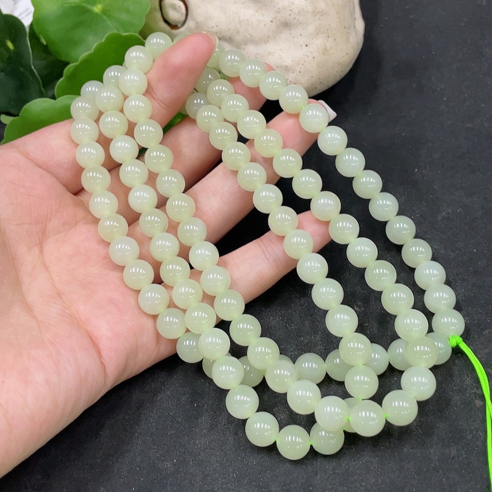 Hetian Jade Bead Necklace, approx. 7.8mm, total weight about 84.9g