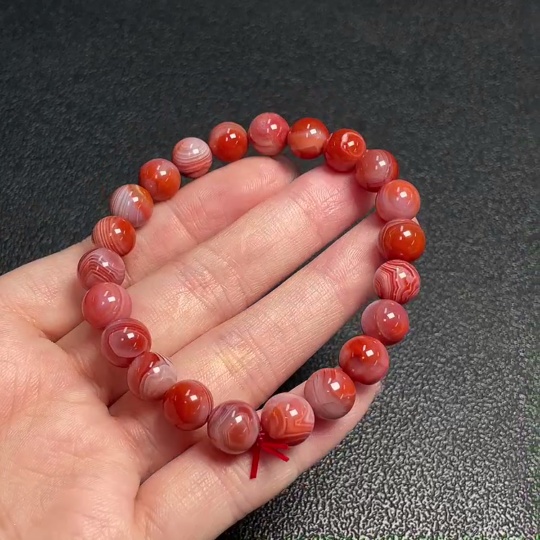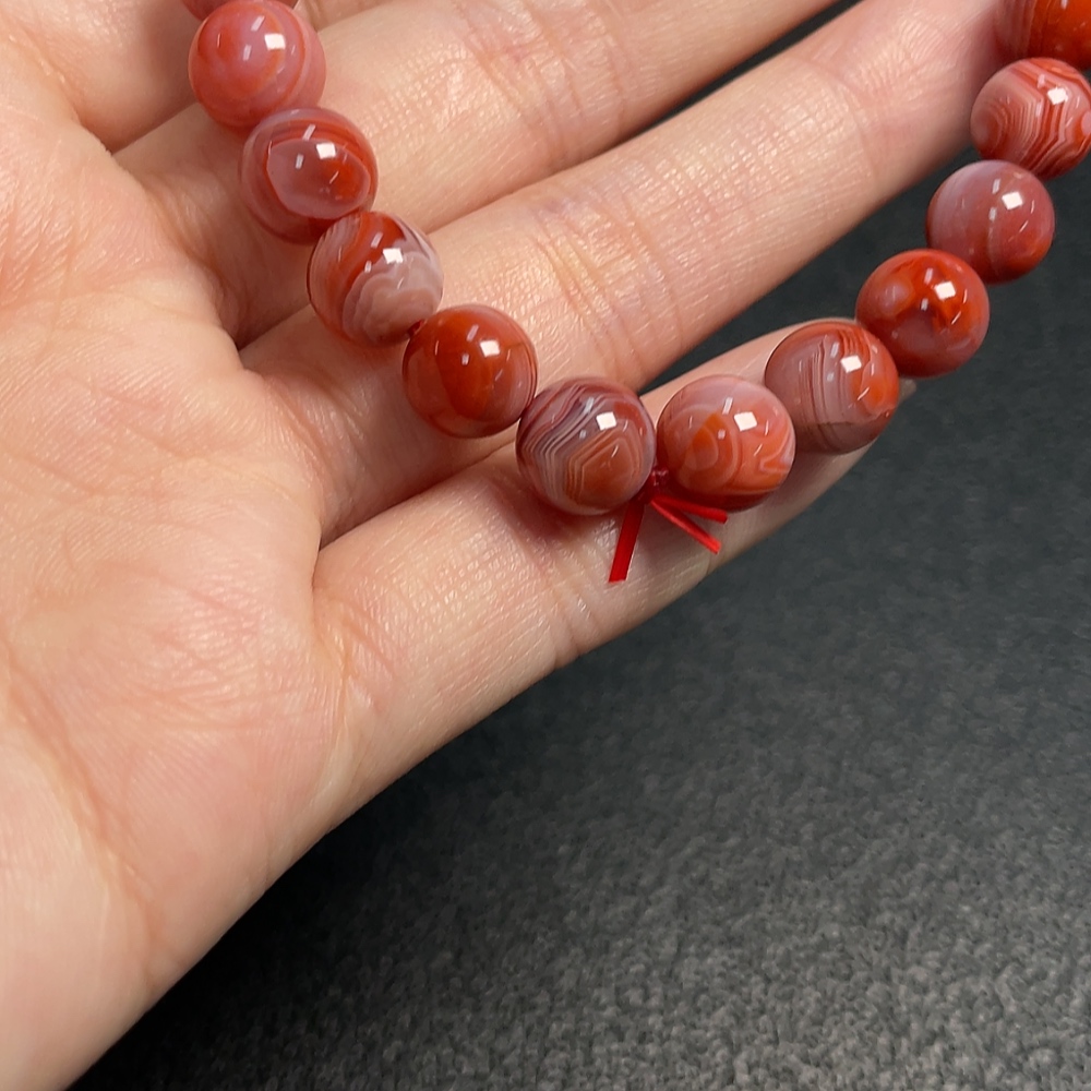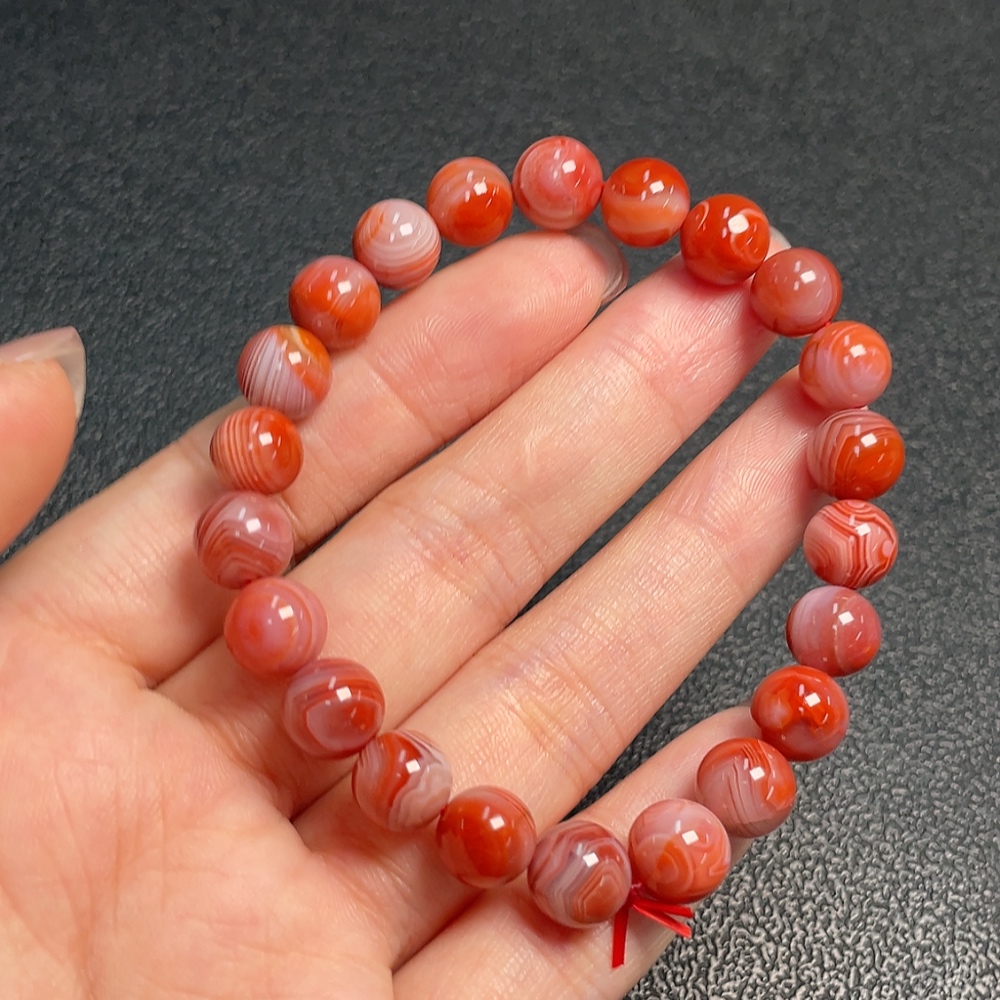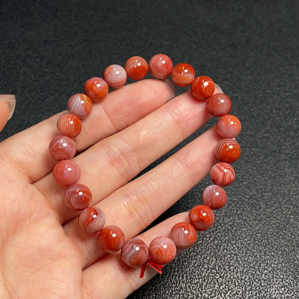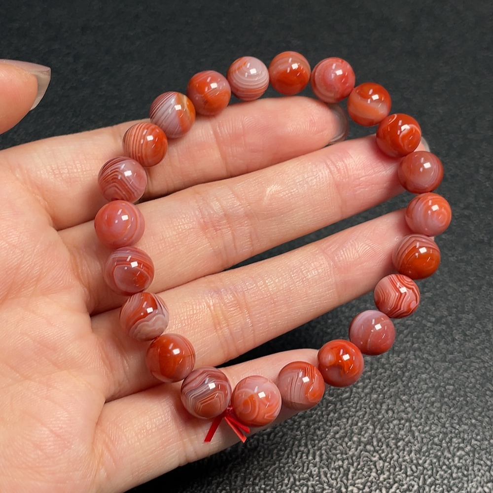 Red Agate Bracelet with Visible Organic Matter, Total Weight Approx. 19.49g, Size About 8.8mm