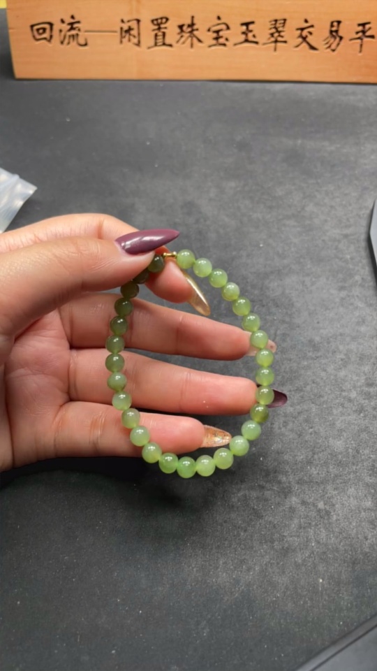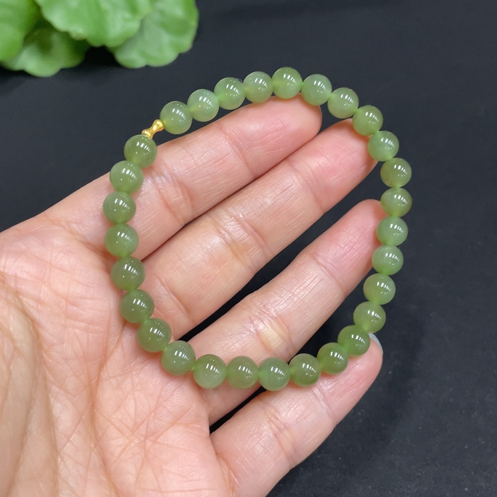 Hetian Jade Bracelet, approx. 6mm, no imprint, gold content 75%, total weight approx. 10.7g