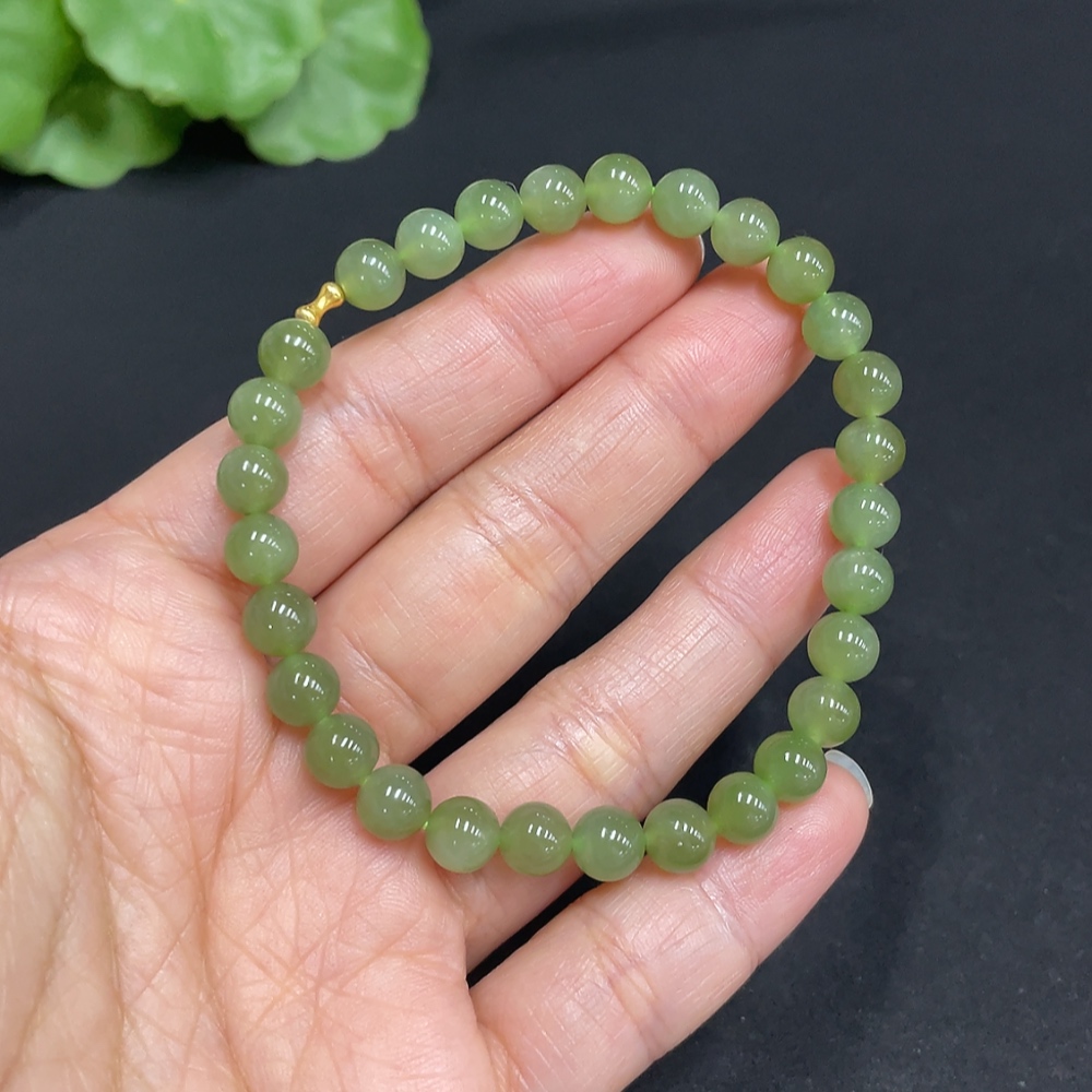 Hetian Jade Bracelet, approx. 6mm, no imprint, gold content 75%, total weight approx. 10.7g