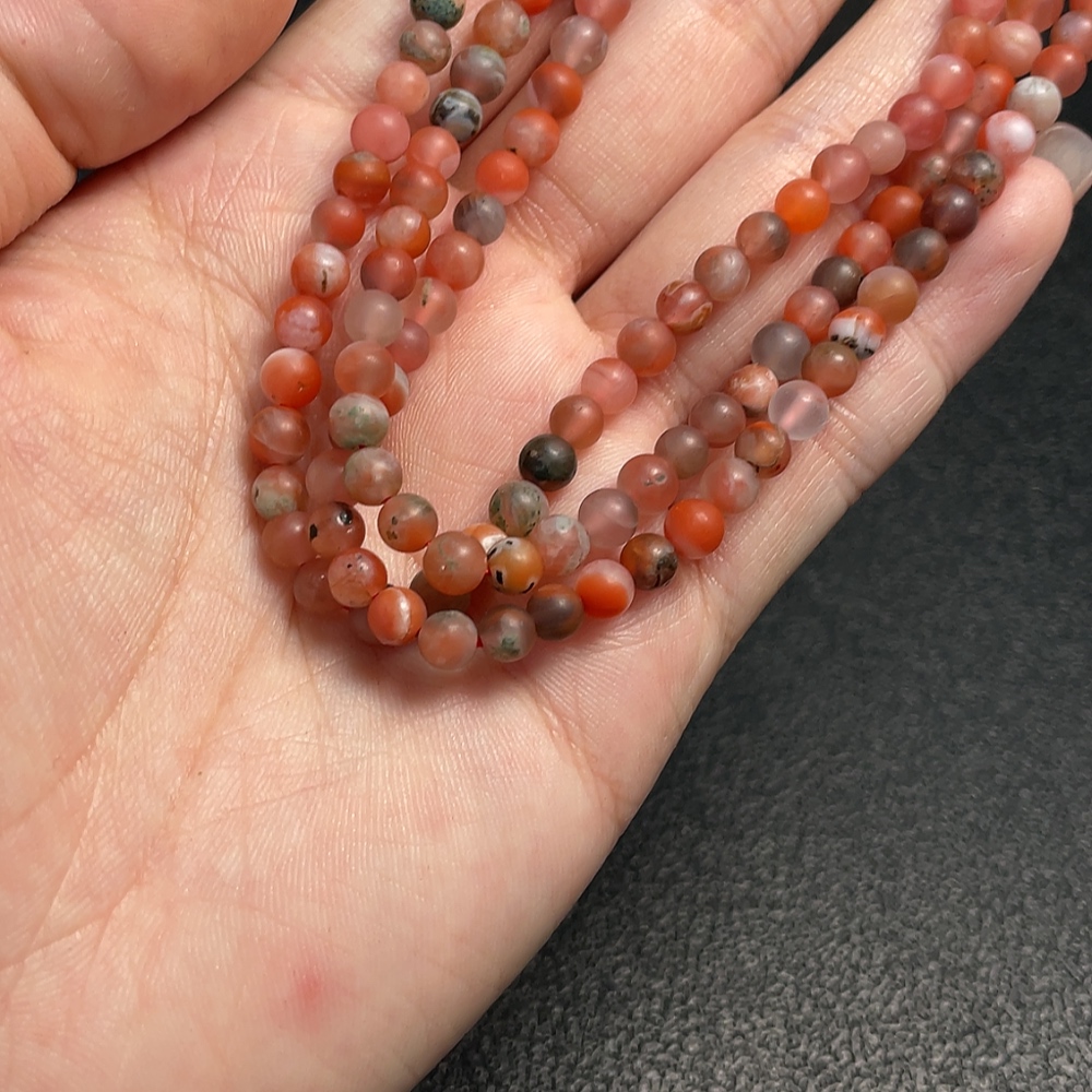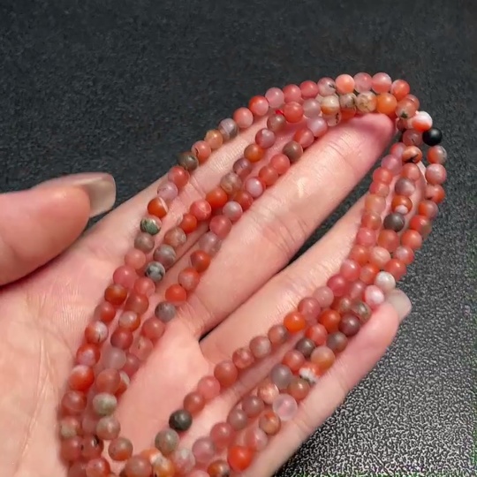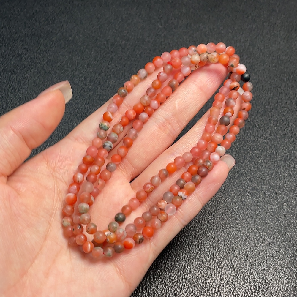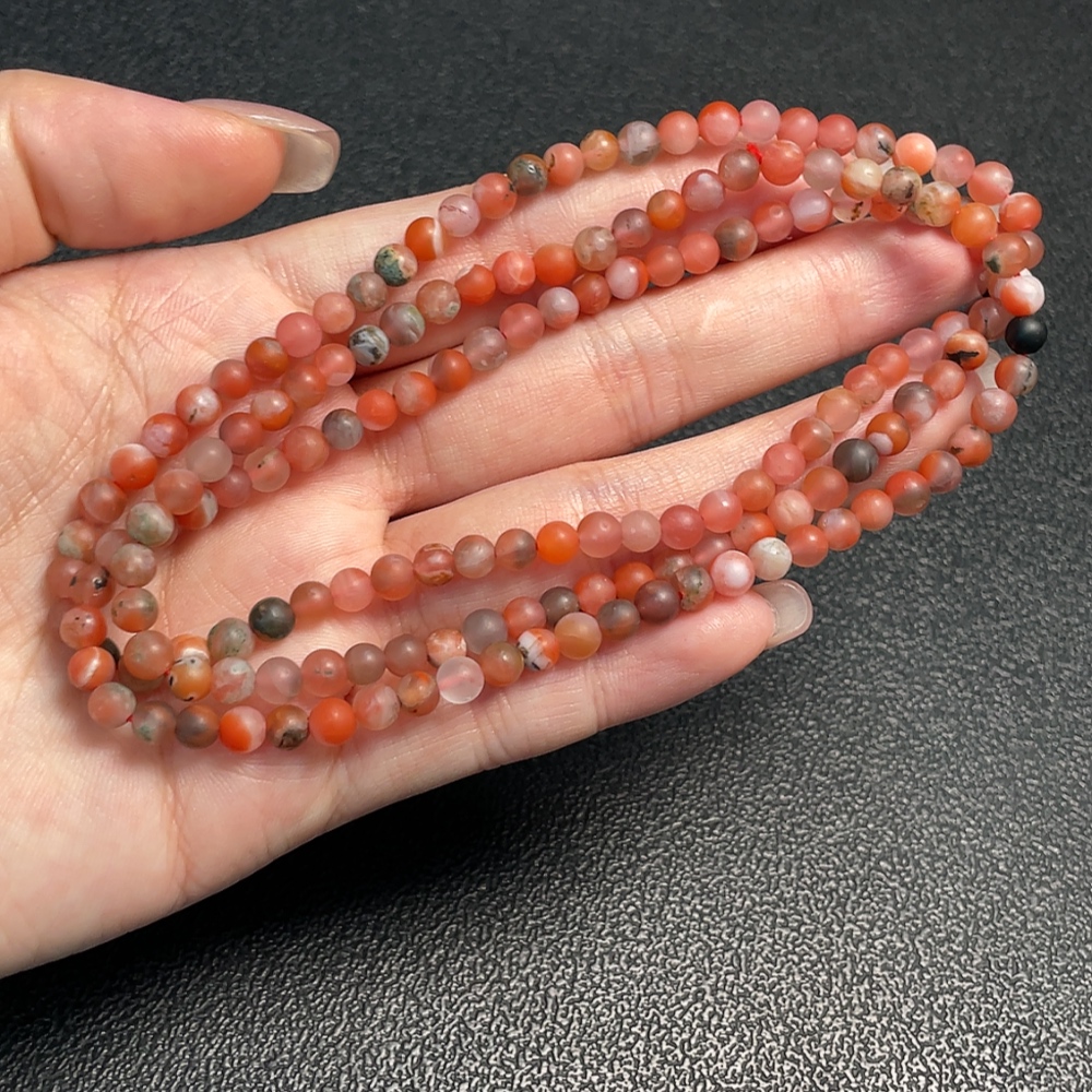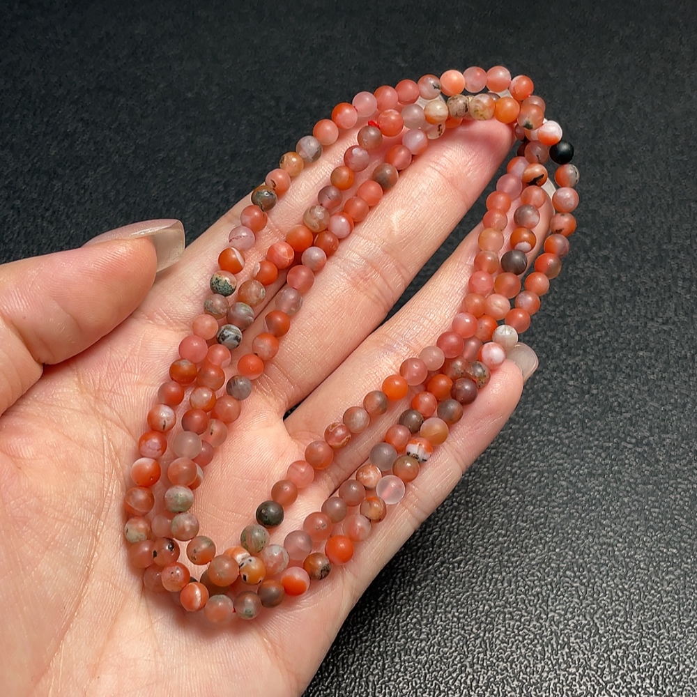 Red Agate Bead Necklace with Visible Organic Matter, Total Weight Approx. 22.59g, Size About 4.8mm