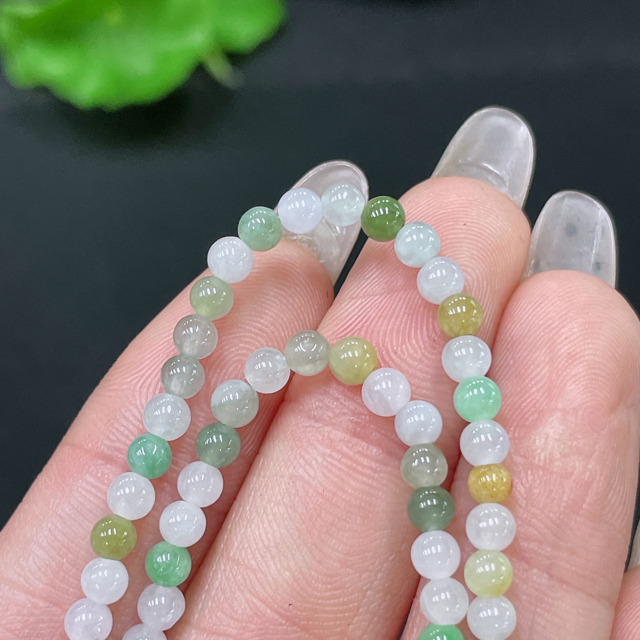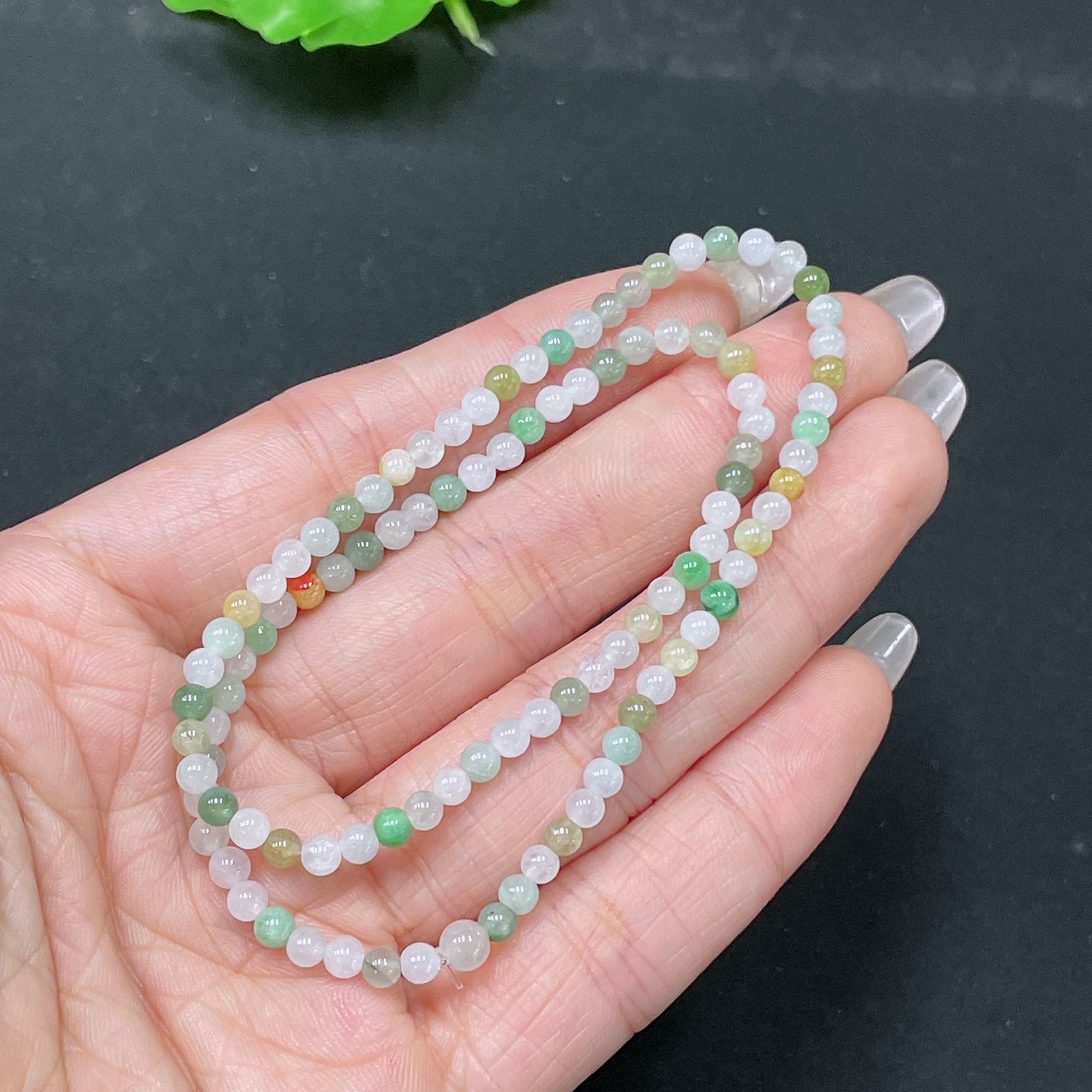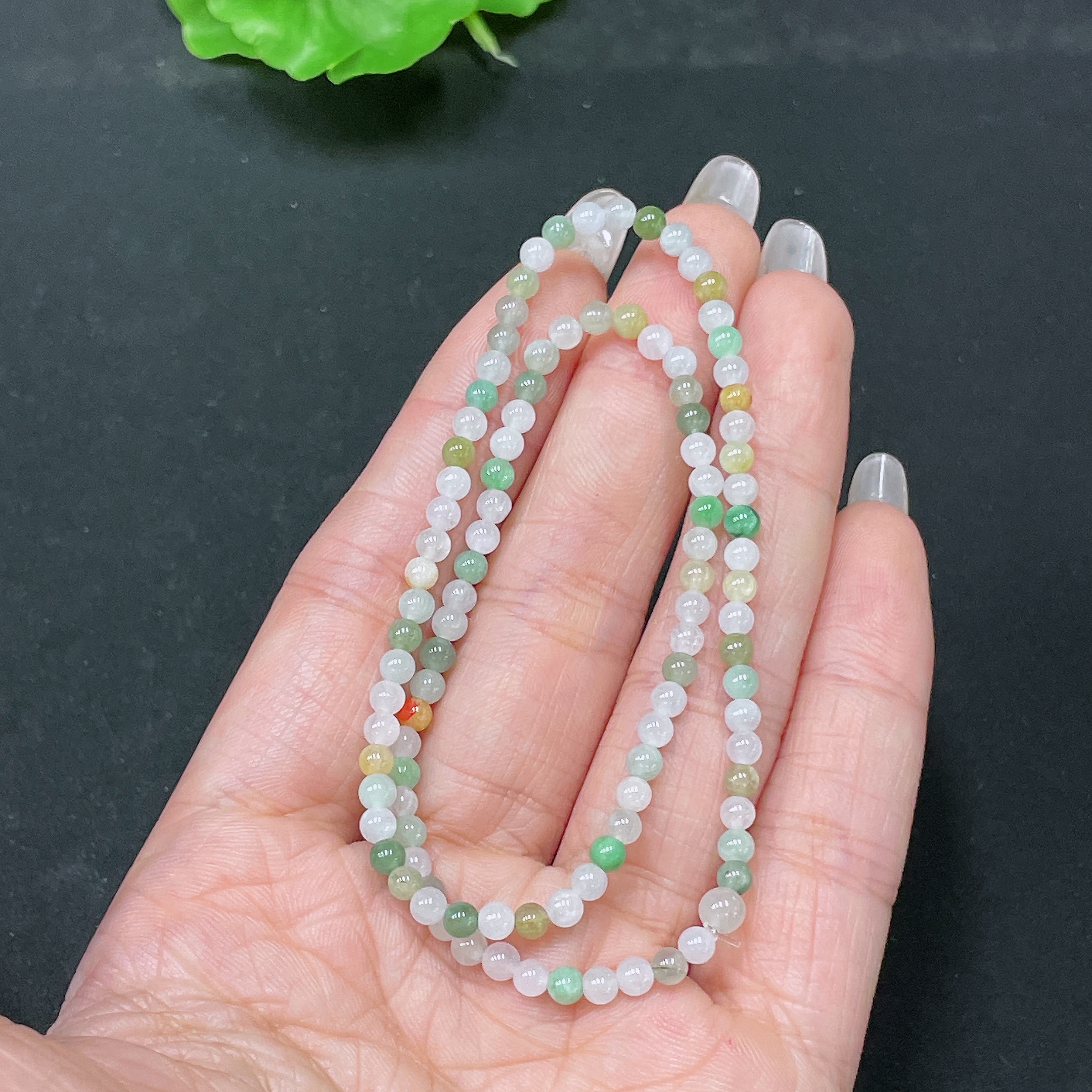 Jadeite Bead Necklace with Non-A Grade Beads, Total Weight Approximately 7.15g, Size About 3.4mm