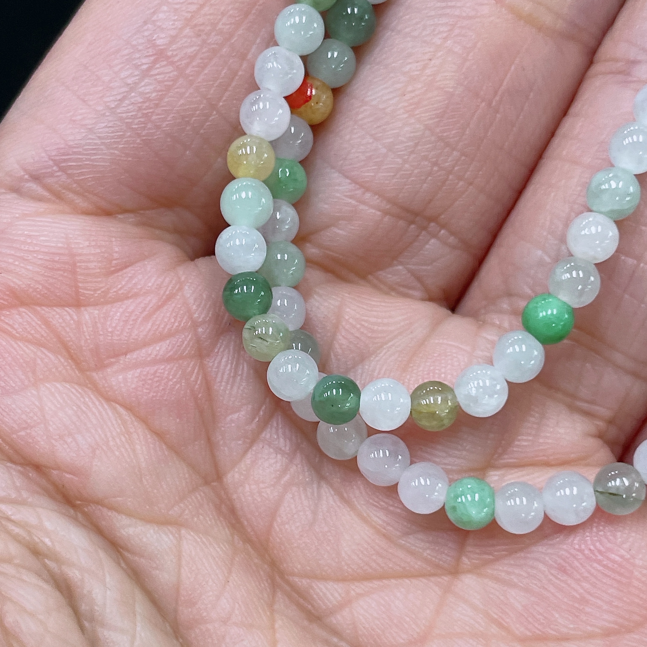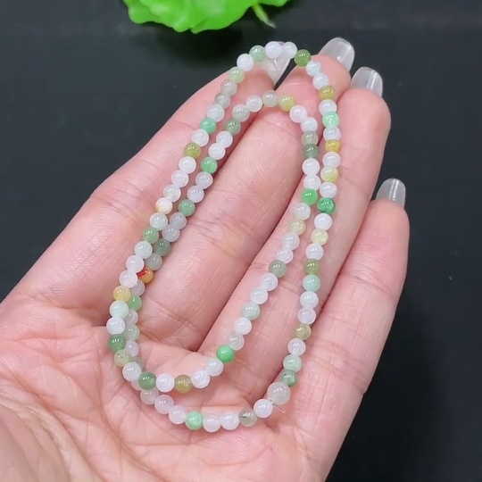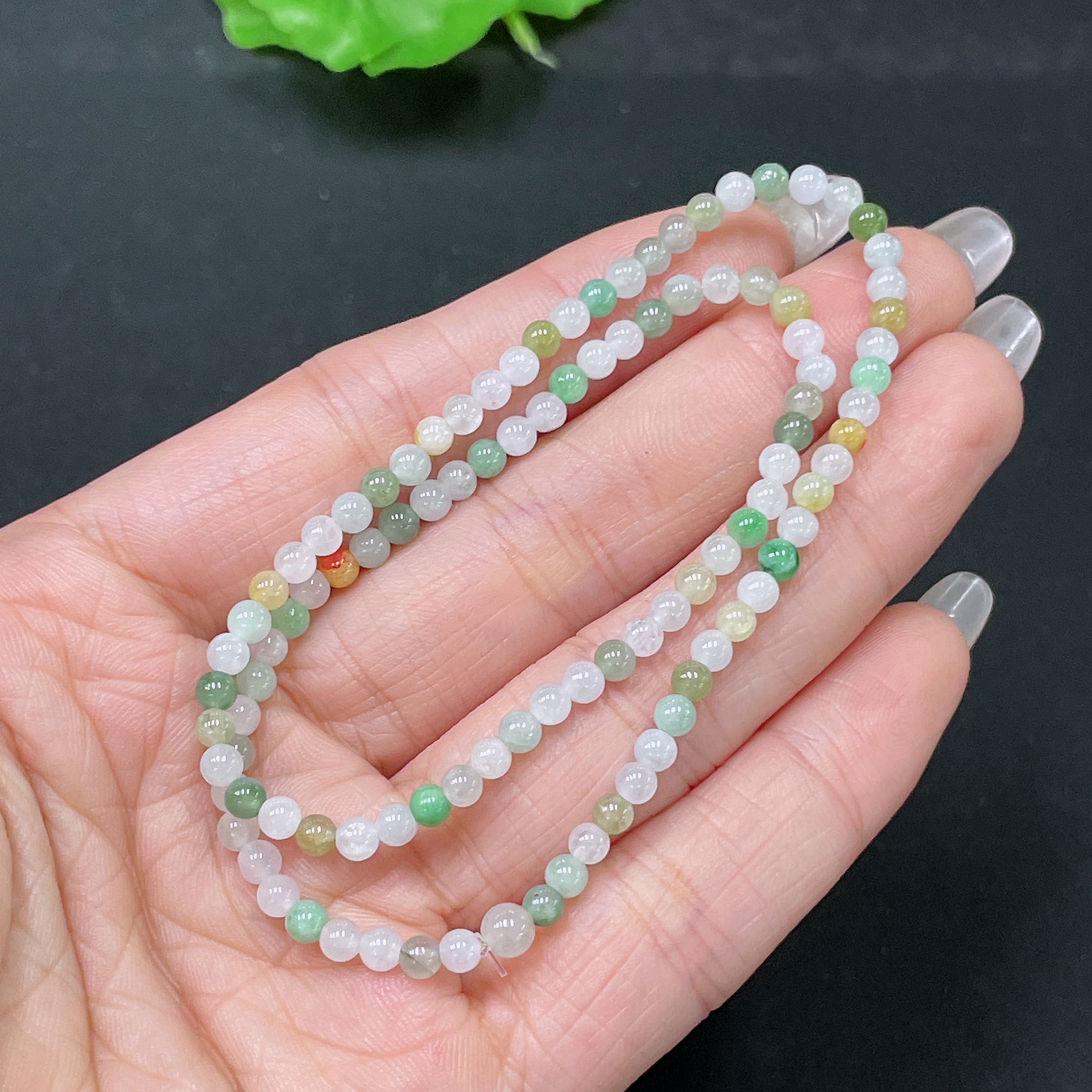 Jadeite Bead Necklace with Non-A Grade Beads, Total Weight Approximately 7.15g, Size About 3.4mm