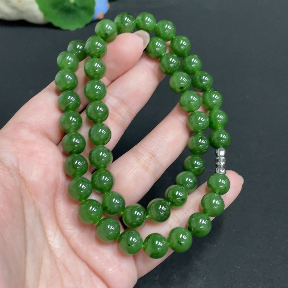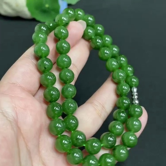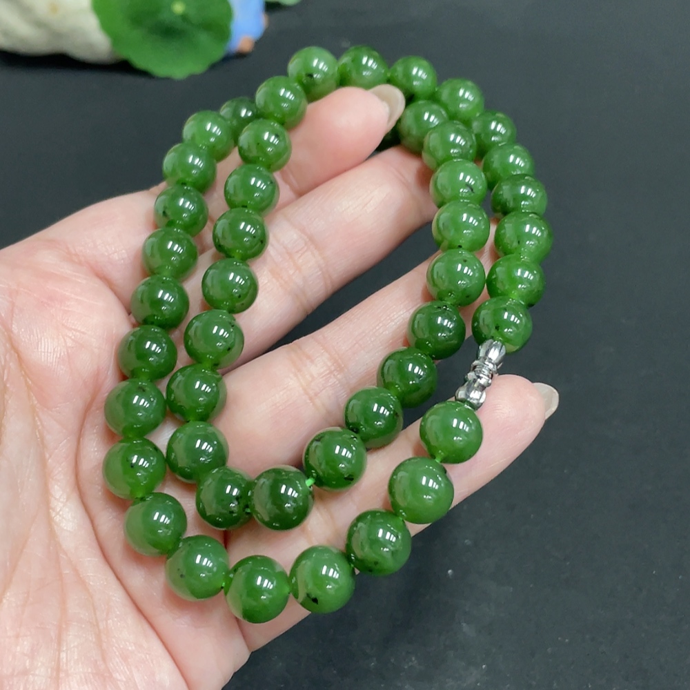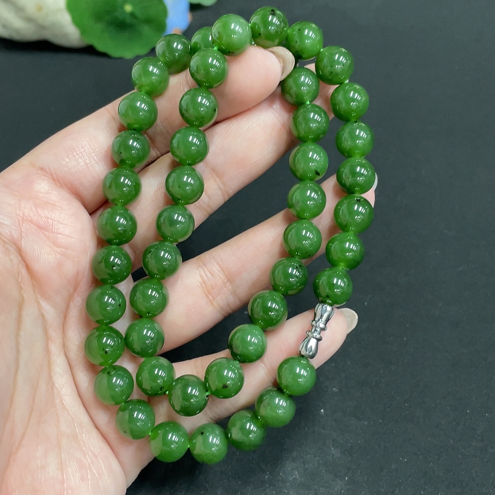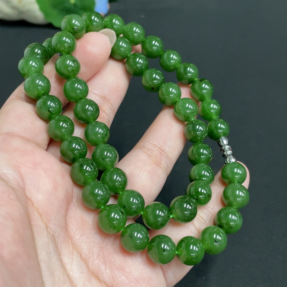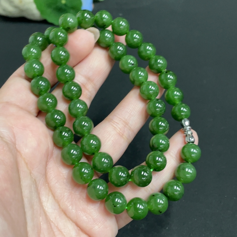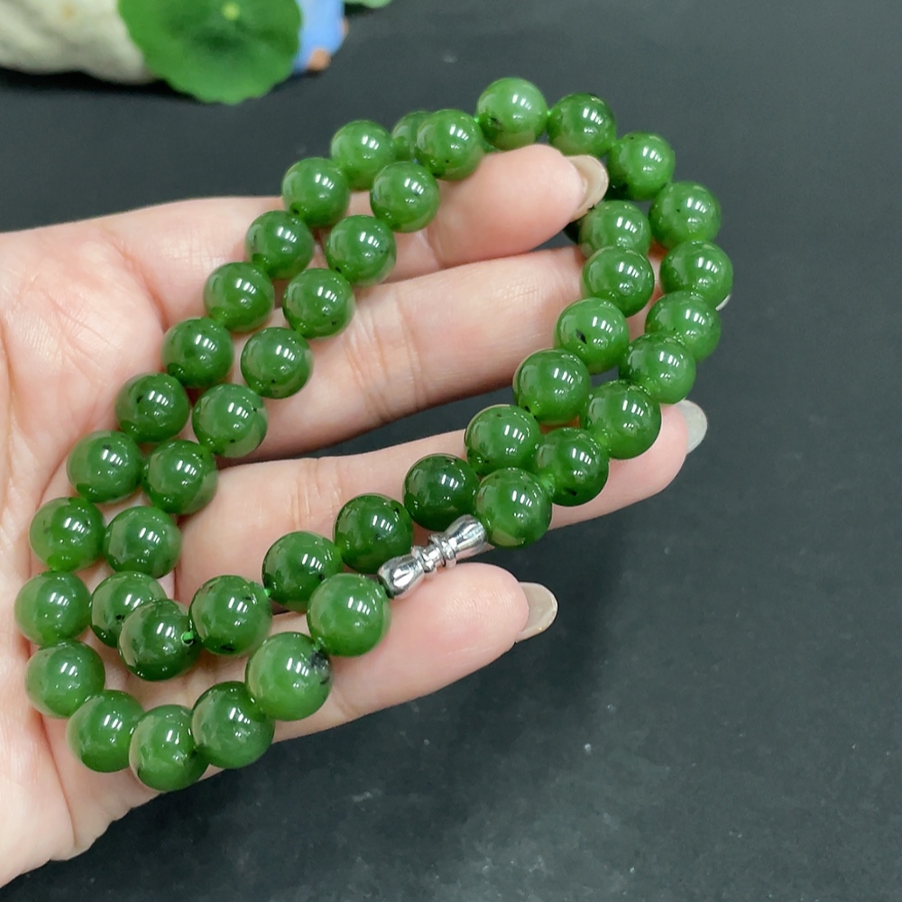 Hetian Jade Jasper Bead Necklace, approx. 8.9mm, total weight approx. 65.7g