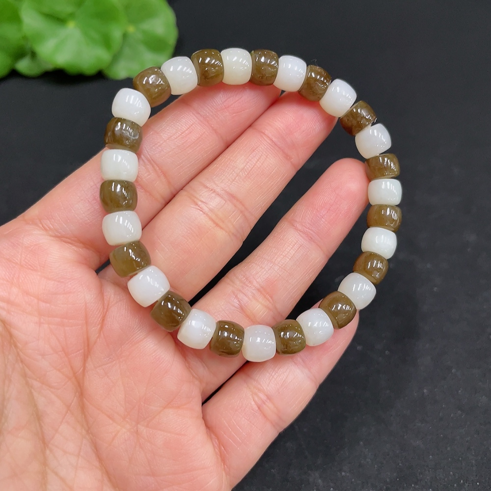 Hetian Jade Bracelet, Approx. 6.6mm, Total Weight Approx. 15.1g