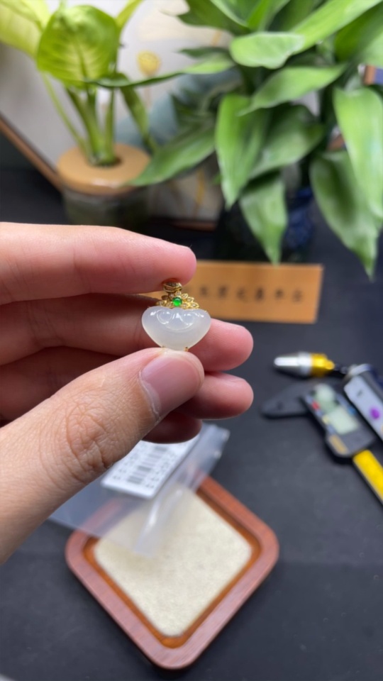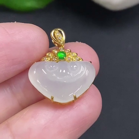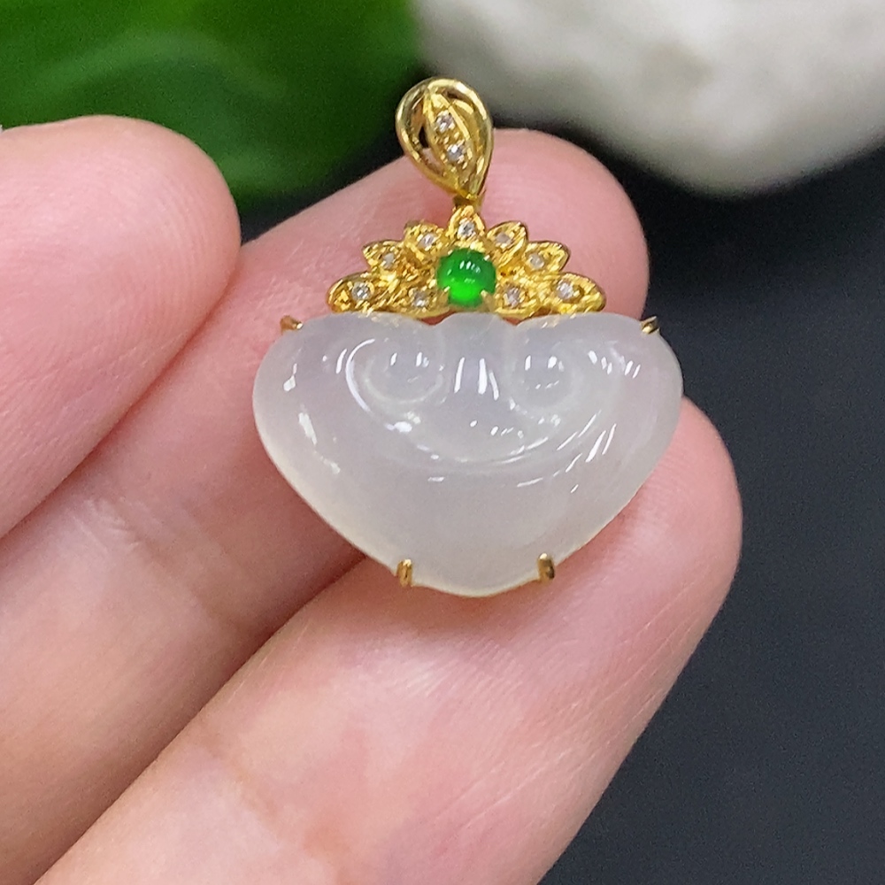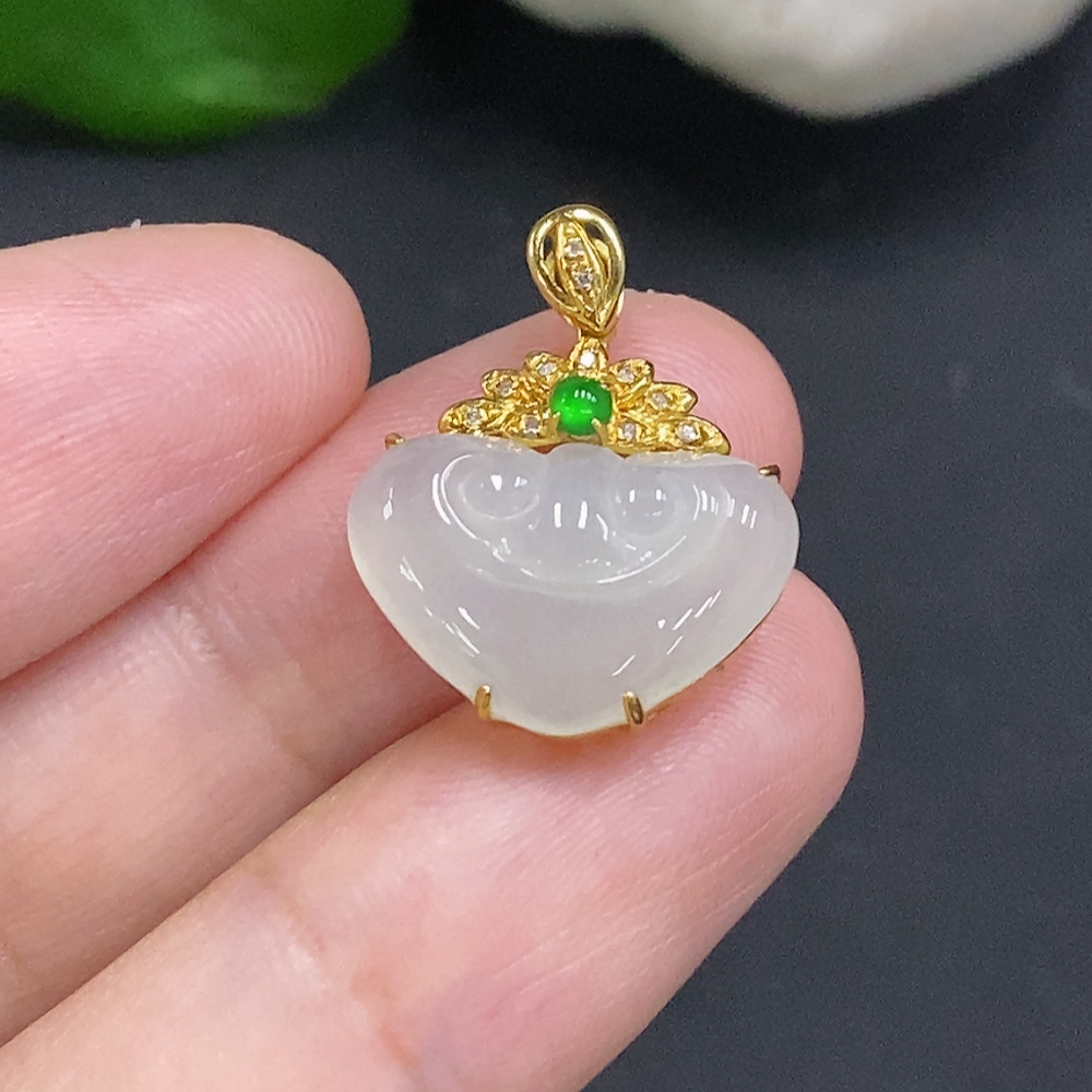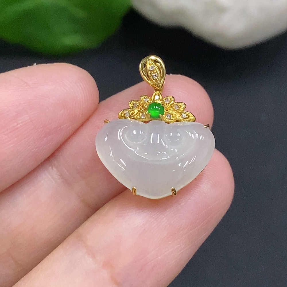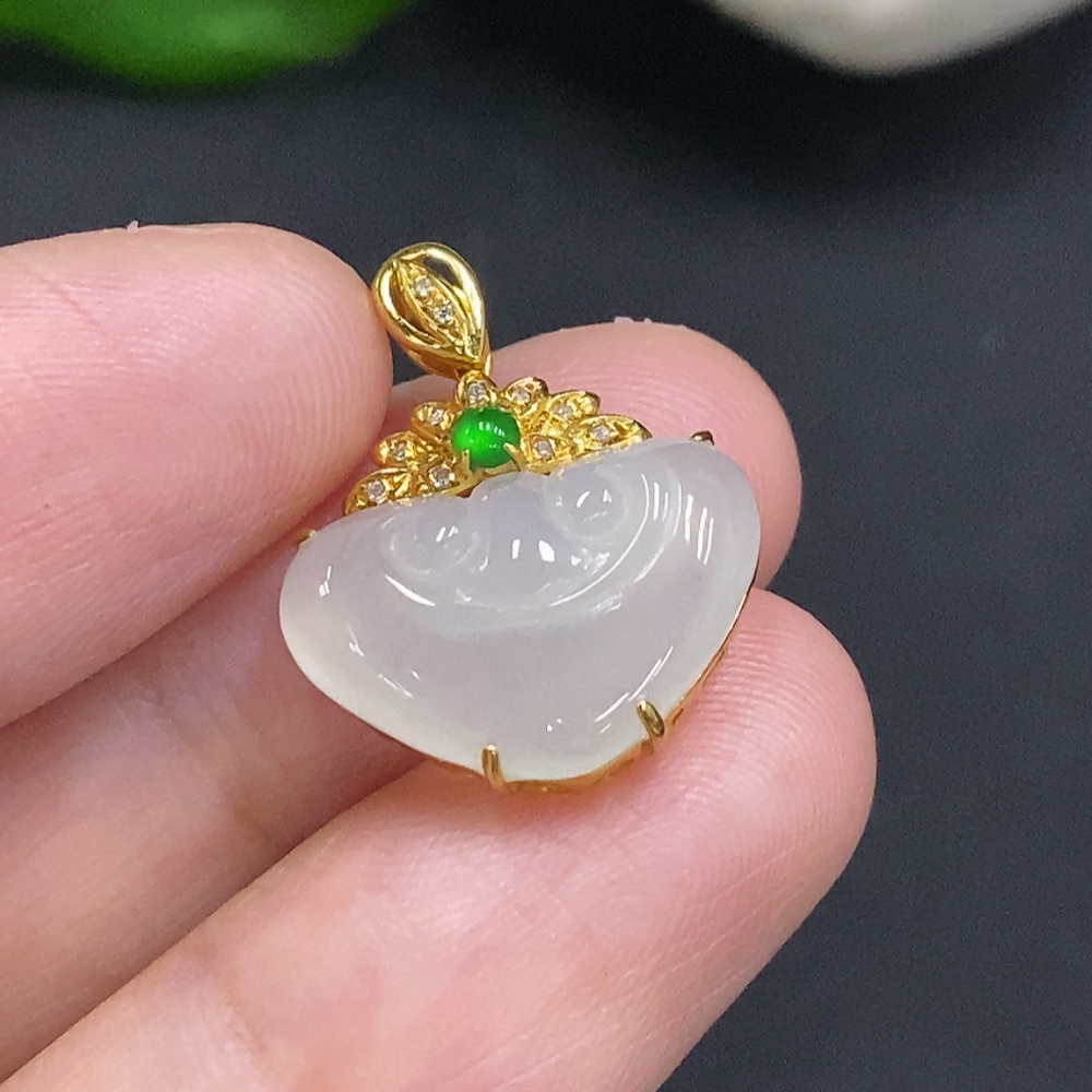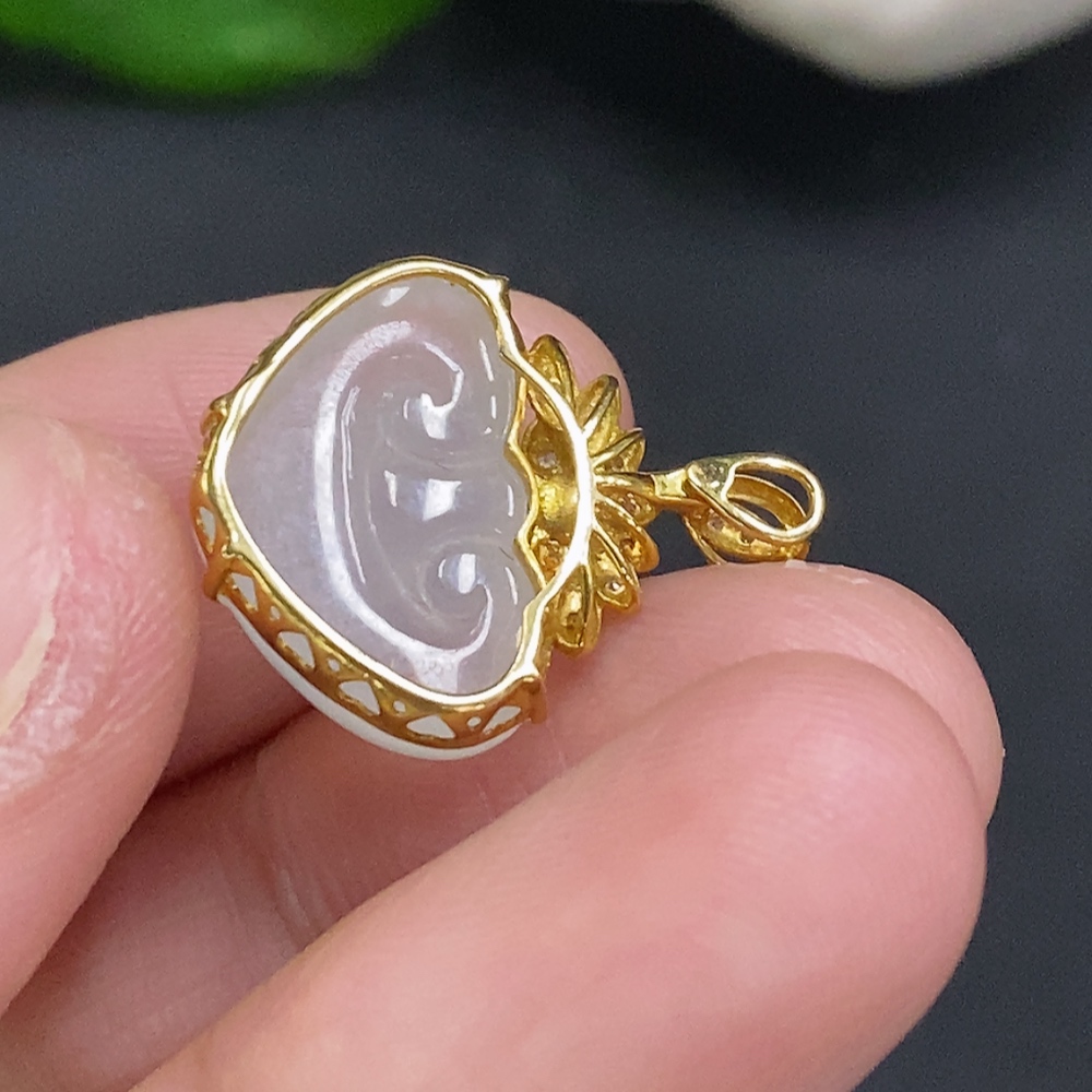 Jadeite Ruyi Inlaid Pendant 18K Gold Total Weight Approx. 2.1g (With Diamond Accents)