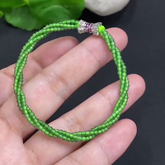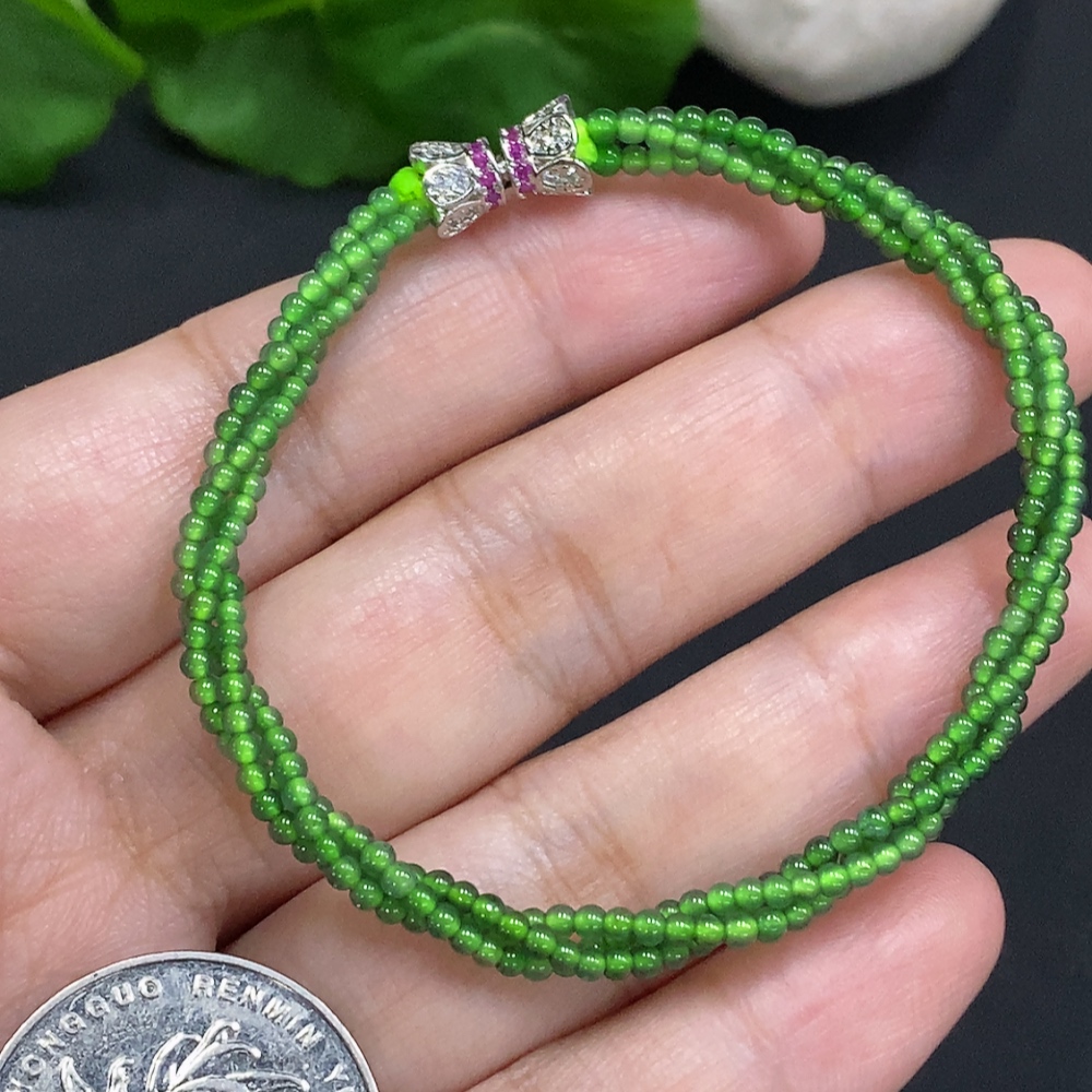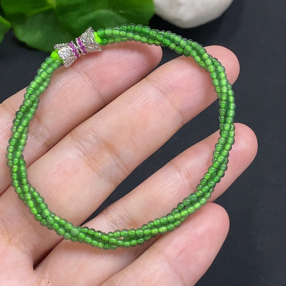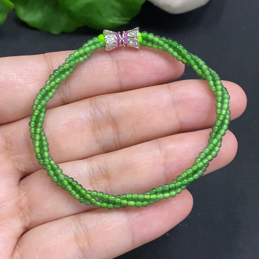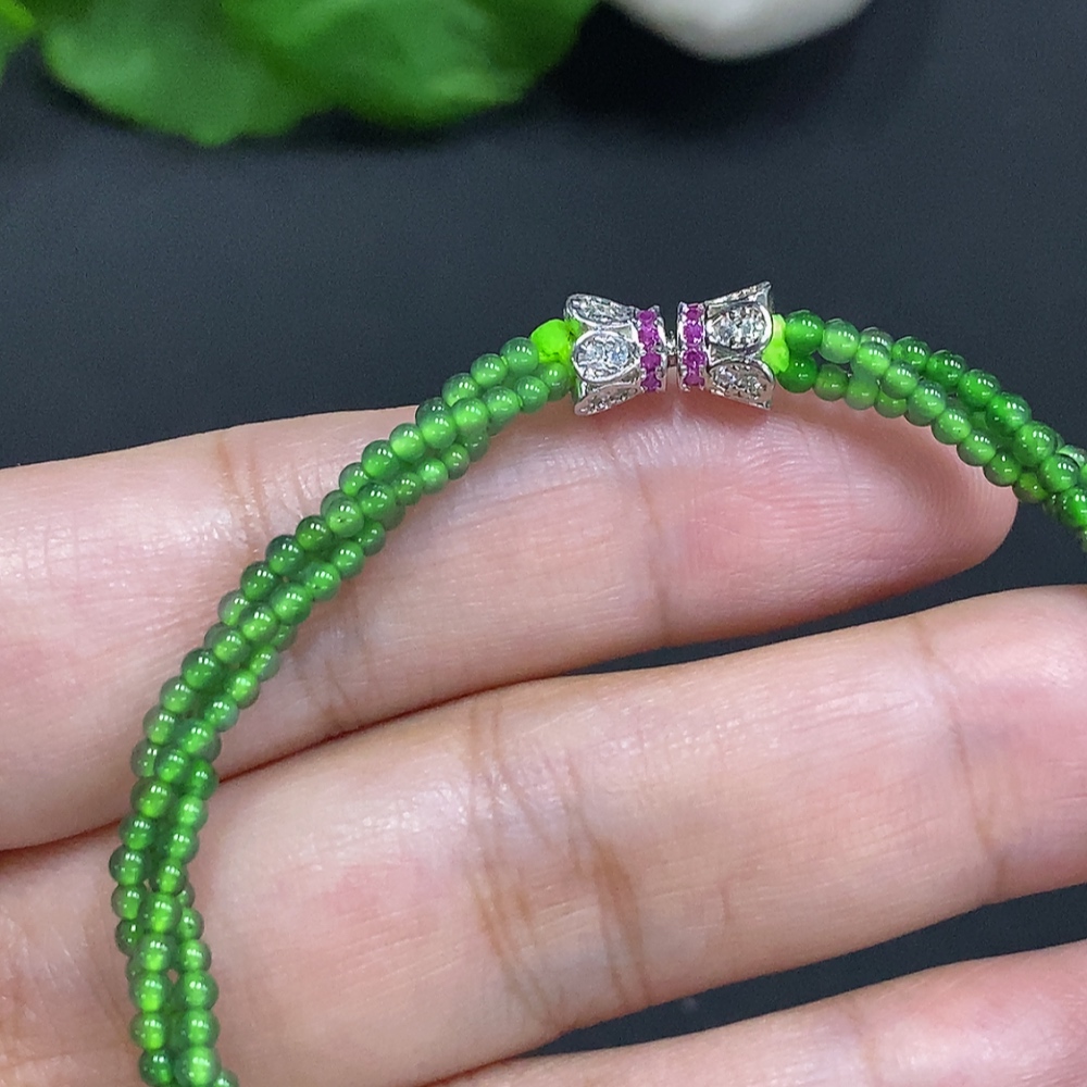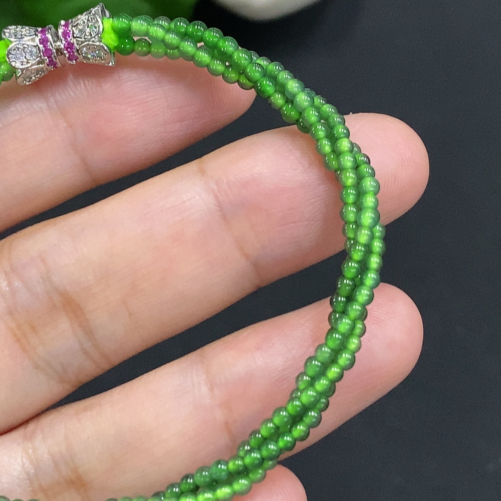 Jadeite Bead Necklace Approx. 2mm Non-Gold Total Weight Approx. 4.9g