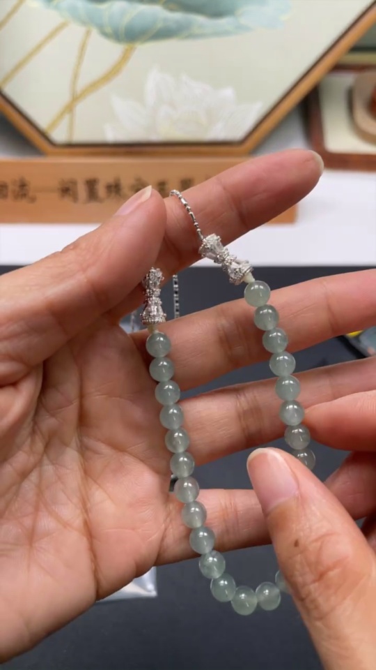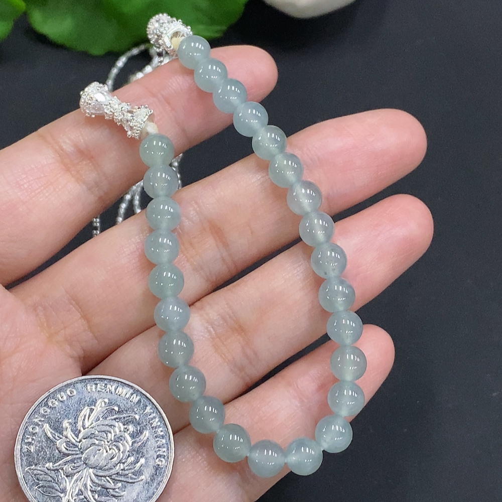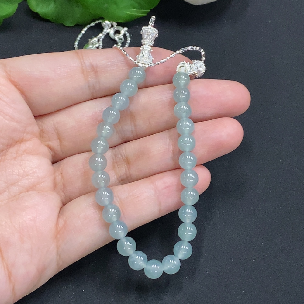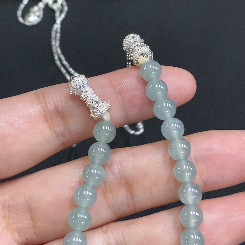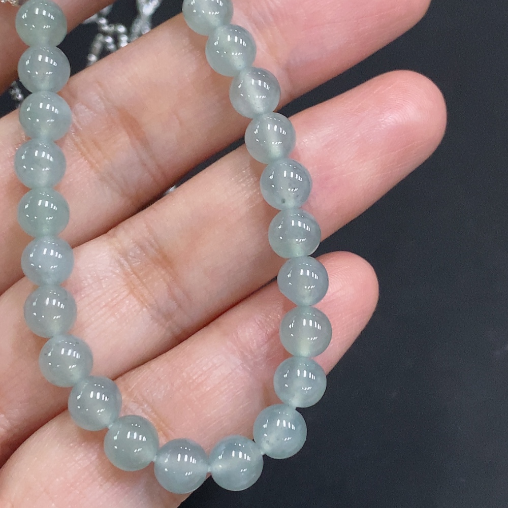 Jadeite Bead Necklace Approx. 5.8mm Non-Gold Total Weight Approx. 14.8g